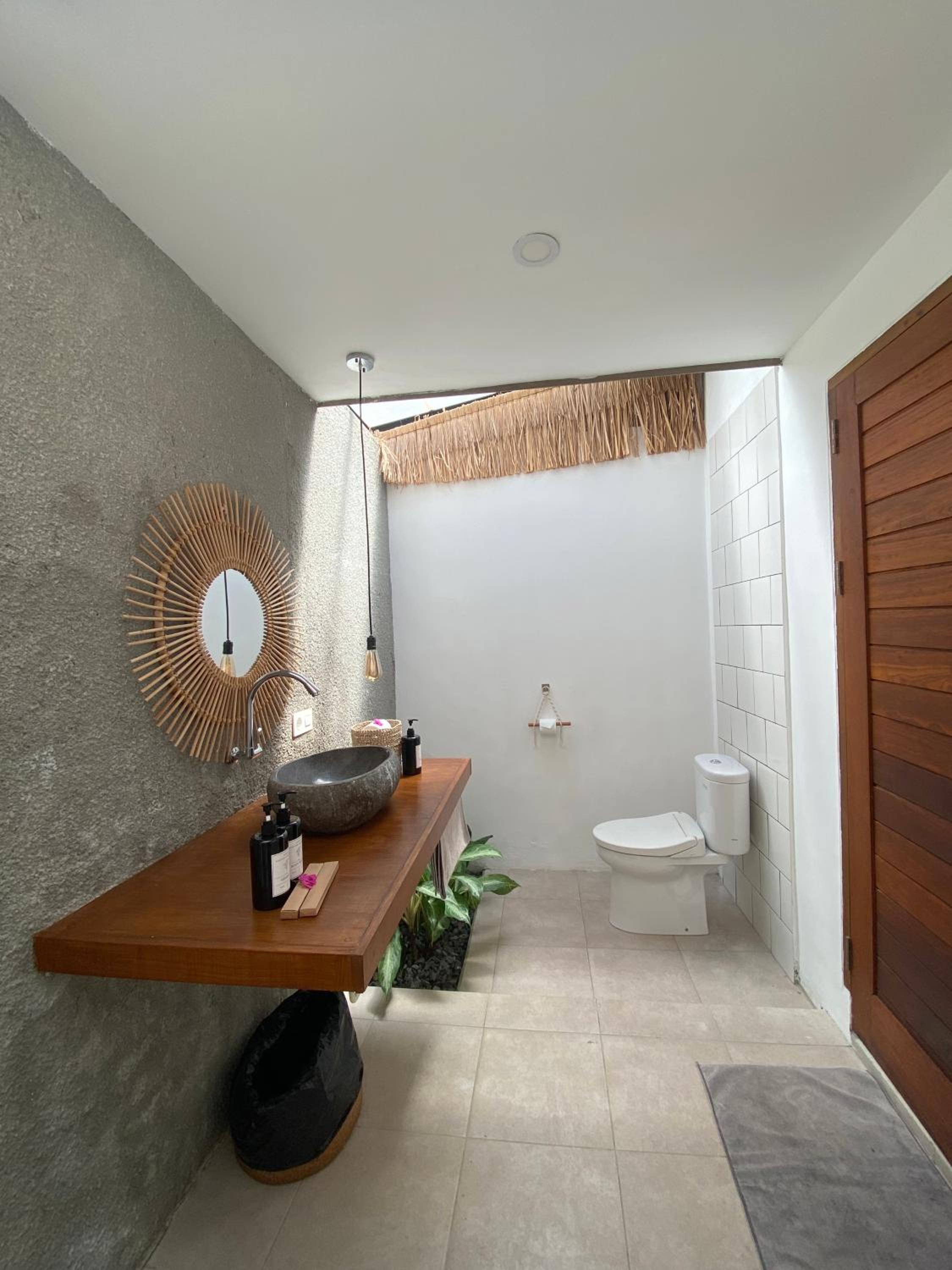 Absolutely zero privacy. All guests are on top of each other: literally! Feels like walls do not exist ( well in the bathroom there is only bamboo roofs and you hear Absolutely everything what neighbors do, which was disgusting). The hotel is situated in the middle of someone's farm with mosquitoes in your room all the time, especially considering gaps in the doors even in locked position, and bamboo coverings. Also, the breakfasts was a joke with only 1 drink and only 1 item to chose from. Everything else: pay additional ( not cheap at all). The room offers a warm water from unknown source in their glass refillable bottles instead of two bottles of brand new water like everywhere else we stayed in Indonesia.