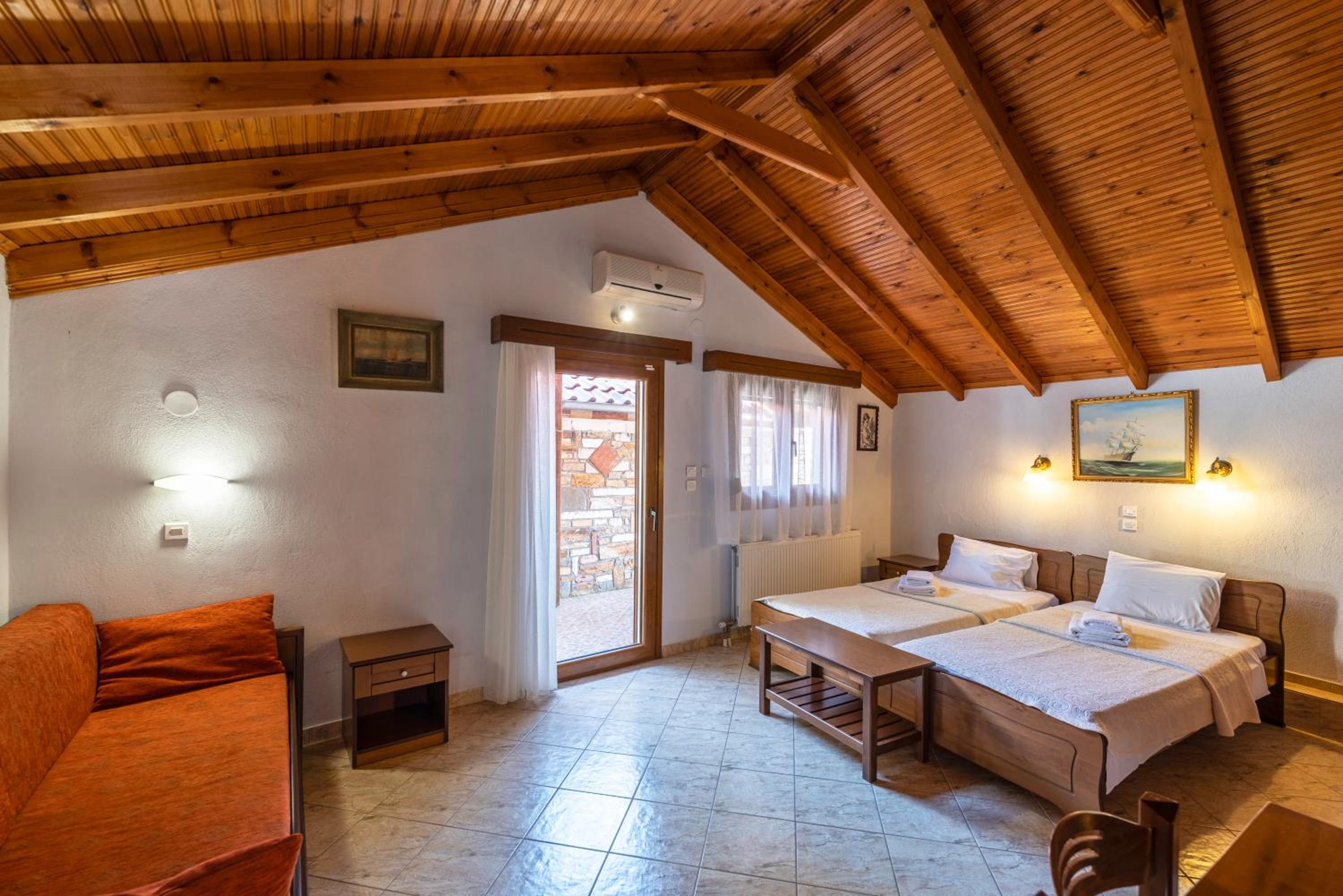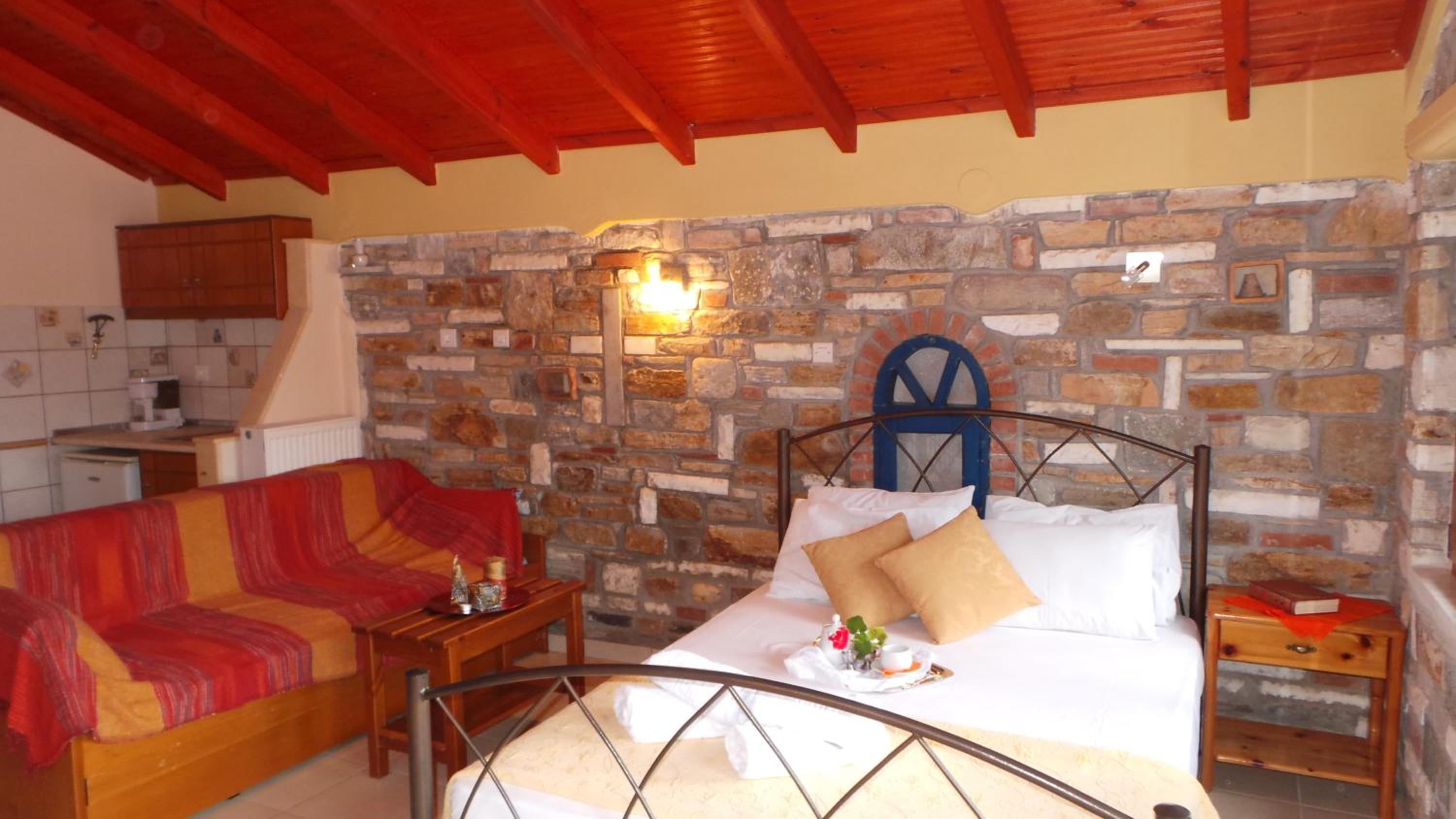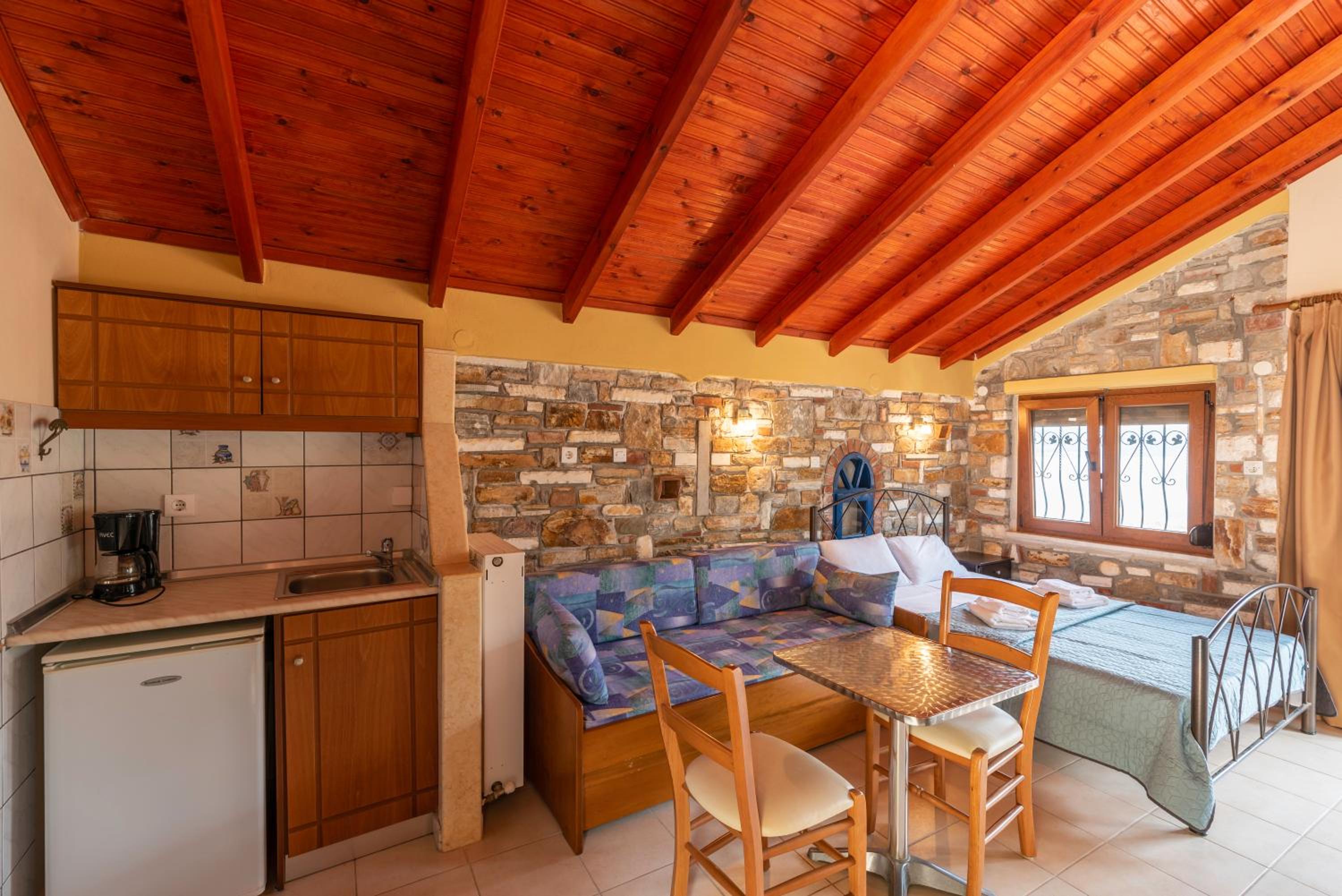 Located just 130 meters from Skala Potamias beach, Pontios offers a unique stone-built getaway surrounded by lush gardens. Comfortable and Well-Equipped Rooms All units feature modern amenities including a fridge, TV, and individually controlled air conditioning. Some rooms even come with a kitchenette for added convenience. Relaxing Atmosphere and Convenient Facilities Enjoy drinks and coffee at the garden bar or cozy up indoors by the fireplace. With a children's playground, free WiFi, and proximity to Chrissi Ammoudia Beach, Pontios ensures a memorable stay. Book your stay at Pontios now for a perfect blend of relaxation and convenience.