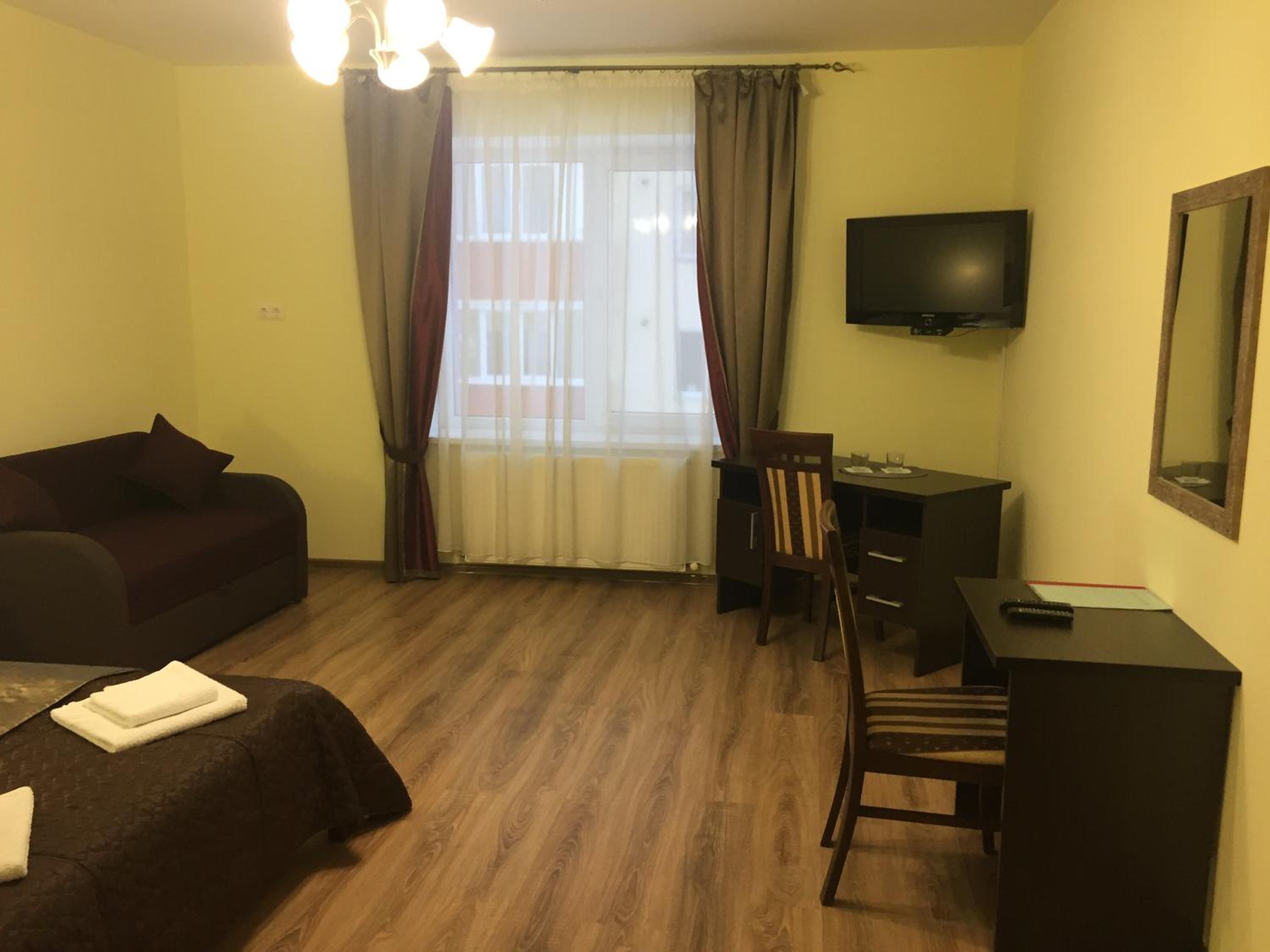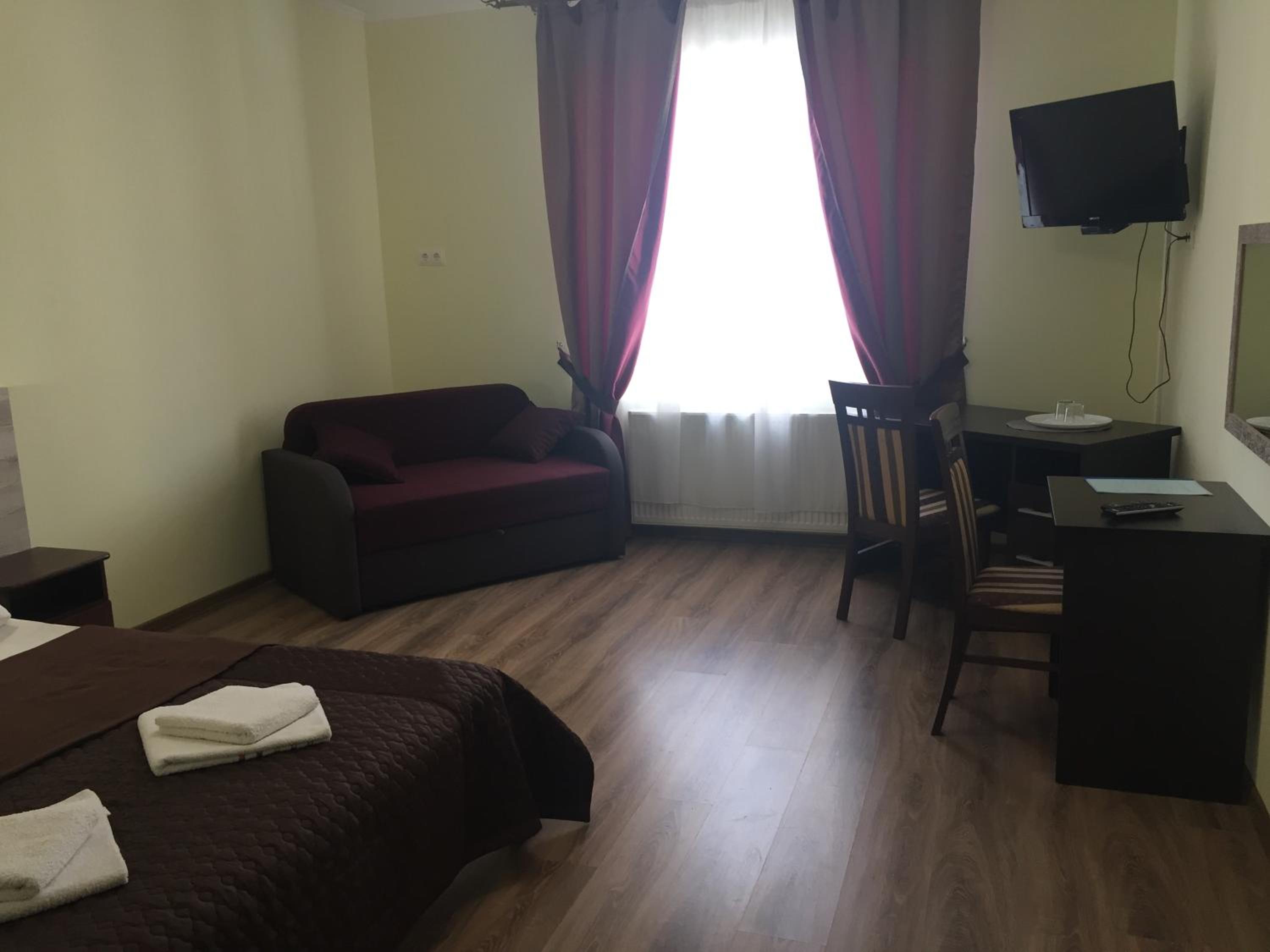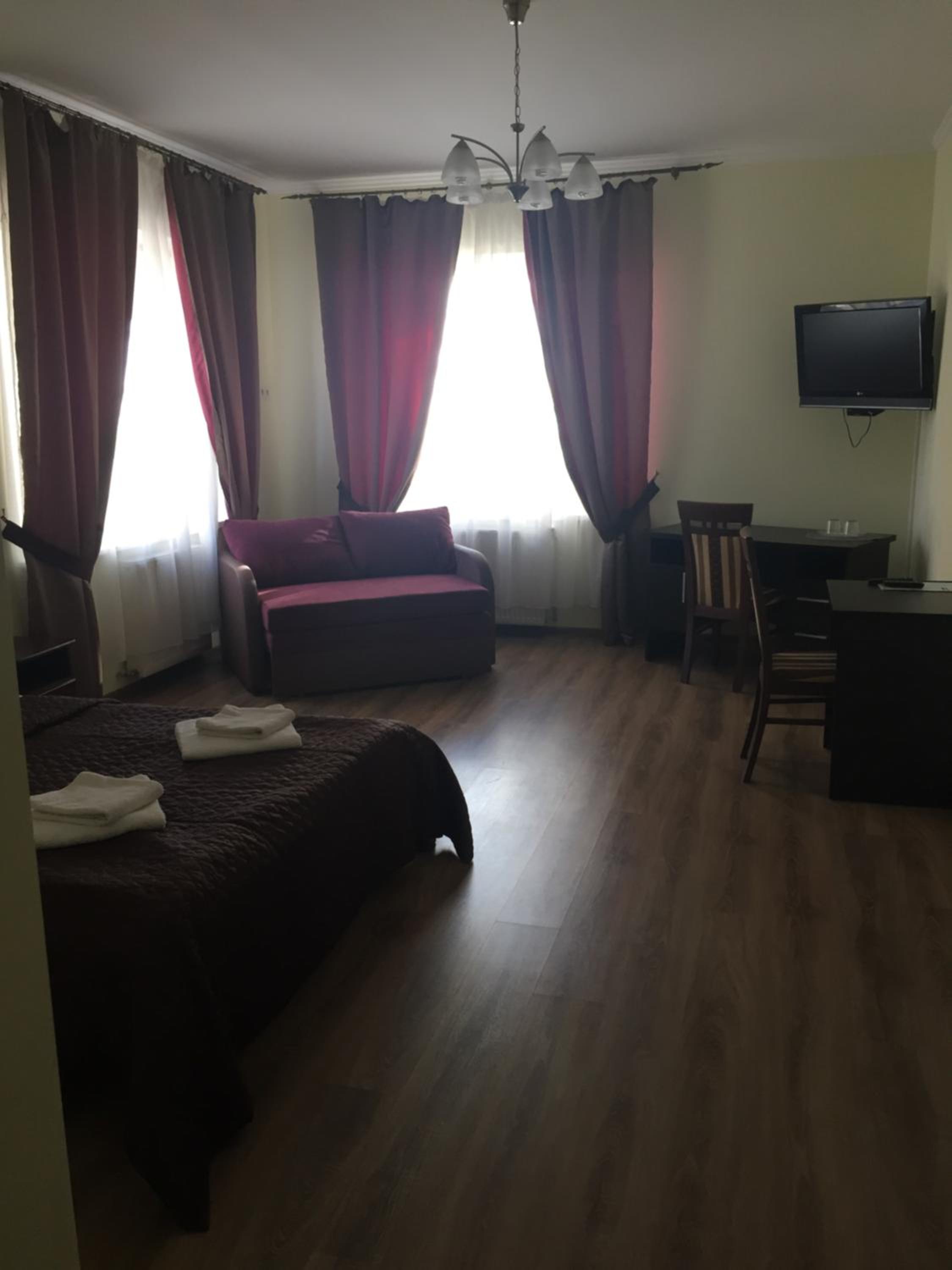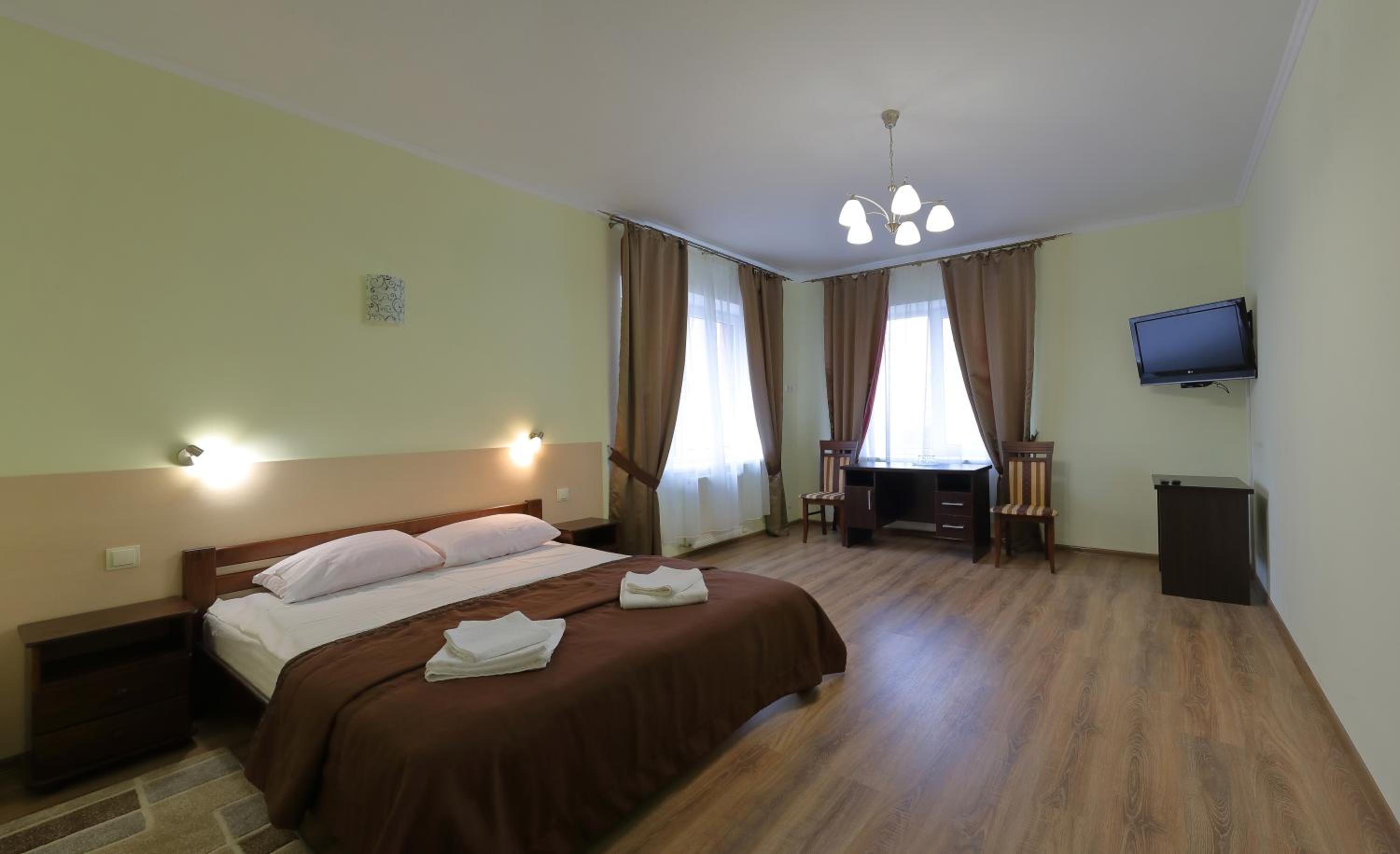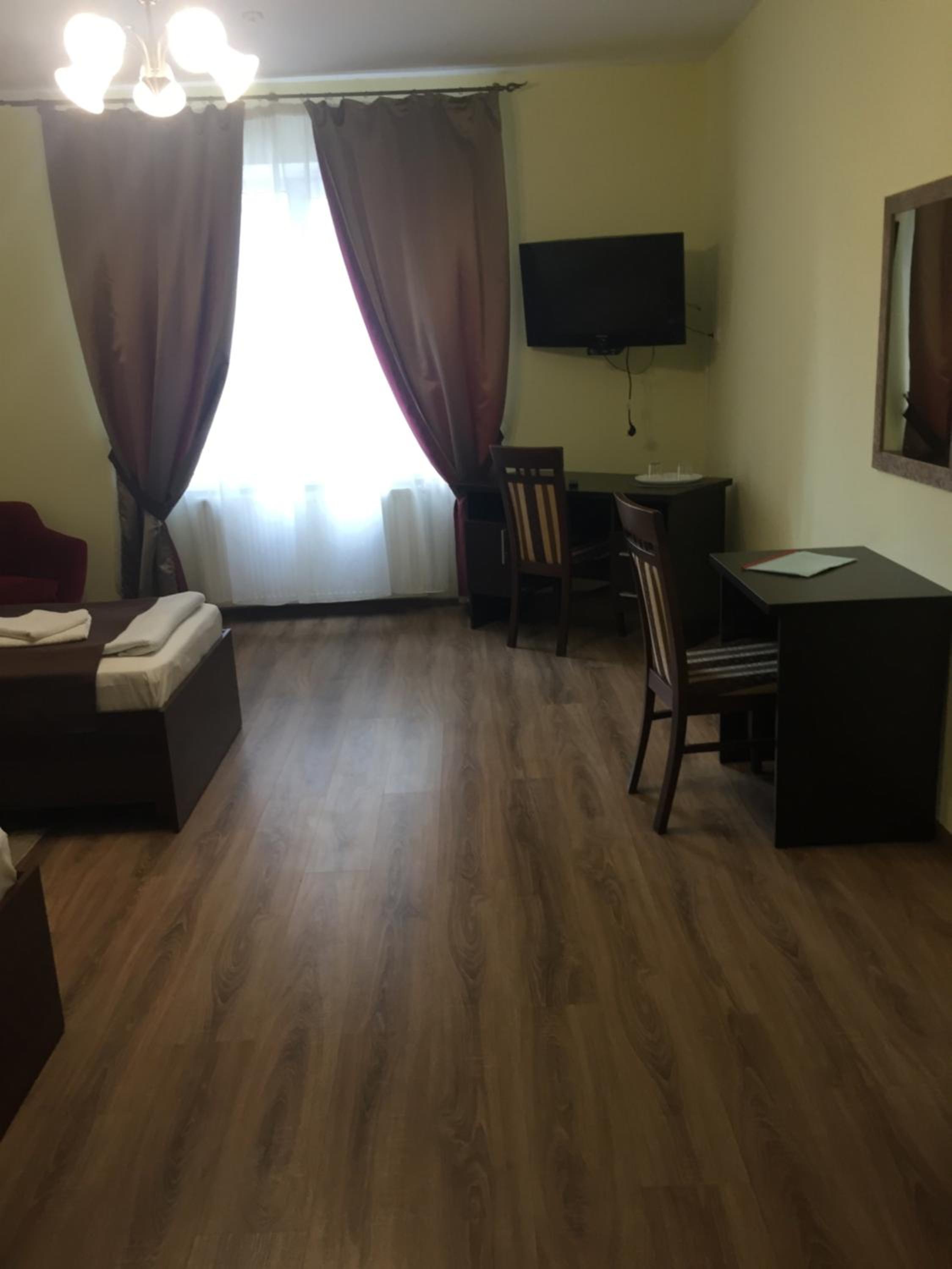 Each room at Hotel Karpaty is thoughtfully equipped with essential amenities such as a desk, flat-screen TV, and a private bathroom. The cozy bed linen and fluffy towels ensure a comfortable stay for every guest.