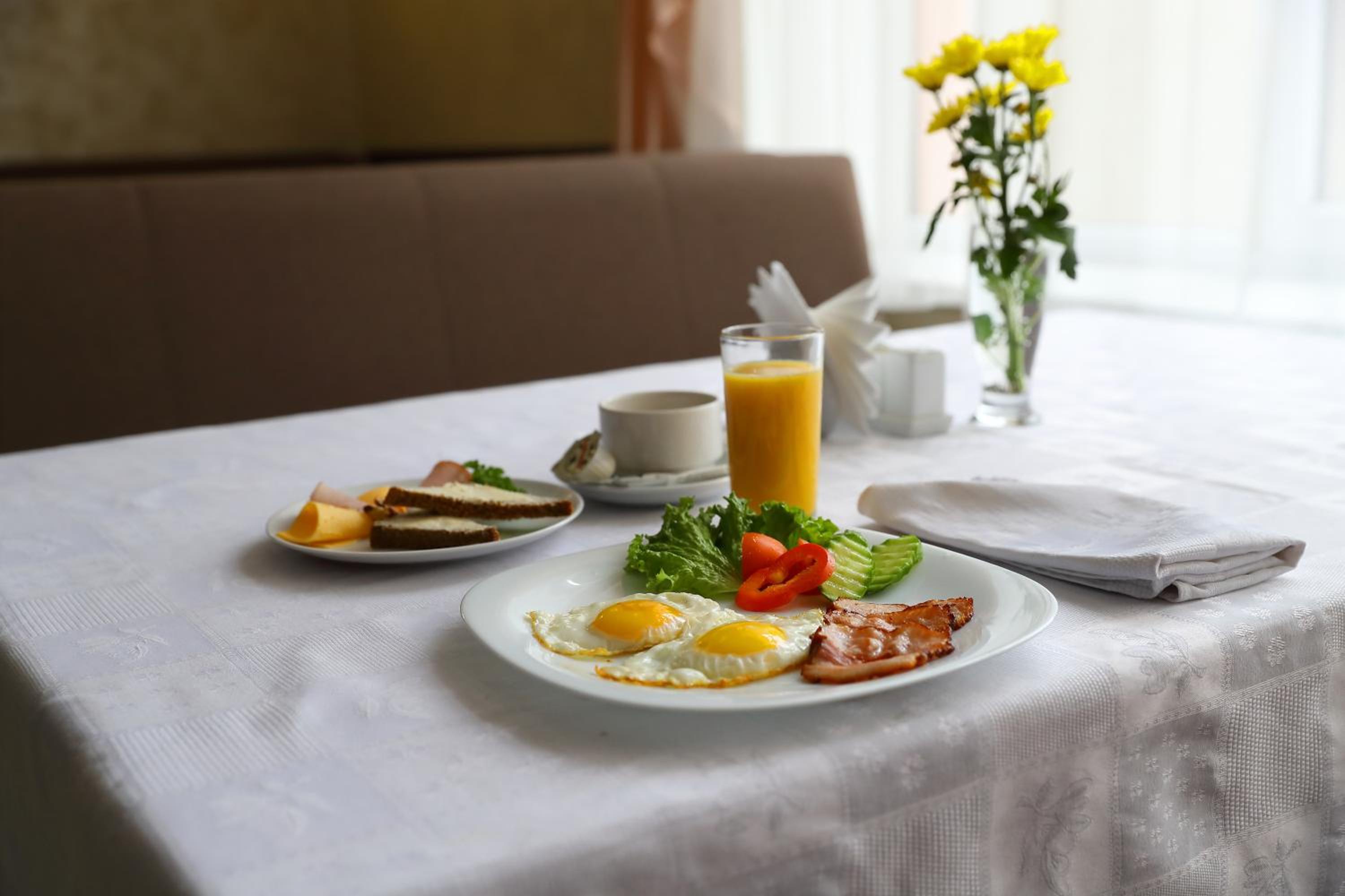 Сніданки є по окремому замовленні але 2 видів. Немає можливості замовити ще щось додатково. Але поруч є гарний супермаркет де є кава та їжа собою.