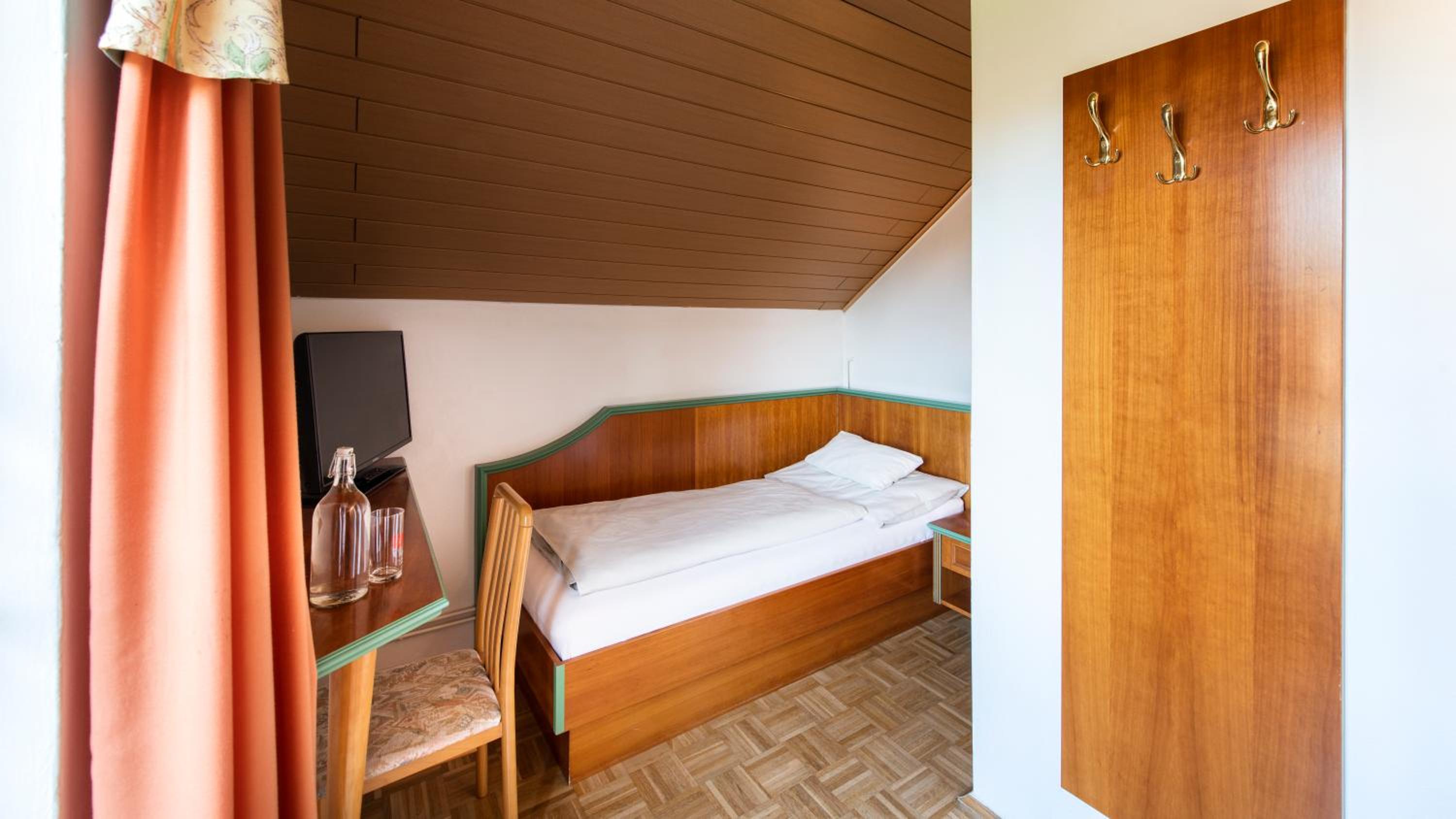 Dass im Zimmer kein Kühlschrank war. Das Zimmer im Obergeschoss nur über die Treppe erreichbar war und kein Lift.