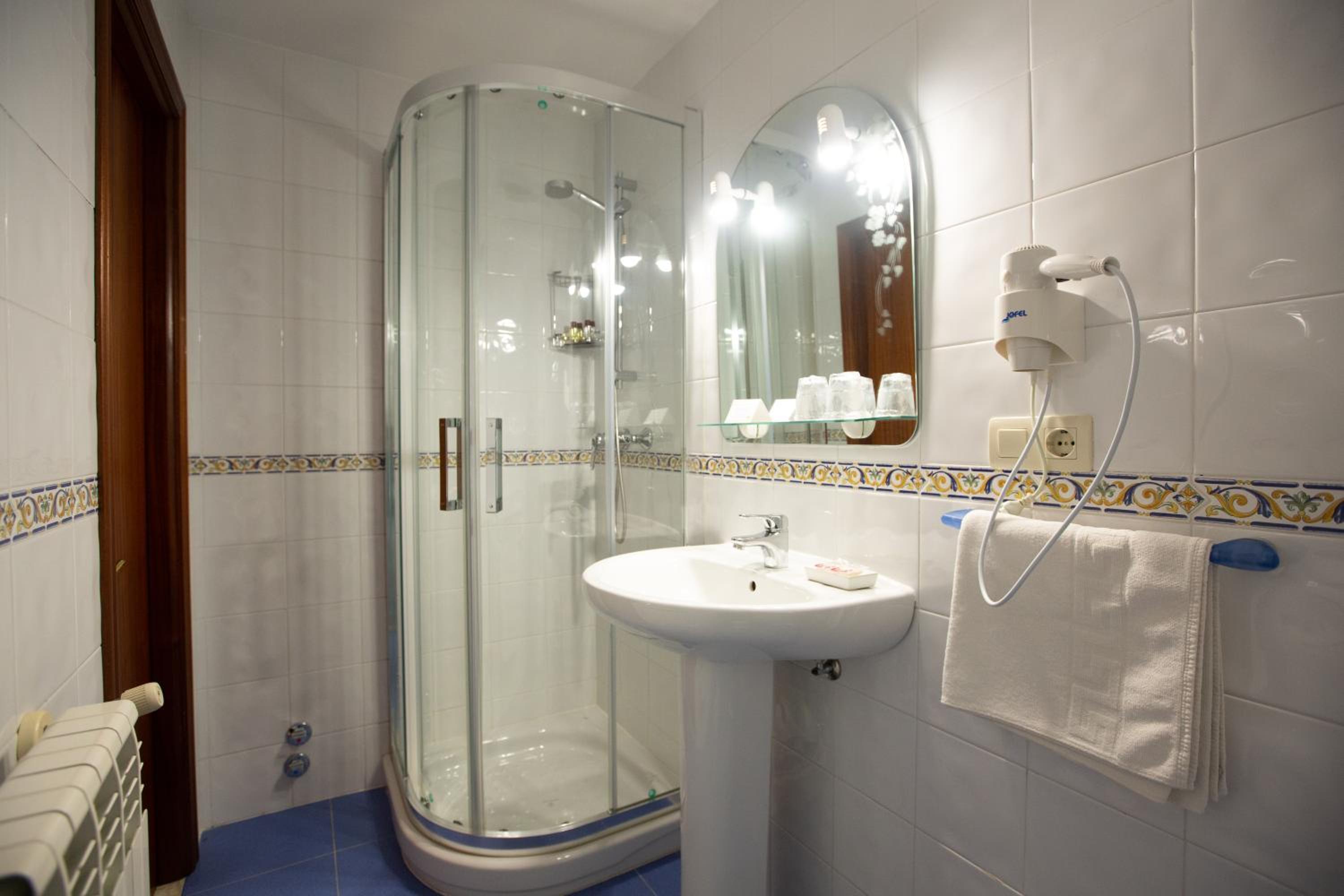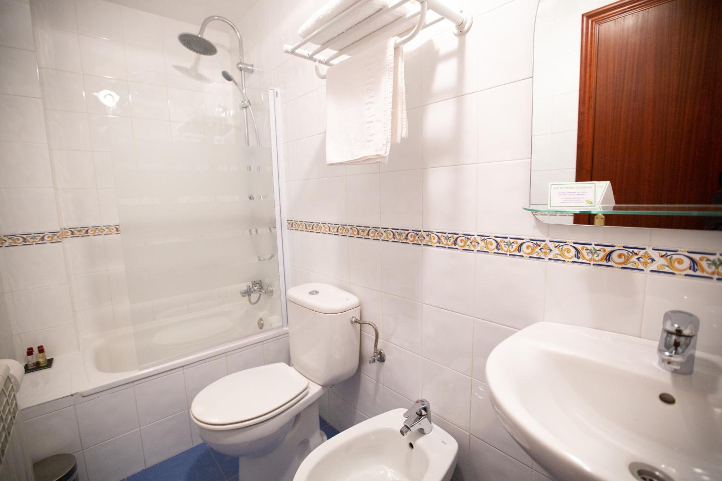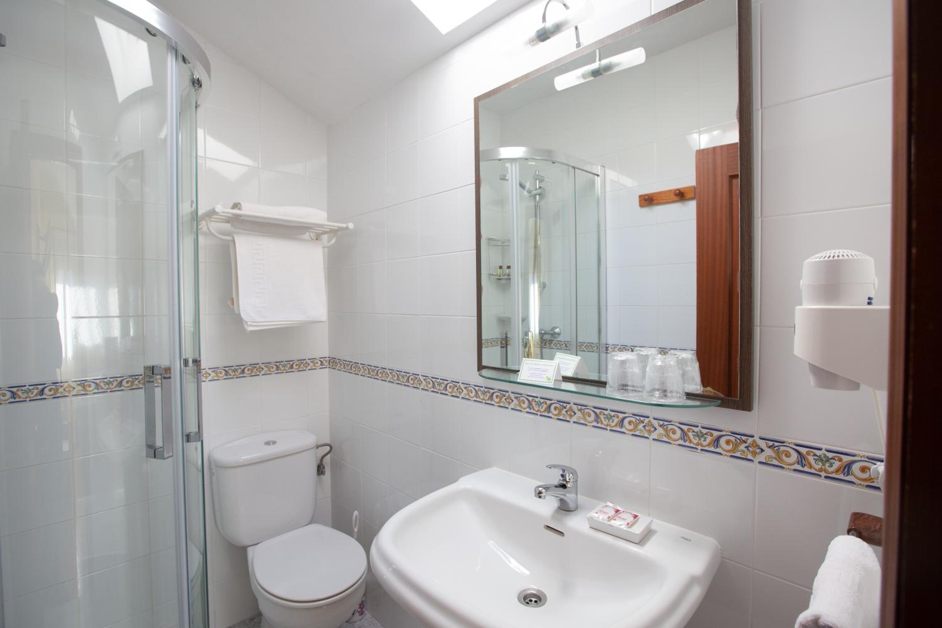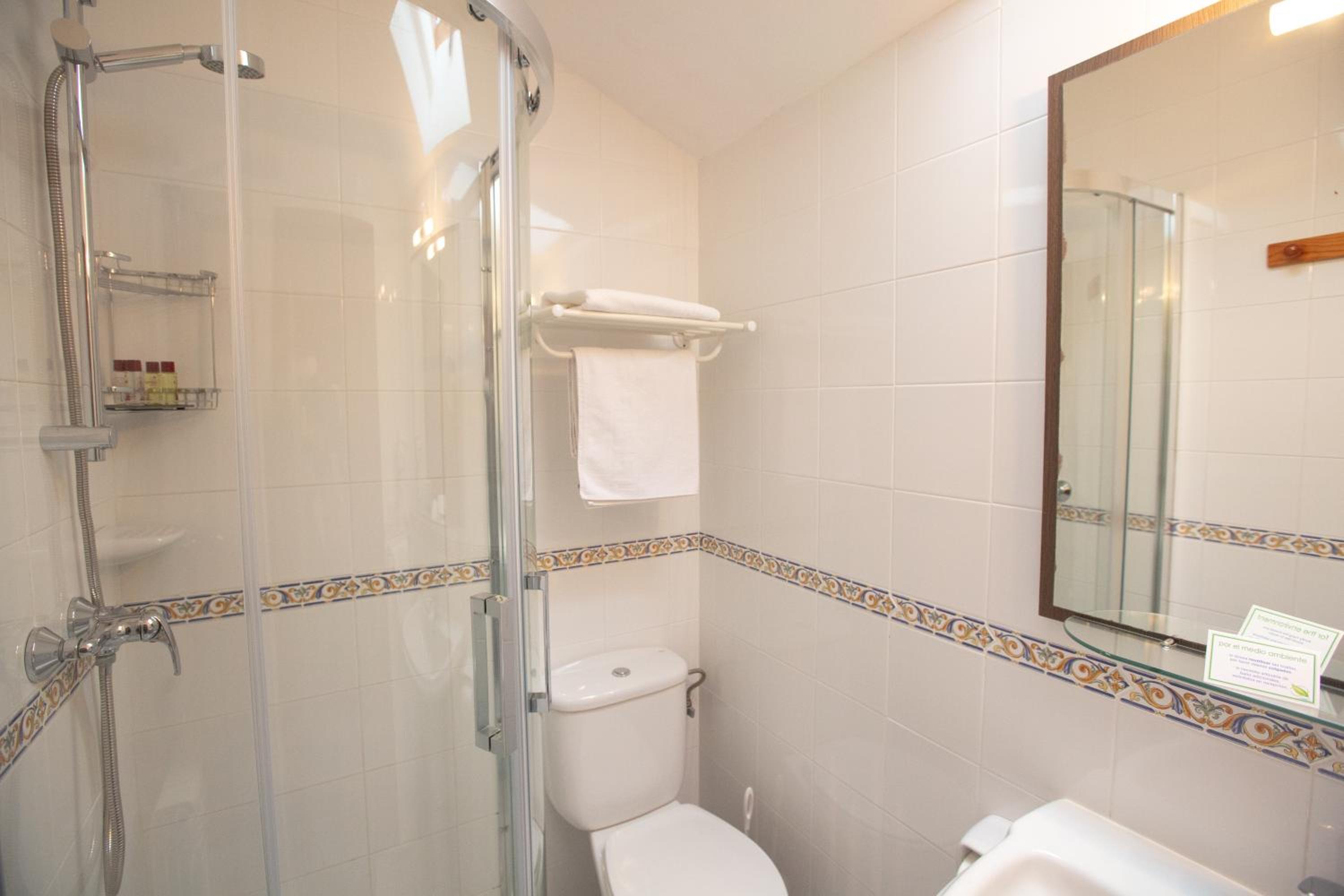 Habitación pequeña pero apañada con baño completo. Muy cómoda la cama