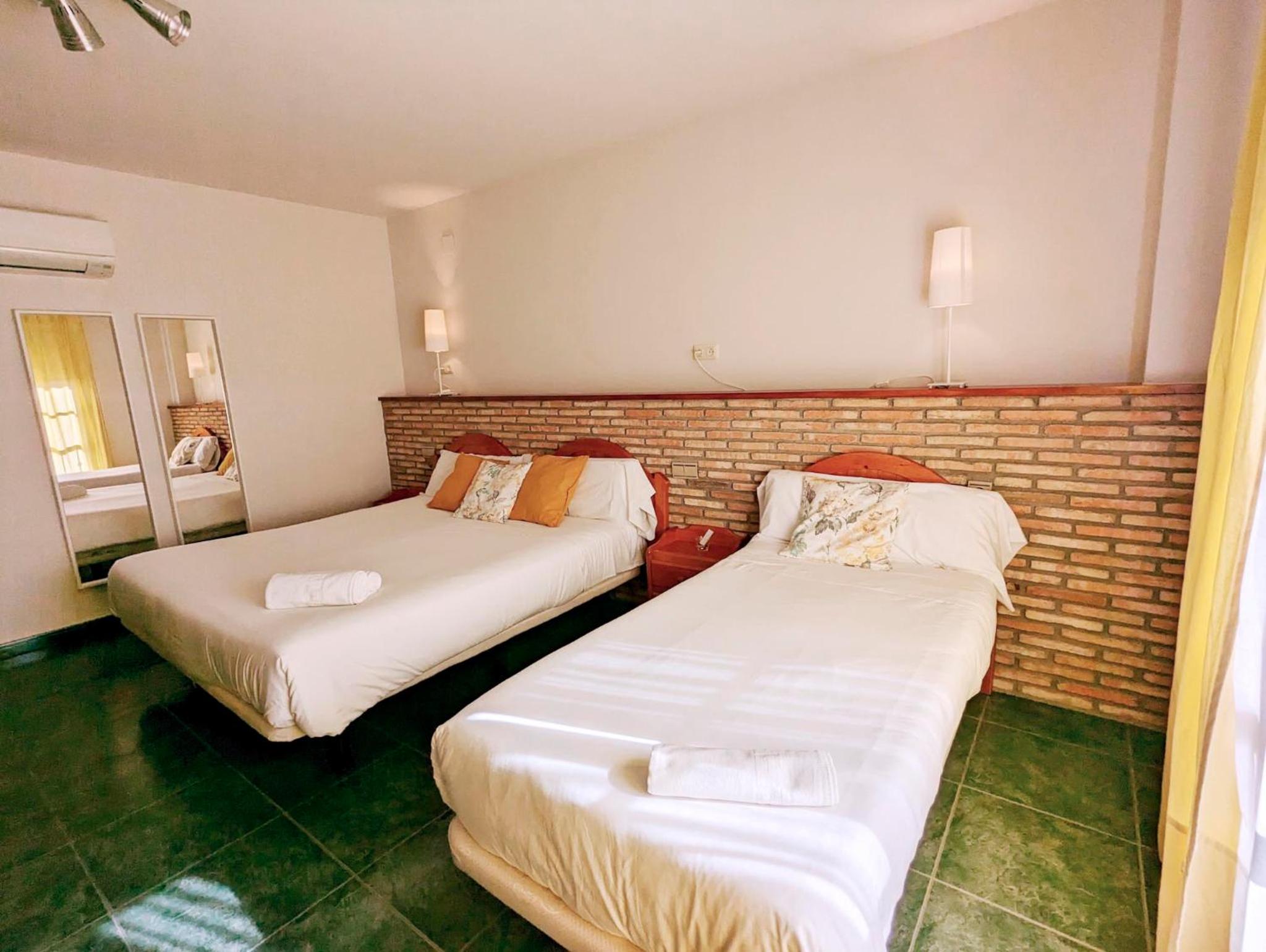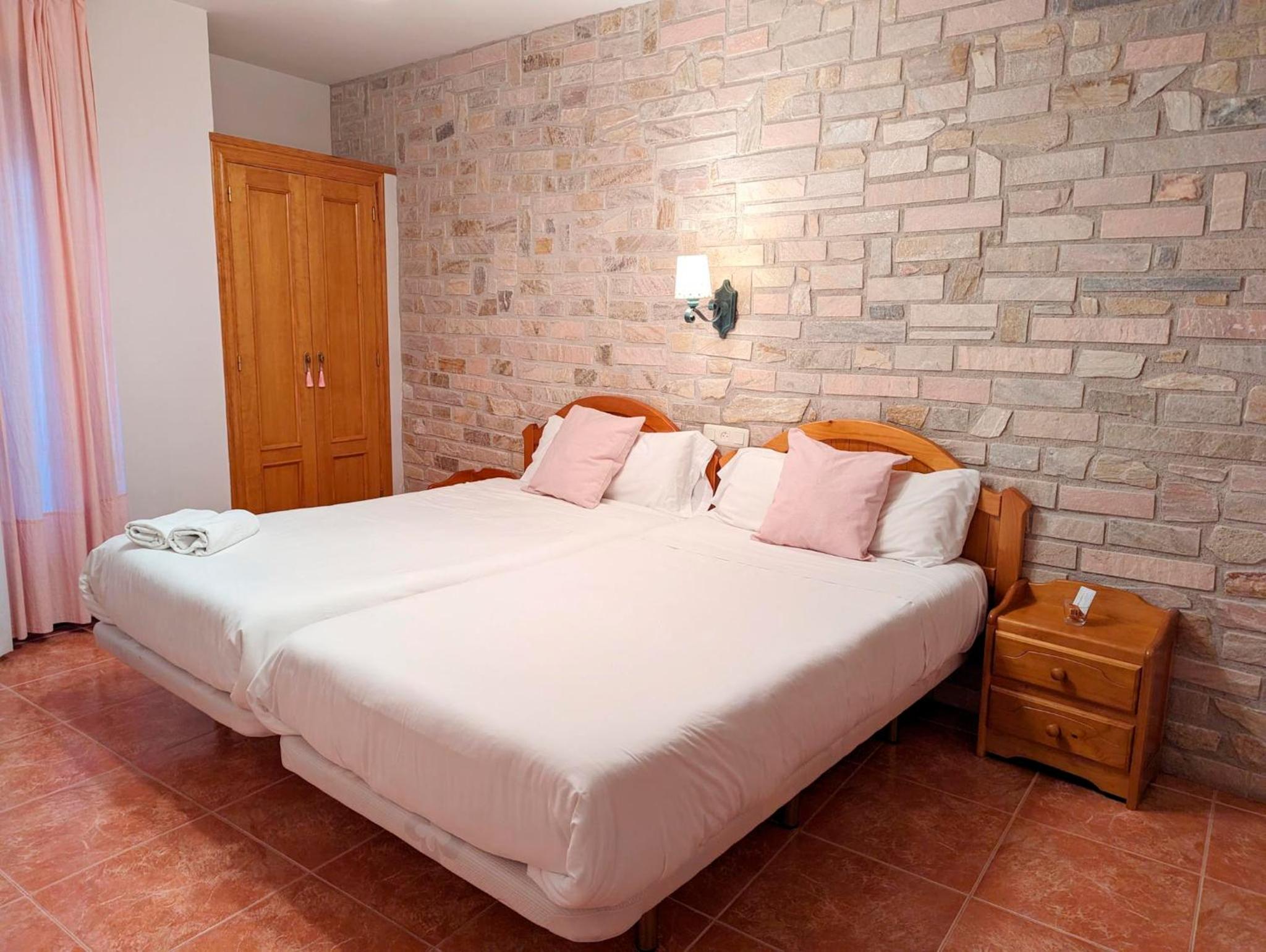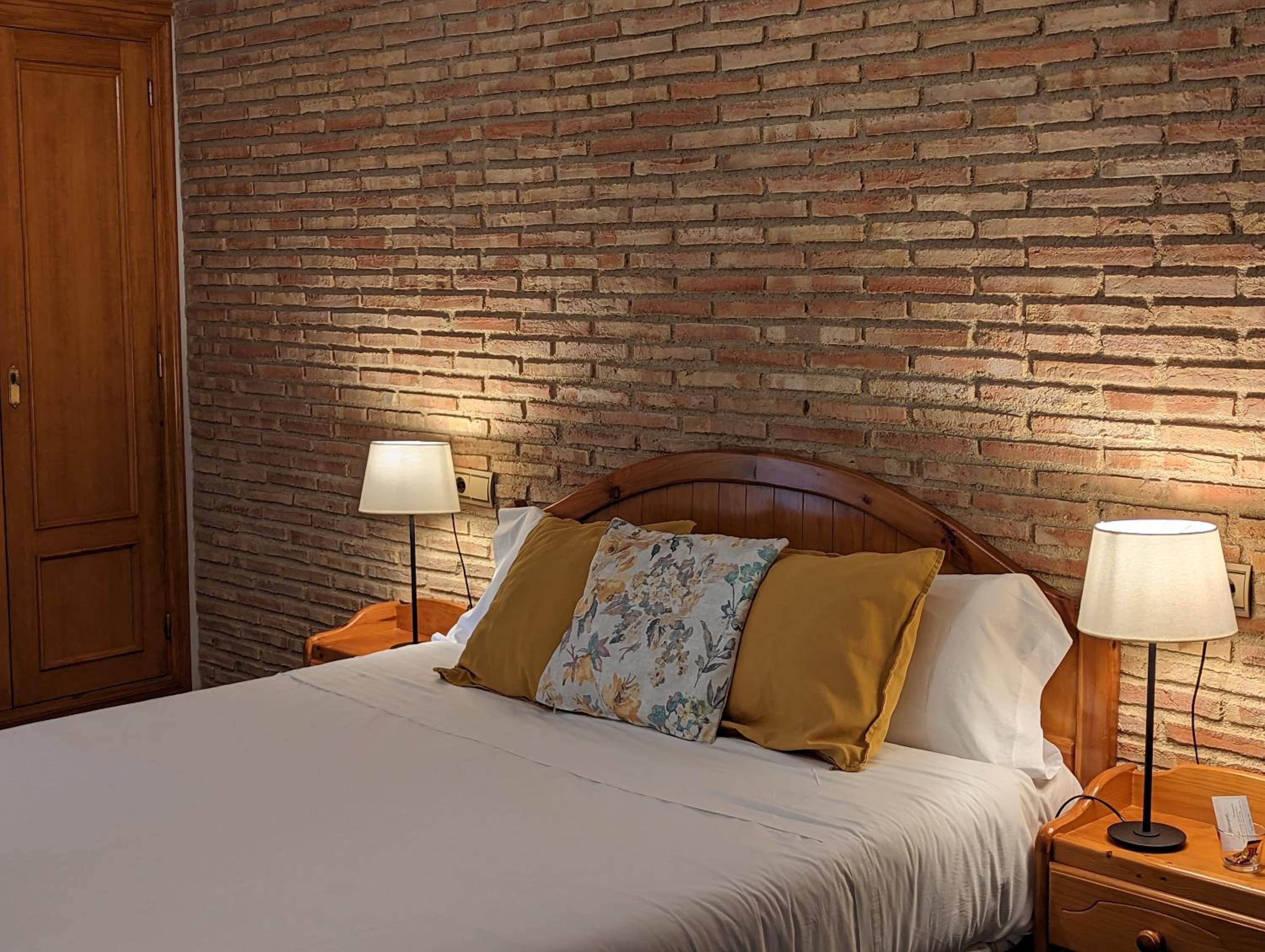 Fue una estafa. Nos cobraron 83 € por una habitación (107) que tenía como vistas un muro de hormigón tan alto como el edificio, que era el cerramiento de un patio lleno de aparatos de aire acondicionado y situado a menos de un metro de distancia de la habitación. En un ambiente rural y con un hotel prácticamente vacío no se entiende y además, sin personal para atender a los clientes.para reclamar. Nos fuimos y no dormimos en la covacha. No es lo que se anuncia. Tenemos video.