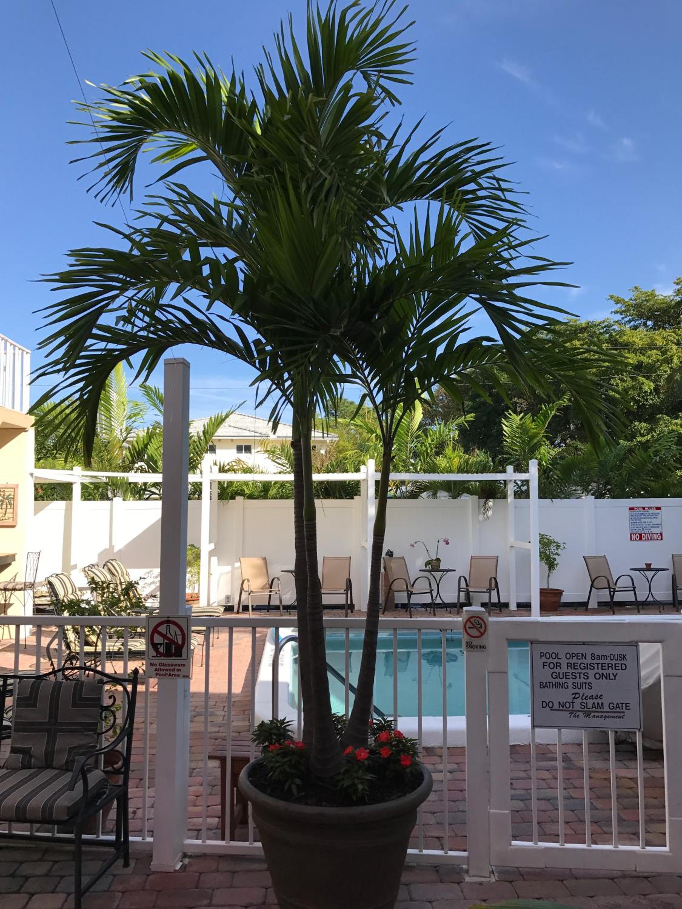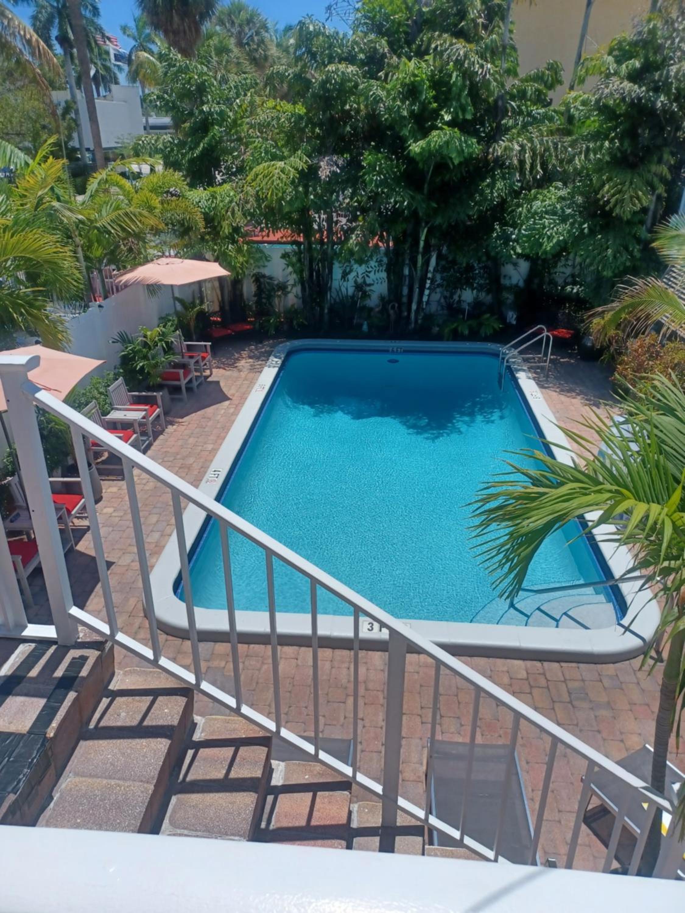 Due to the limited space on the property there are not enough lounge chairs around the pool.