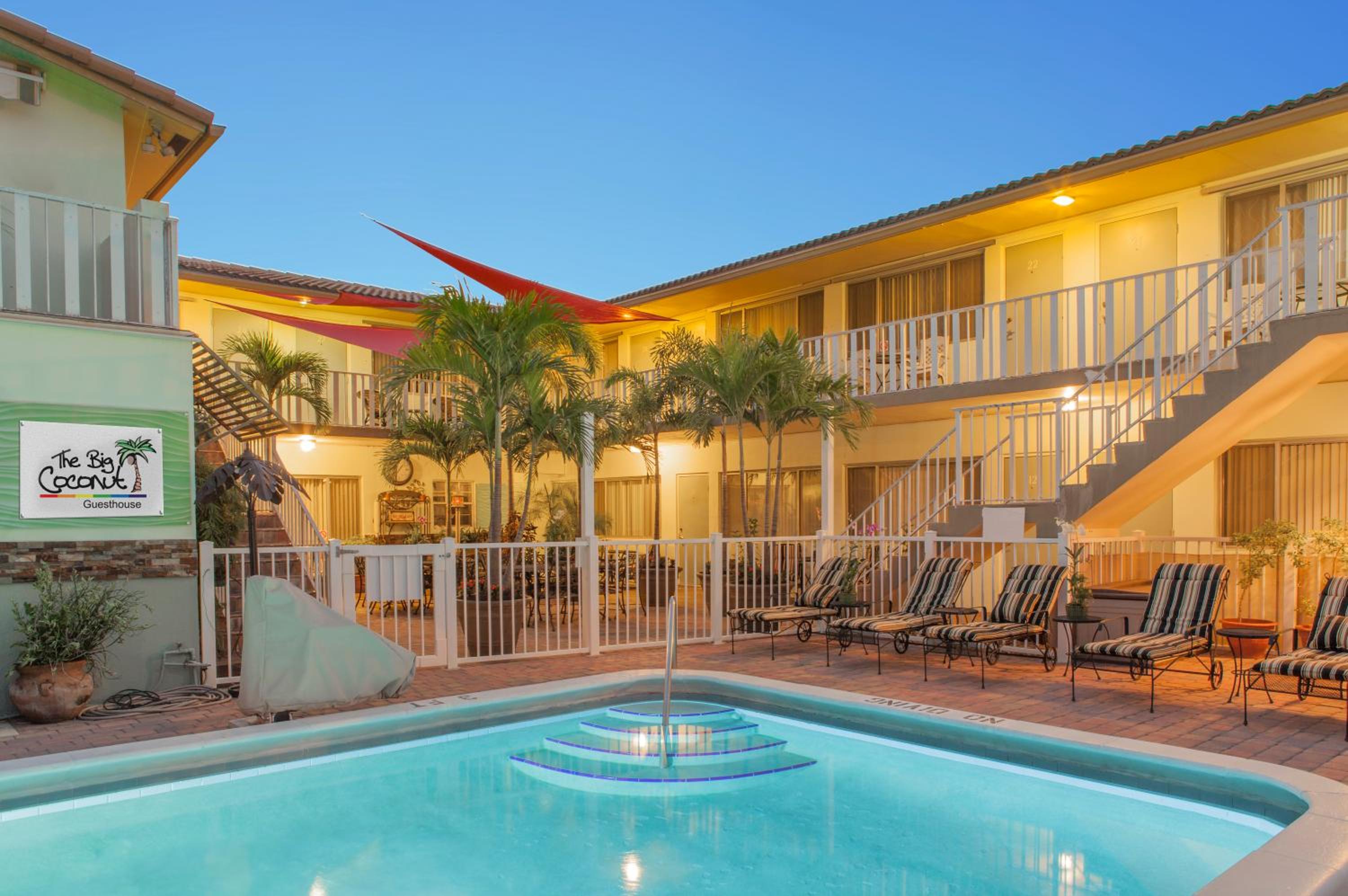Indulge in a stay at the Big Coconut Guesthouse - Gay Men's Resort, located just a stone's throw away from The Galleria at Fort Lauderdale Shopping Center. Each room is thoughtfully designed with a flat-screen TV, coffee machine, and a private bathroom for your comfort.