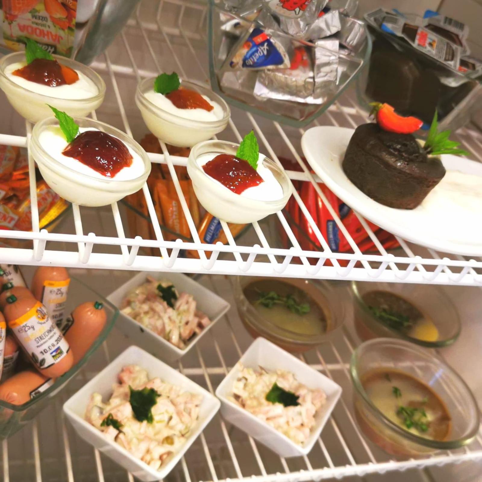 Mini barek w pokoju zajmuje całą lodówkę,