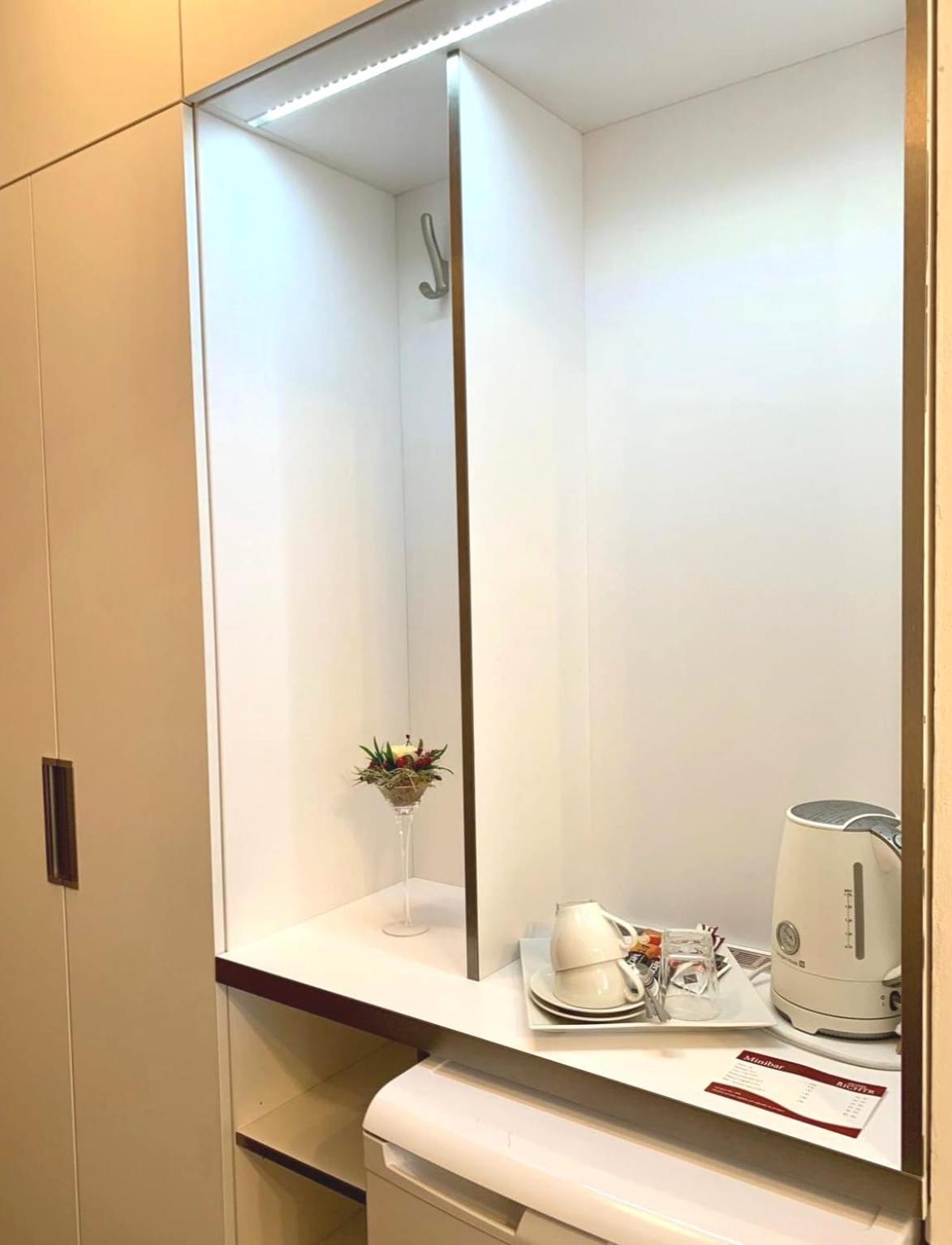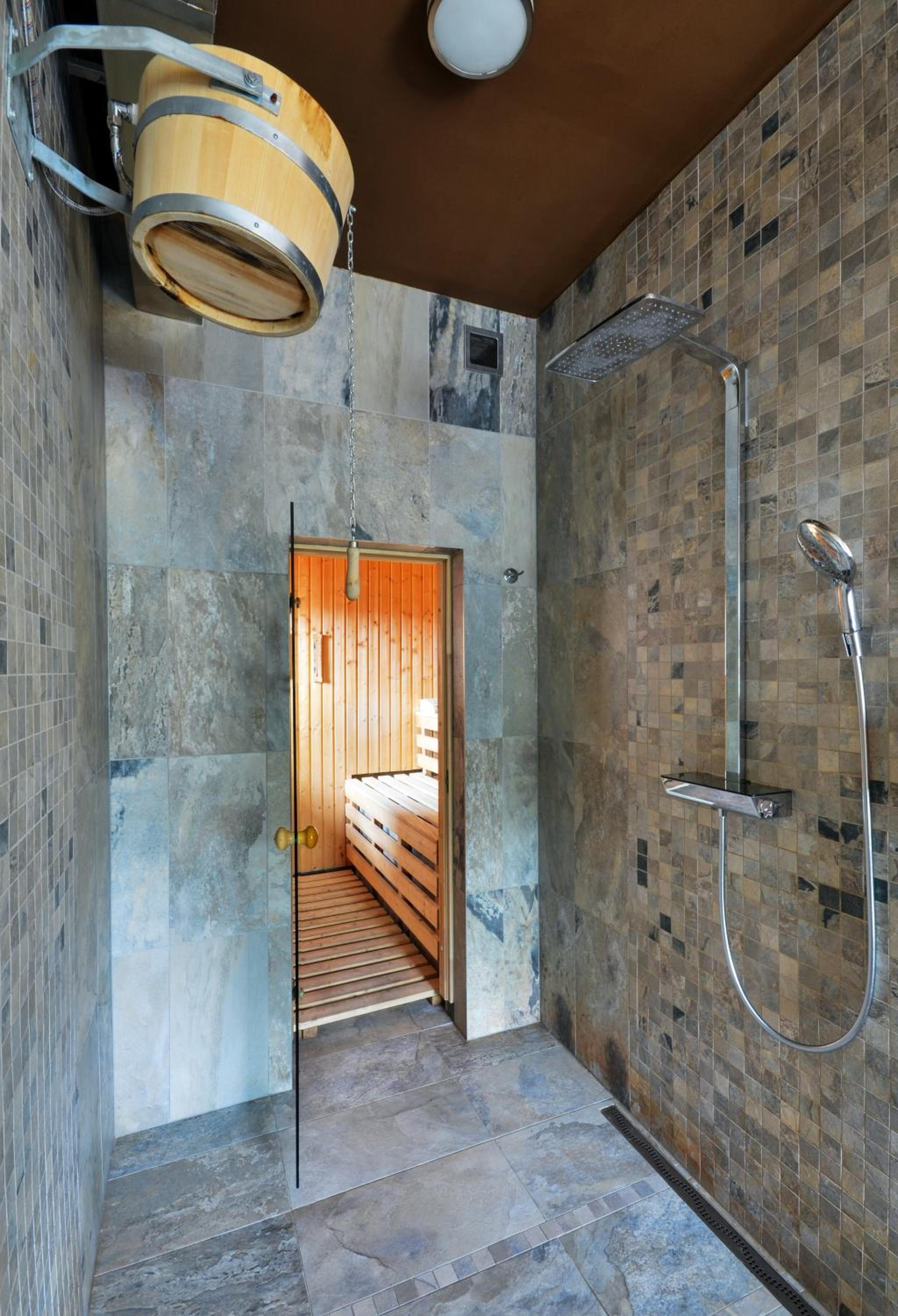 Indulge in our well-equipped rooms featuring private saunas, hot tubs, and modern amenities like a refrigerator, electric kettle, and TV for a comfortable stay.