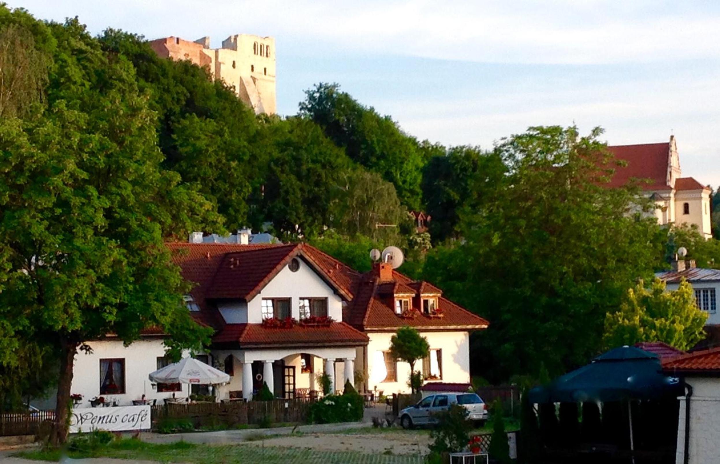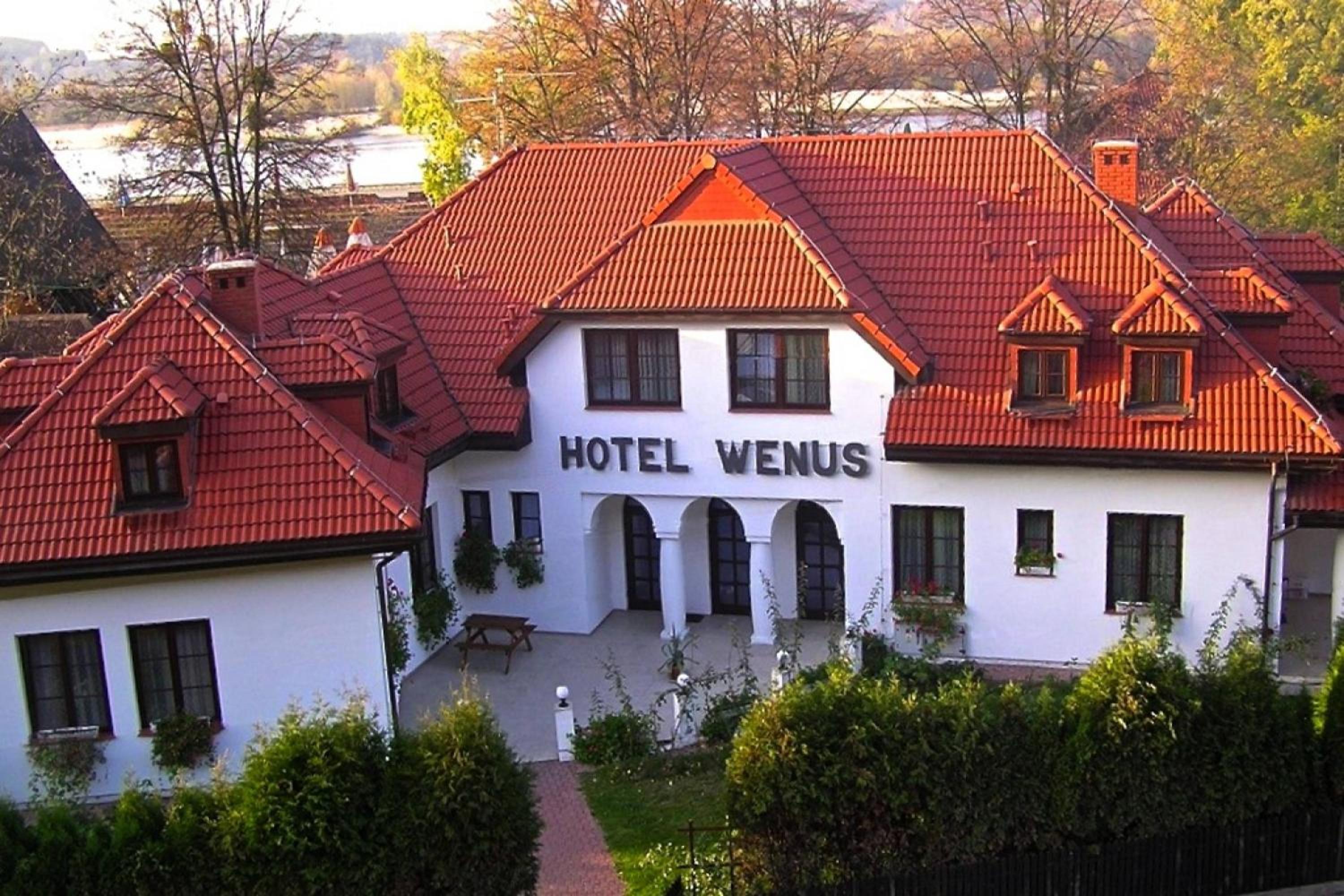 Hotel Wenus in Kazimierz Dolny offers elegantly designed rooms with modern amenities including satellite TV and air conditioning. Each room provides a comfortable stay with a private bathroom, work desk, and some with a cozy seating area. Enjoy entertainment on large flat-screen TVs and stay connected with WiFi in public areas.