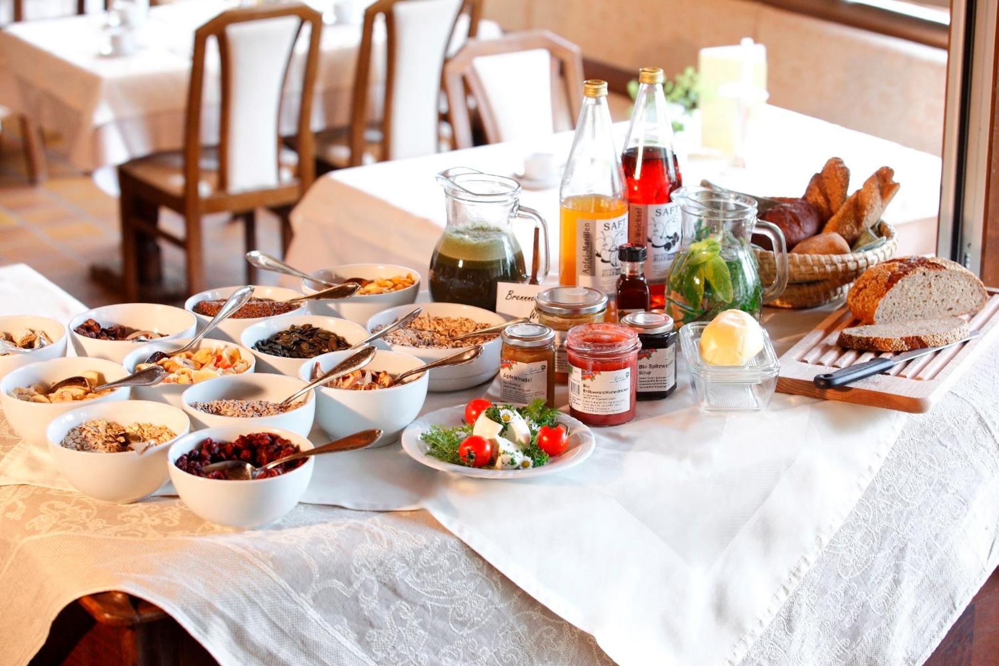Indulge in a delicious breakfast buffet with regional products and savor creative cuisine at the restaurant. Unwind at the spa with a variety of treatments and massages, or enjoy the sun terrace and the historic wine cellar.