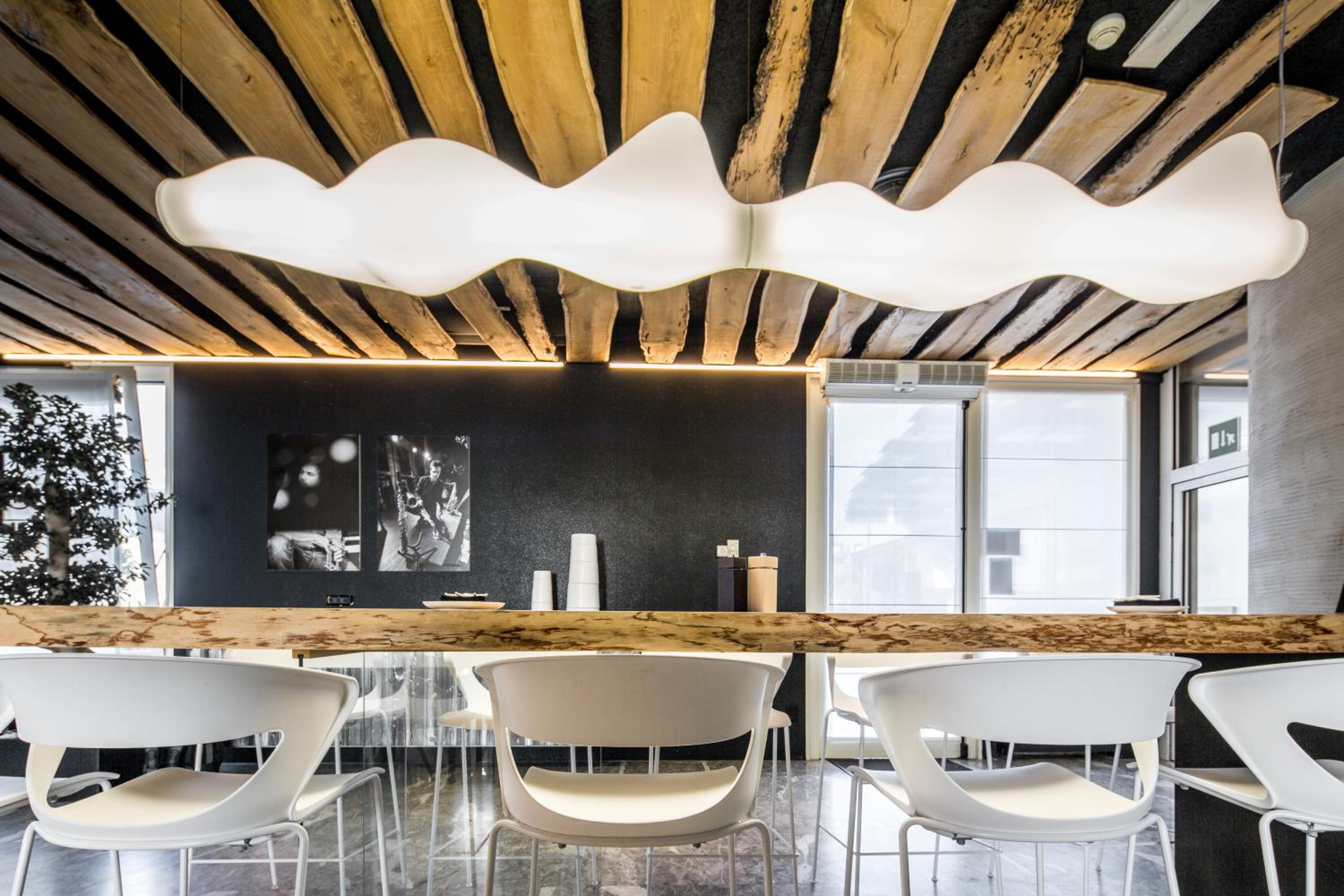 Schöner Frühstücksraum, sehr geschmackvolles und gutes 'Restraurant. Das Zimmer hatte eine große Dachterrasse, die wir gerne gentuzt haben.