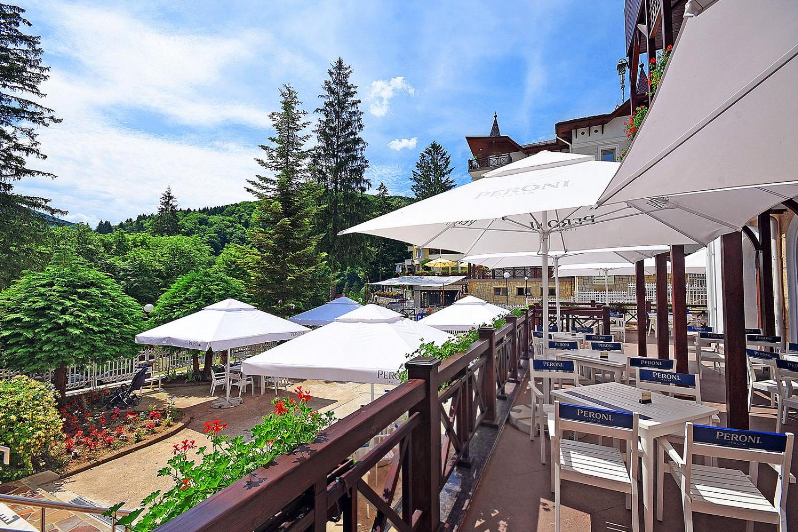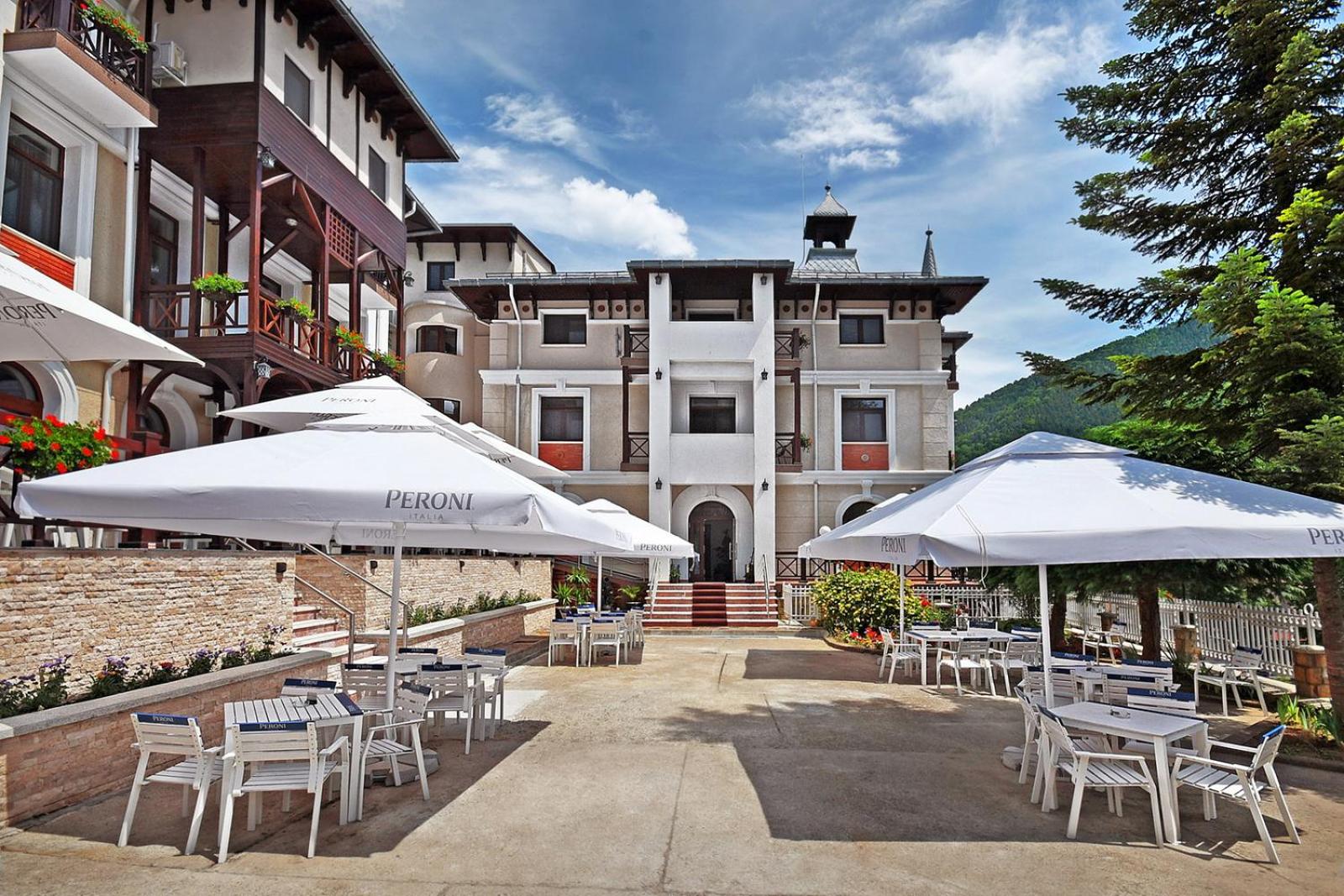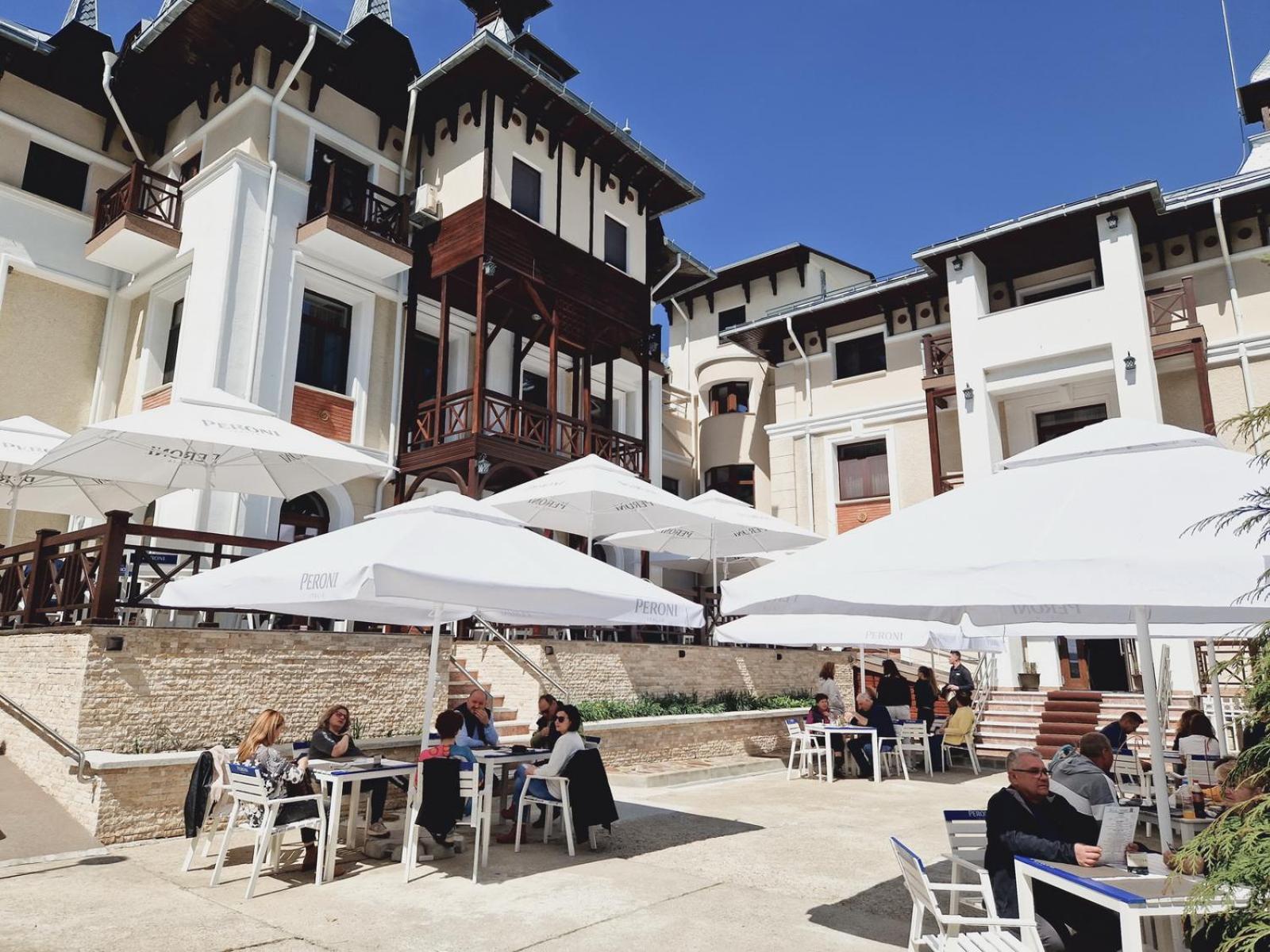 Hotelul are o arhitectura interesanta , este o cladire istorica,Situat in centrul statiunii ofera o priveliste incantatoare.Doamnele de la receptie elegante si grijulii.Personalul amabil si atent la detalii.Camera spatioasa , frumos amenajata , curata si parfumata. Mic dejun variat si sanatos. Muzica faina la ...cina.