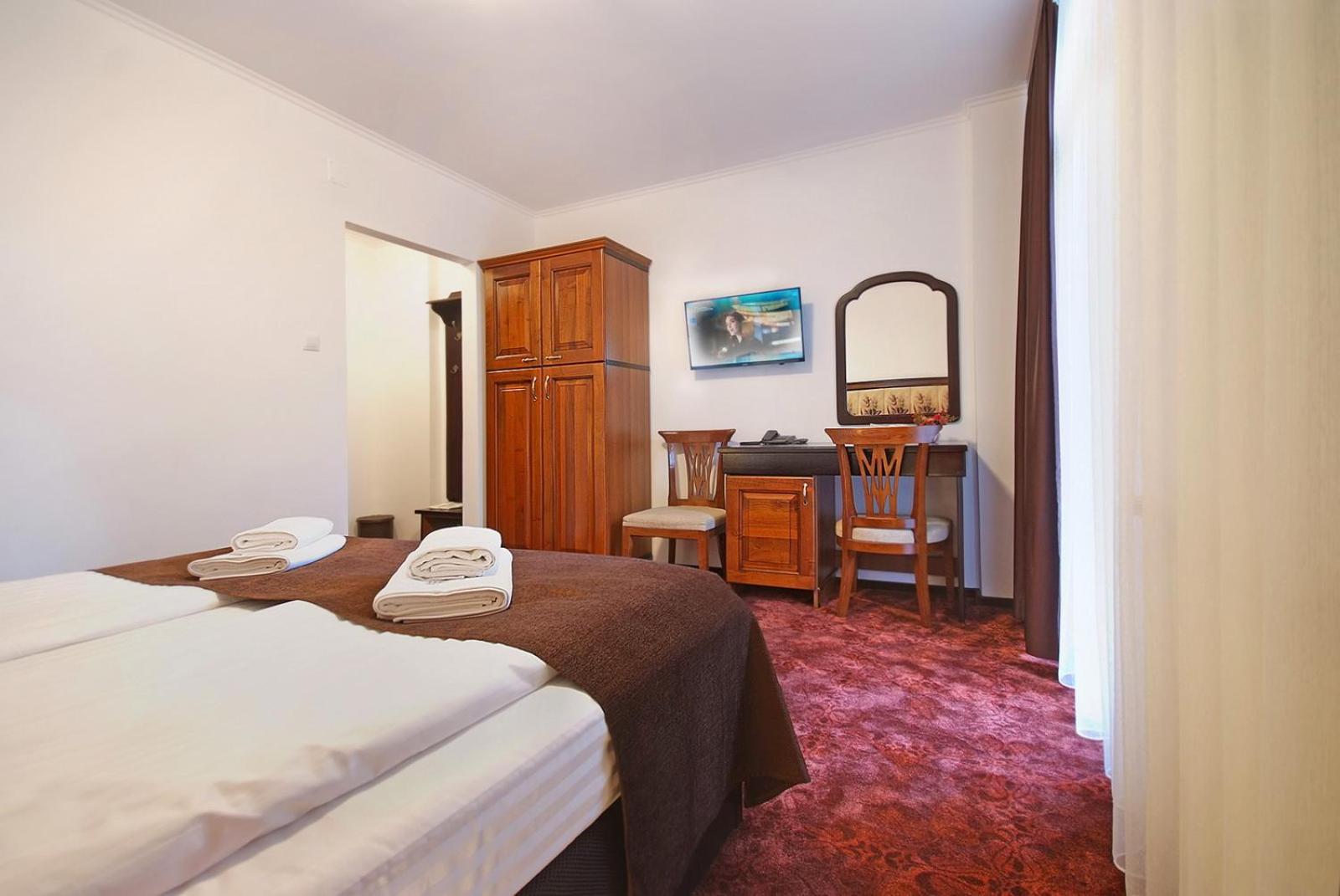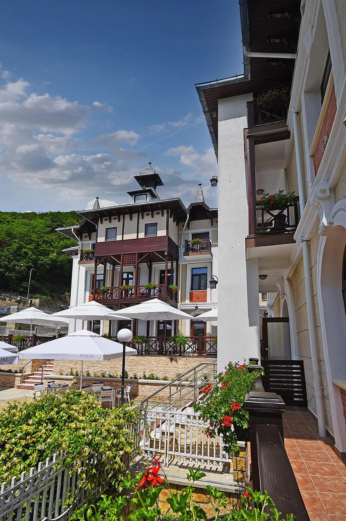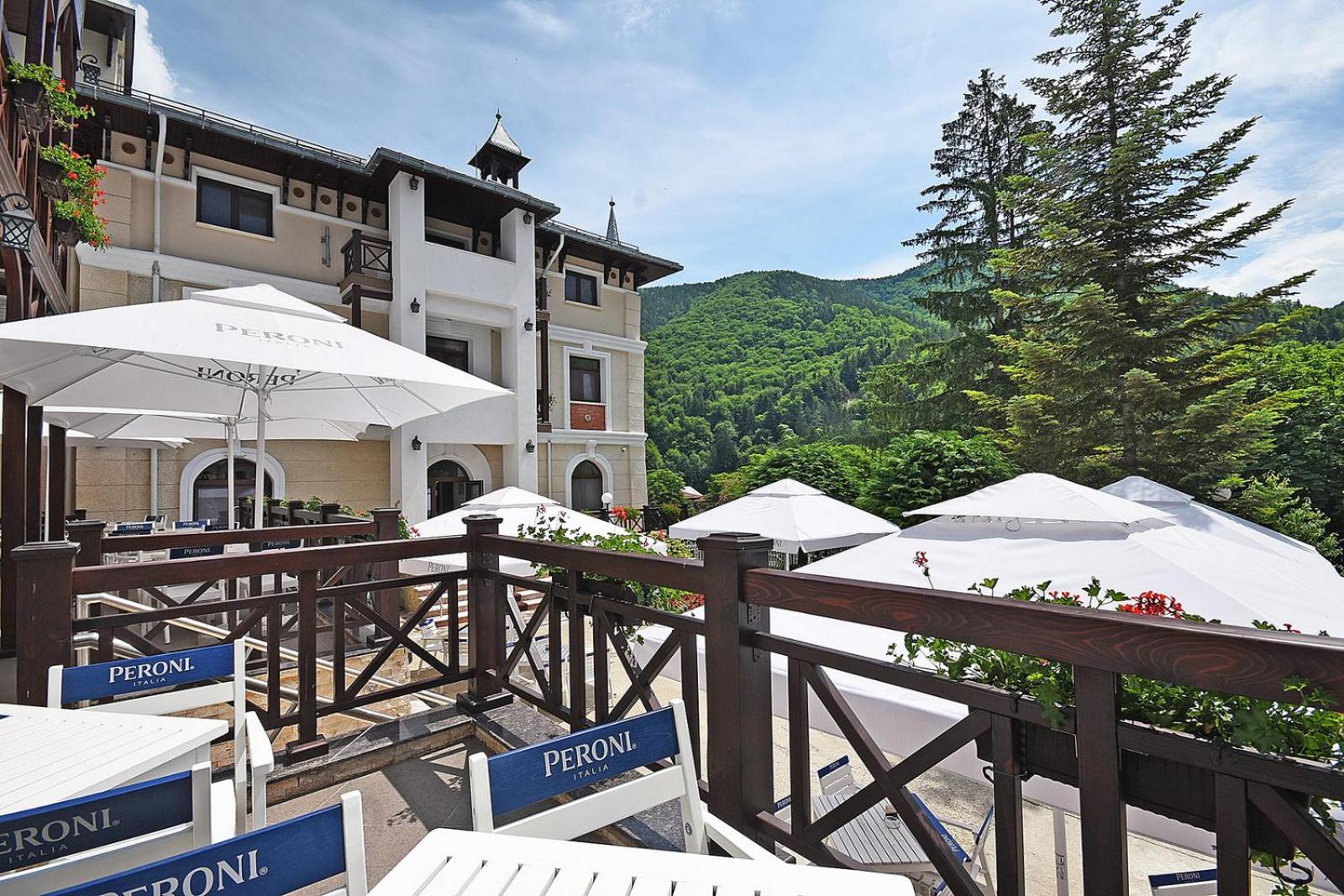 Hotelul are o arhitectura interesanta , este o cladire istorica,Situat in centrul statiunii ofera o priveliste incantatoare.Doamnele de la receptie elegante si grijulii.Personalul amabil si atent la detalii.Camera spatioasa , frumos amenajata , curata si parfumata. Mic dejun variat si sanatos. Muzica faina la ...cina.