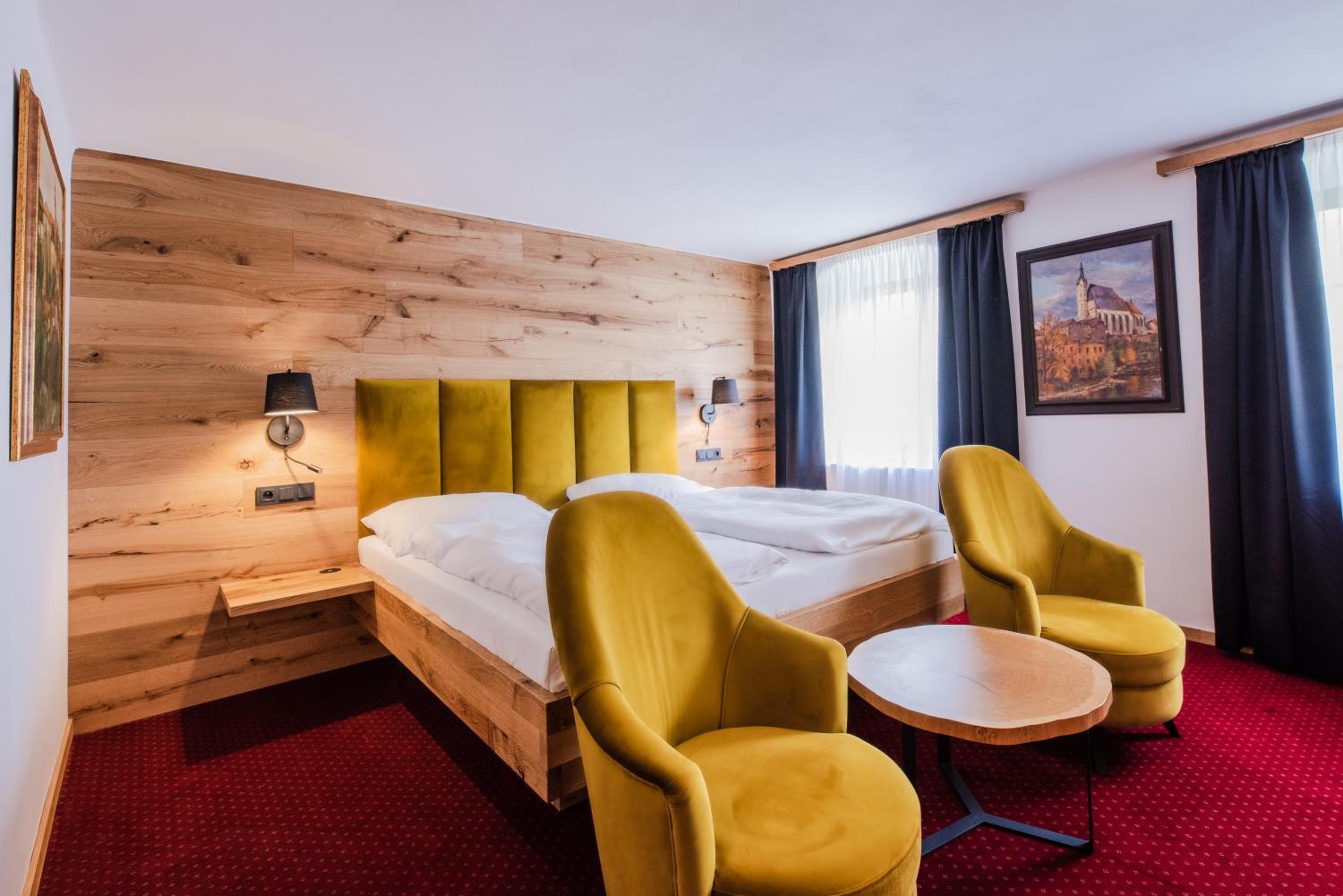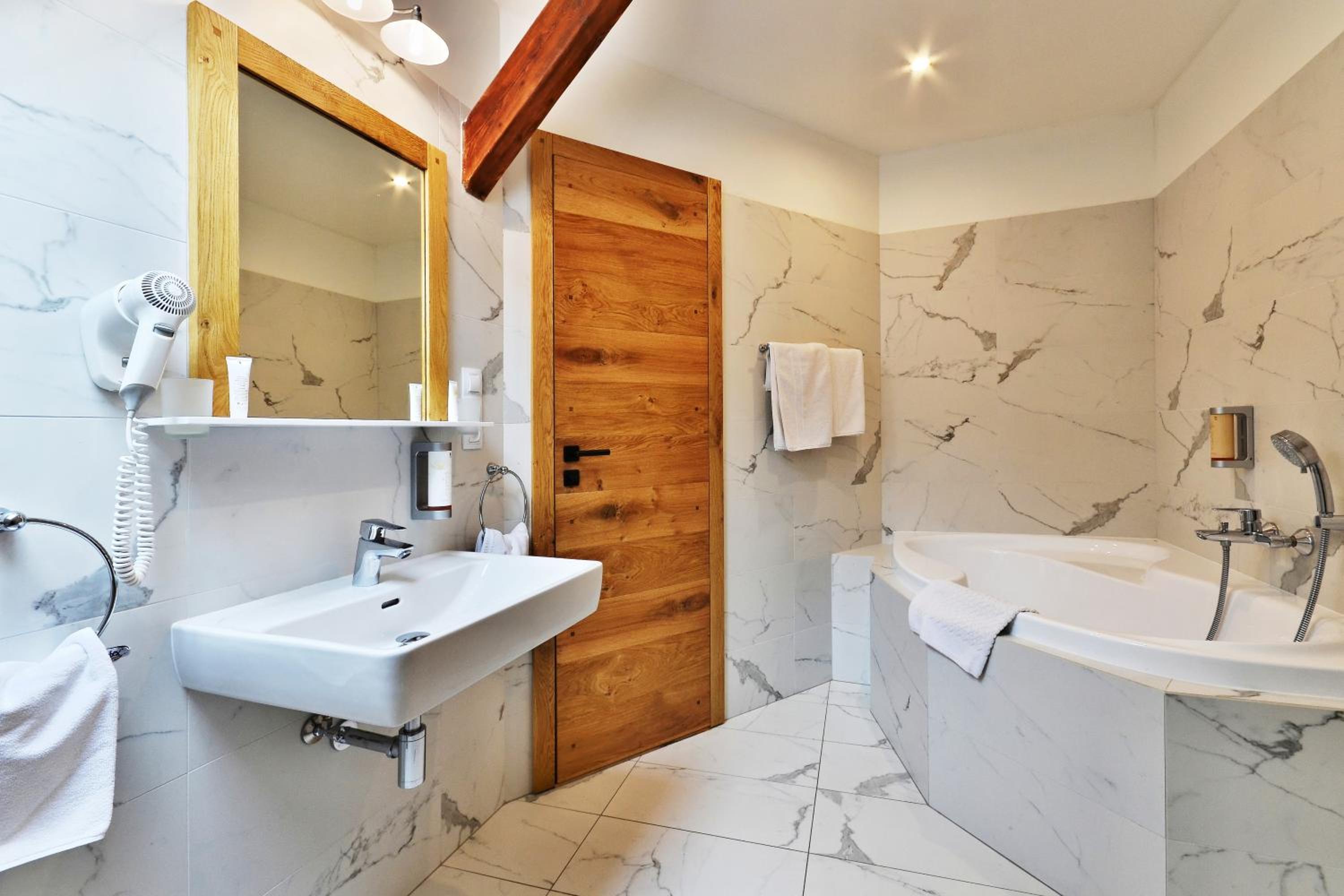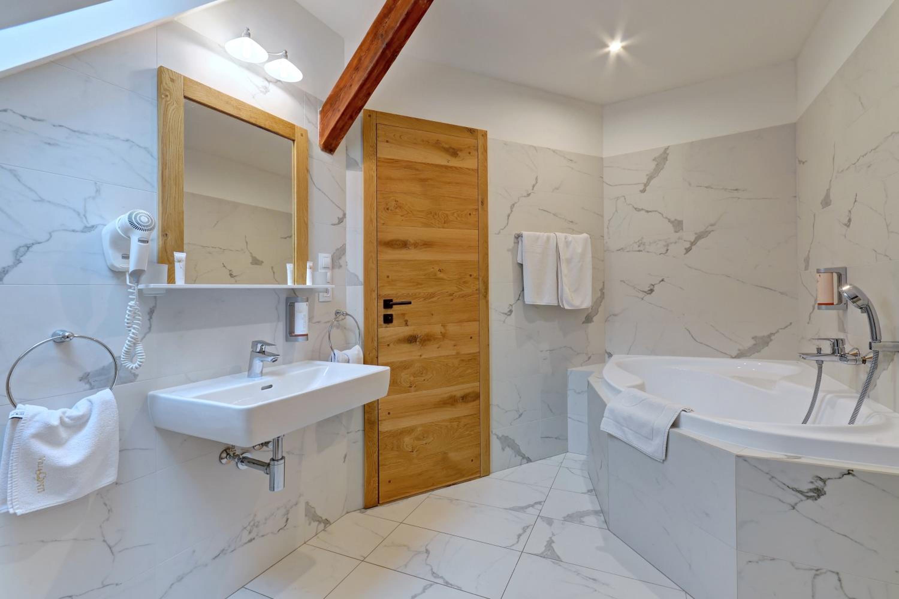 Hotel se nachází kousek od centra i od zámku. Pokoj byl moderně a vkusně zařízen, postel velmi pohodlná. Snídaně bohaté, každý si přijde na své.