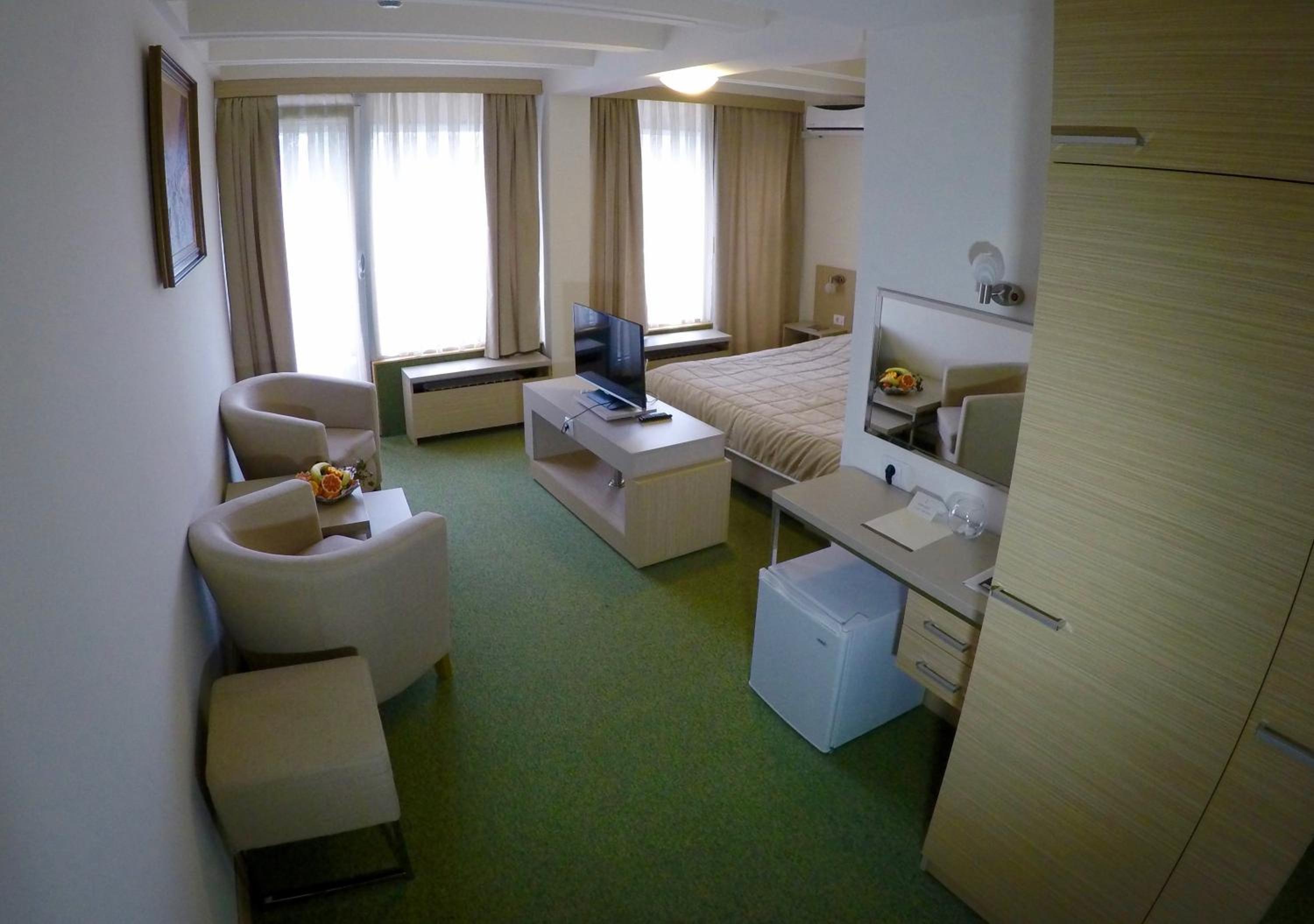 The bright rooms at Merkur Health & Spa Resort provide picturesque views of Banja centre and are equipped with modern amenities such as air conditioning, cable TV, and a mini bar. Relax in the luxurious bathrooms featuring a bath or shower, along with complimentary slippers and bathrobes.