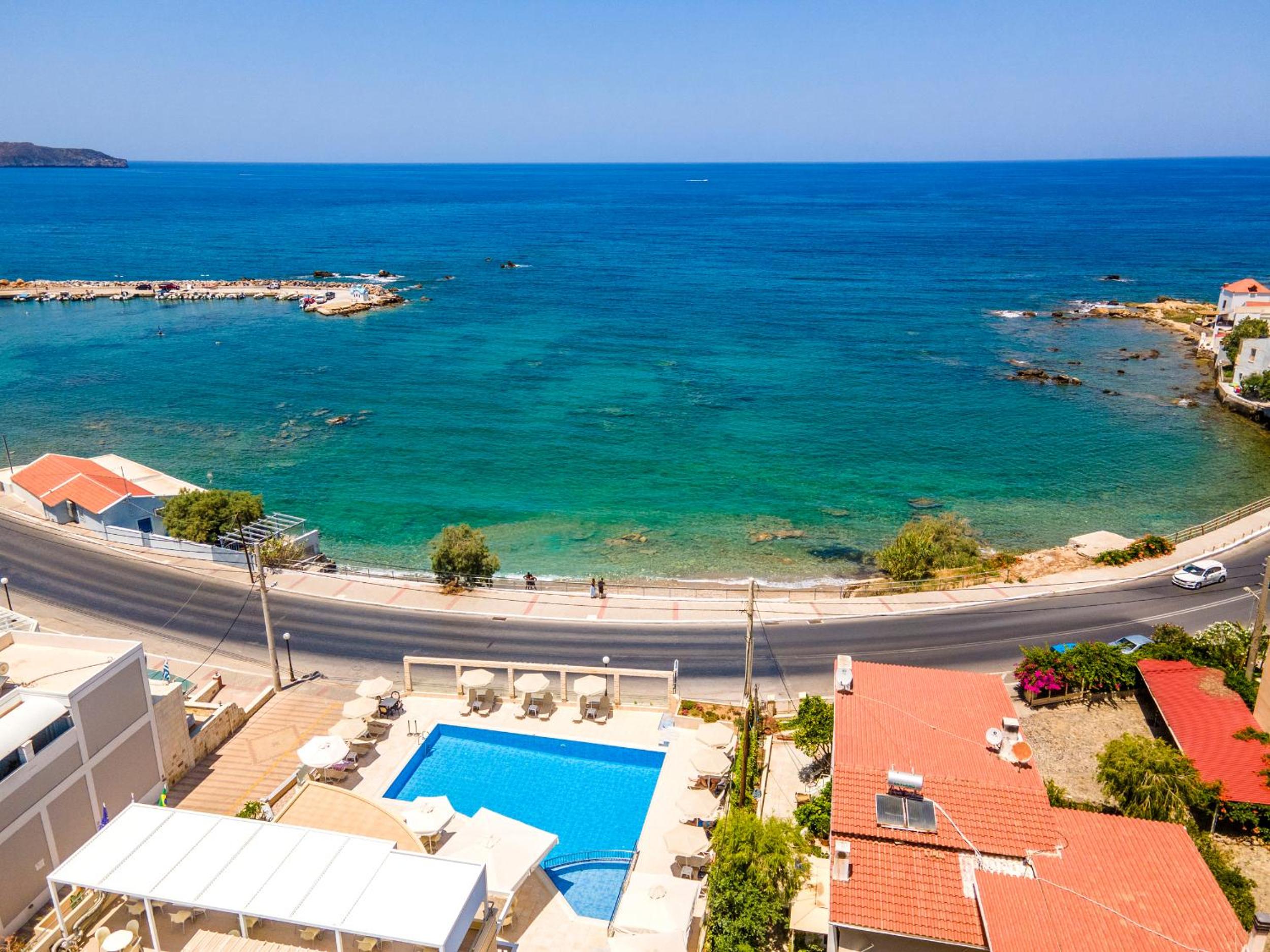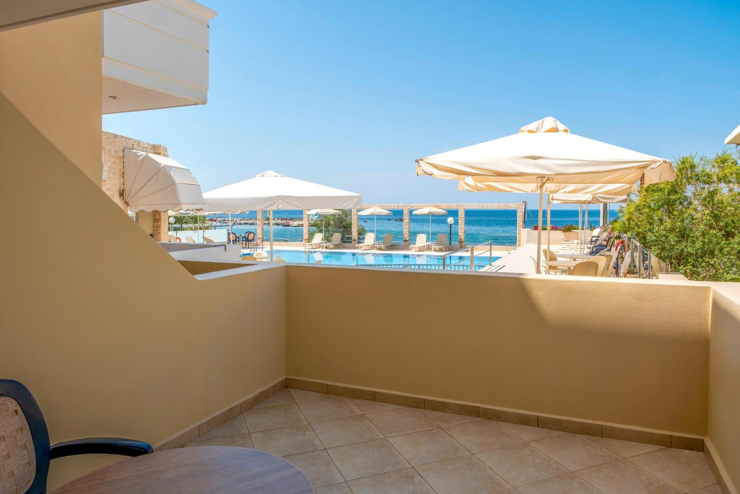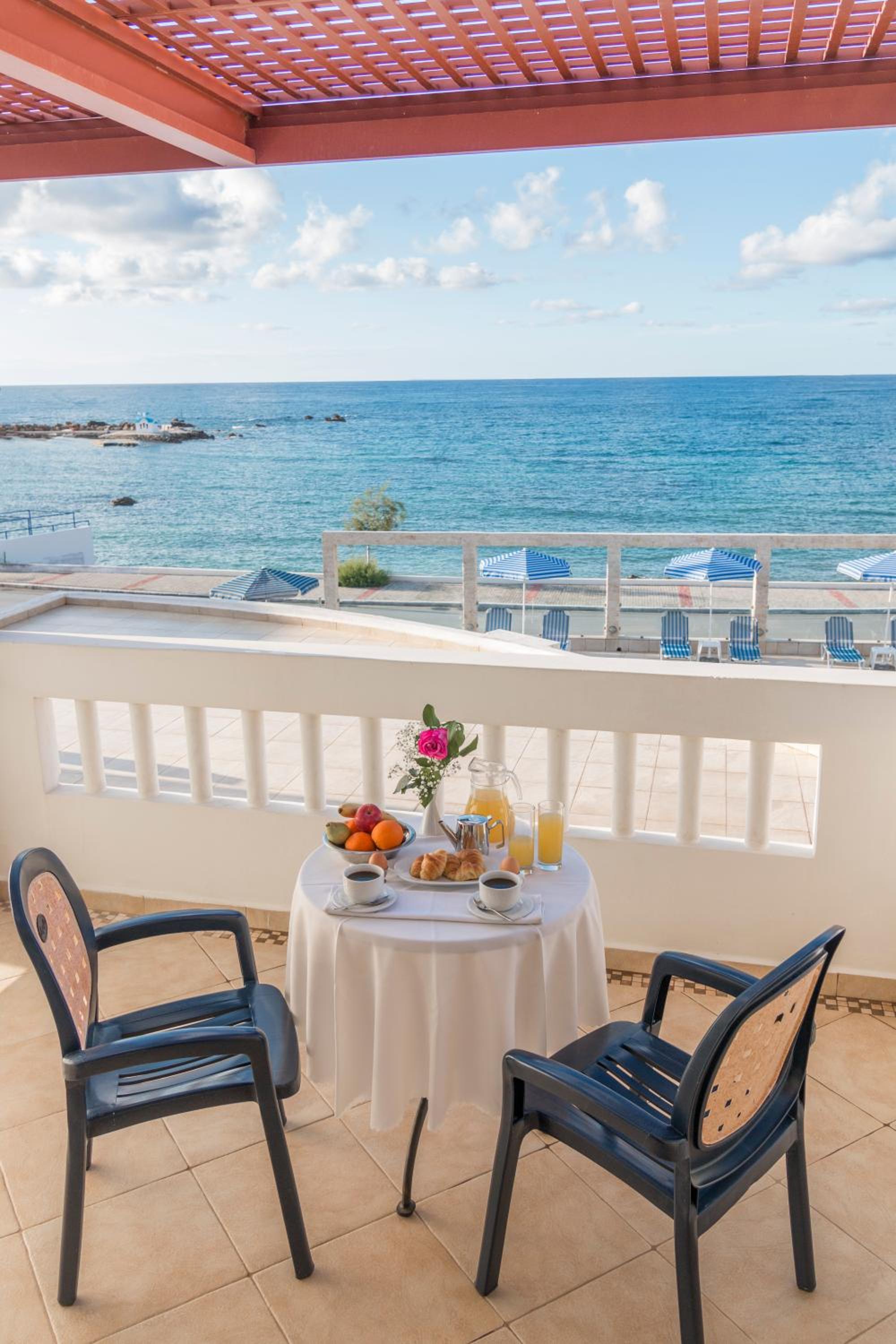 La amabilidad del personal, ubicación cerca de Chania y con muchos restaurantes y tiendas en los alrededores, cama y almohadas muy cómodas, desayunar mirando el mar con unas vistas estupendas. Tamaño de la habitación ideal.