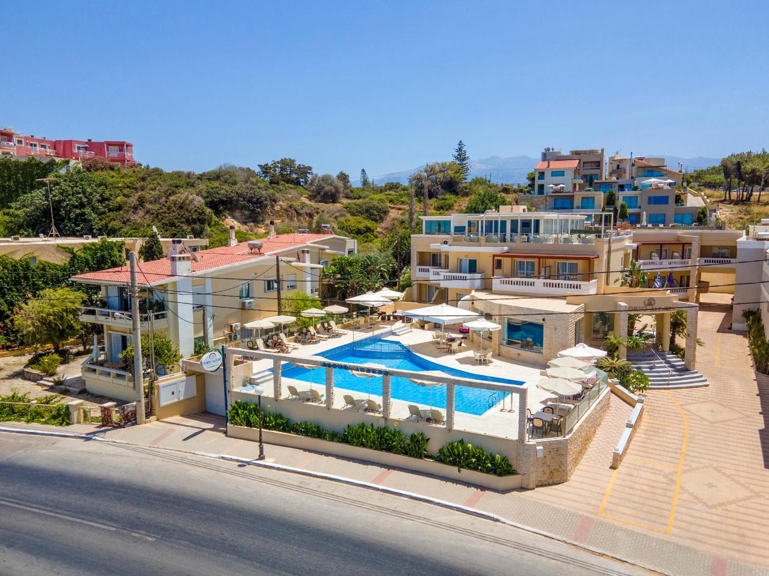 The Porto Alegre, located just 5 km from Chania, offers a delightful beachfront experience. The resort boasts 2 pools, one dedicated to children, and a playground, ensuring fun for the whole family.