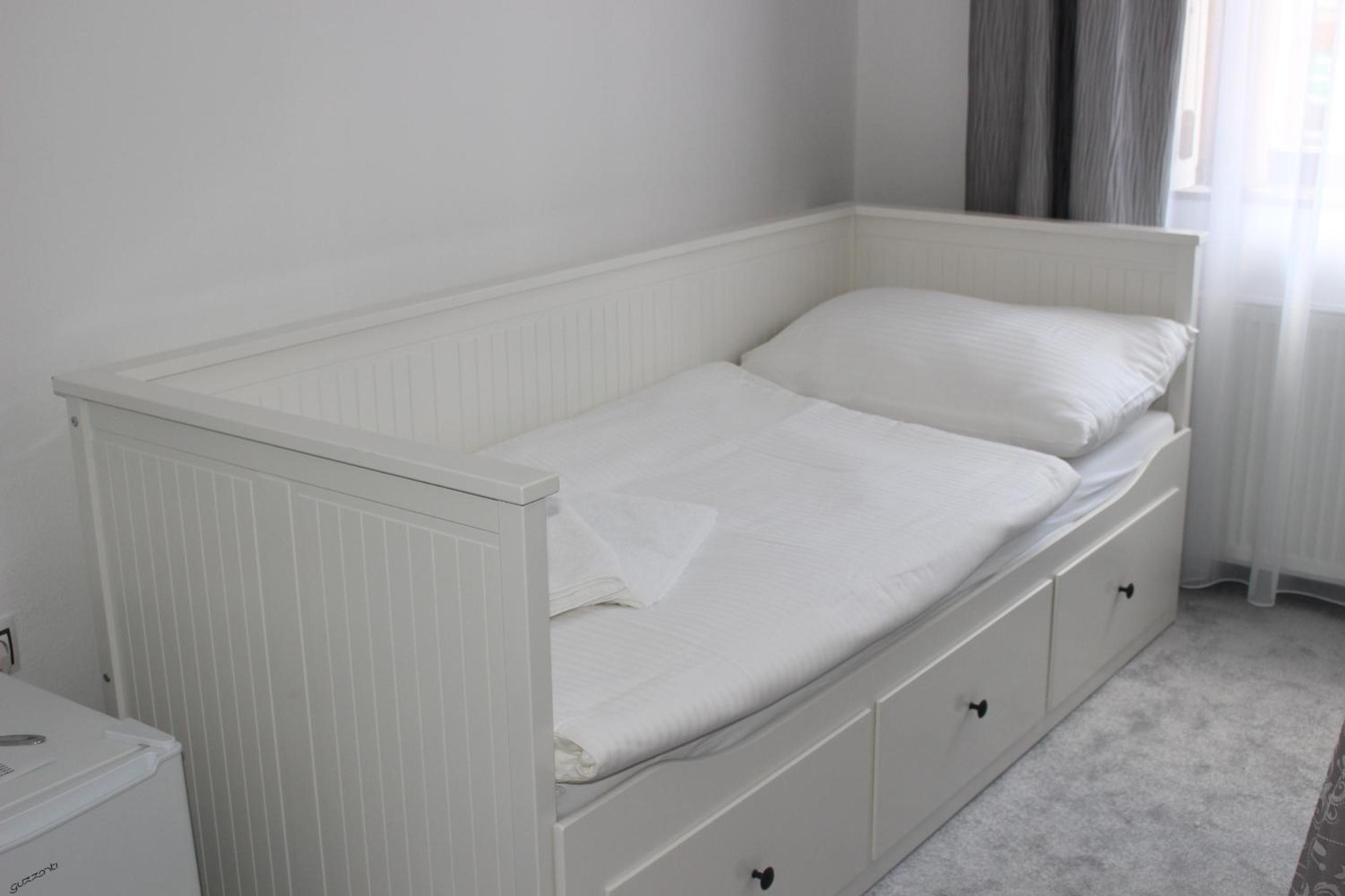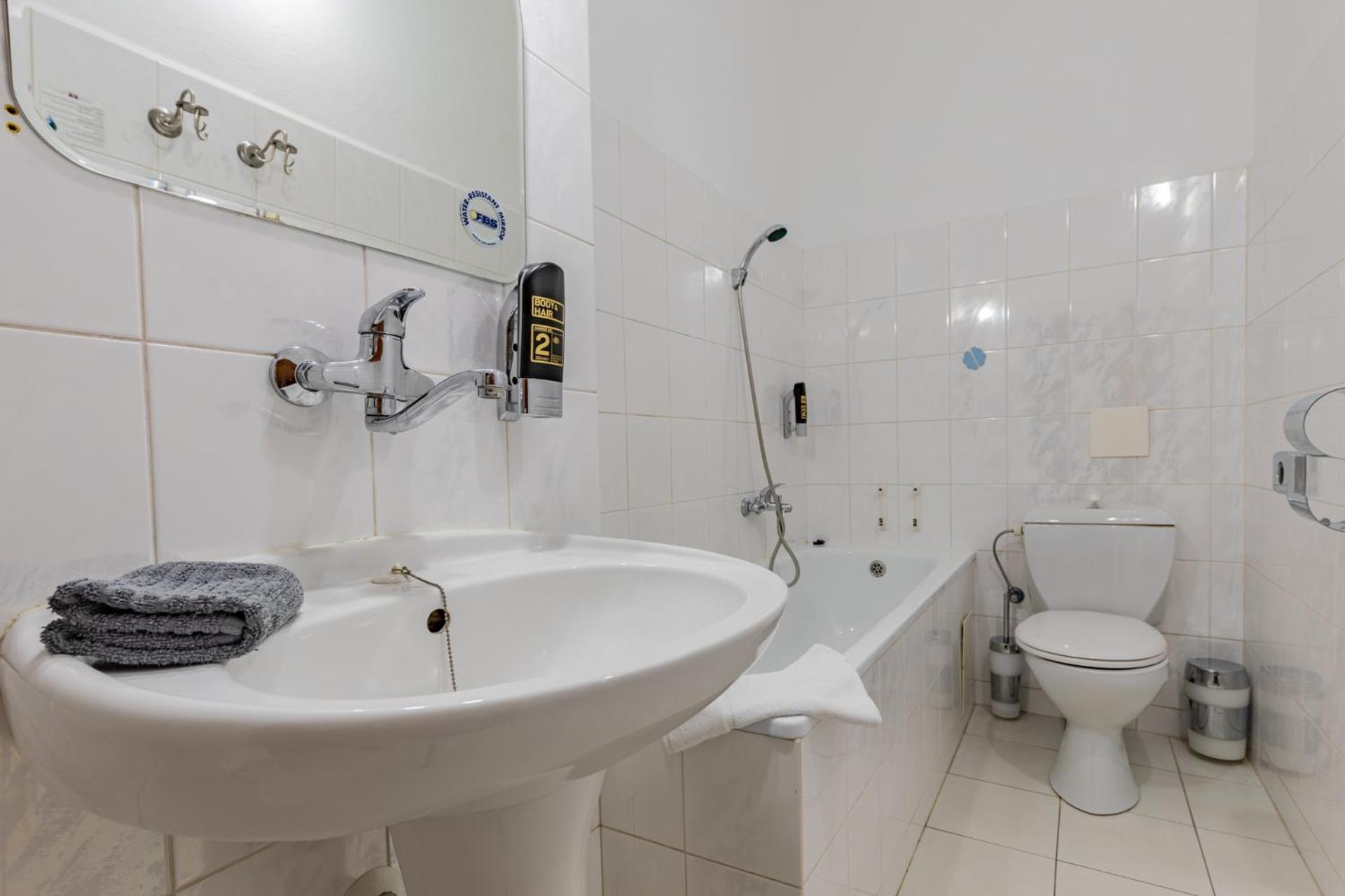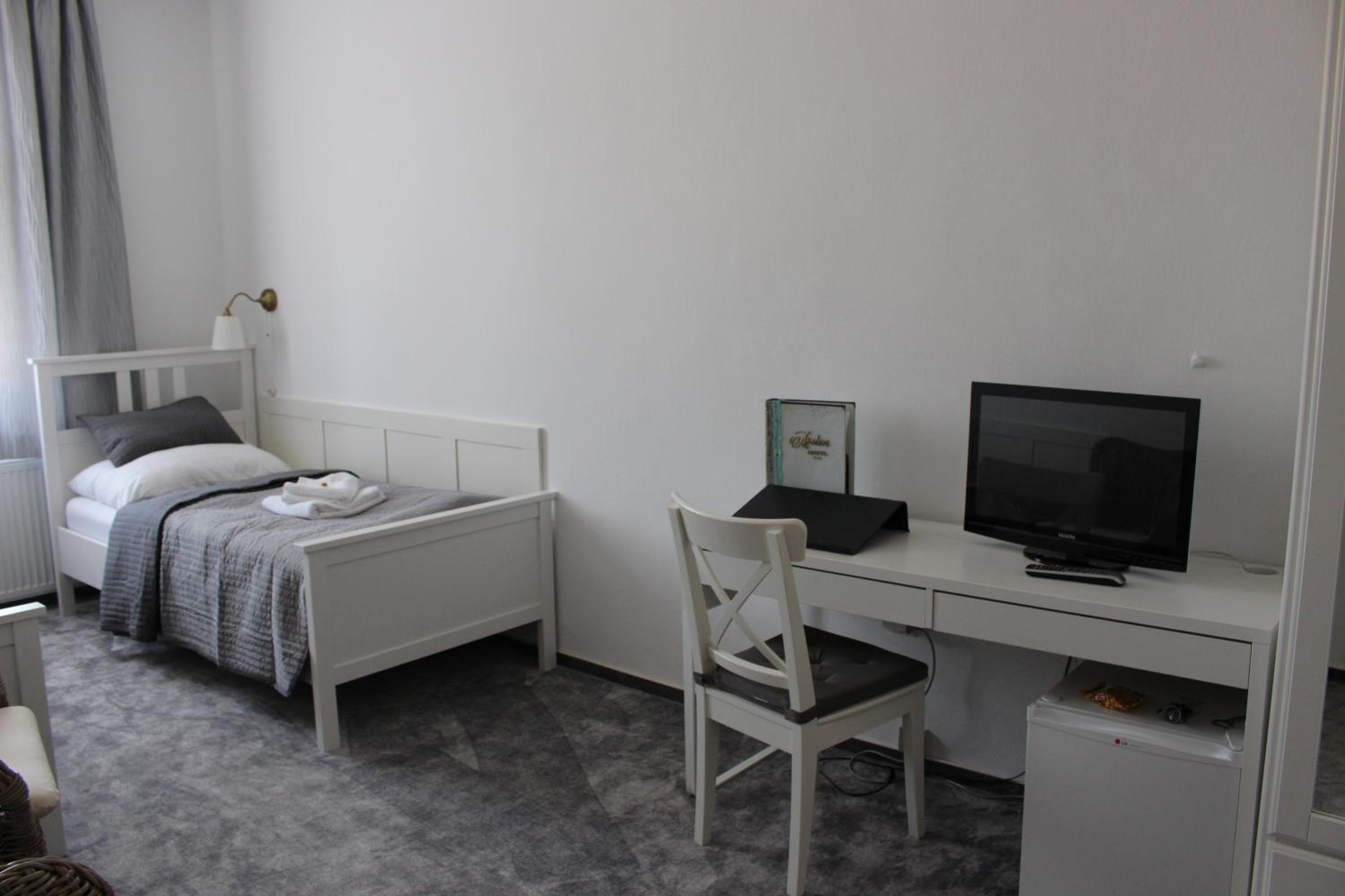 The room is clean, but with not very comfortable bed, ugly table and two armchairs which I didnt test, the bedding was too soft and the bed screeched. The bathroom has a bath where showering was very uncomfortable. I did not get any information, if the garden was accessible, although I see one from the windows, but did not have time to explore this.