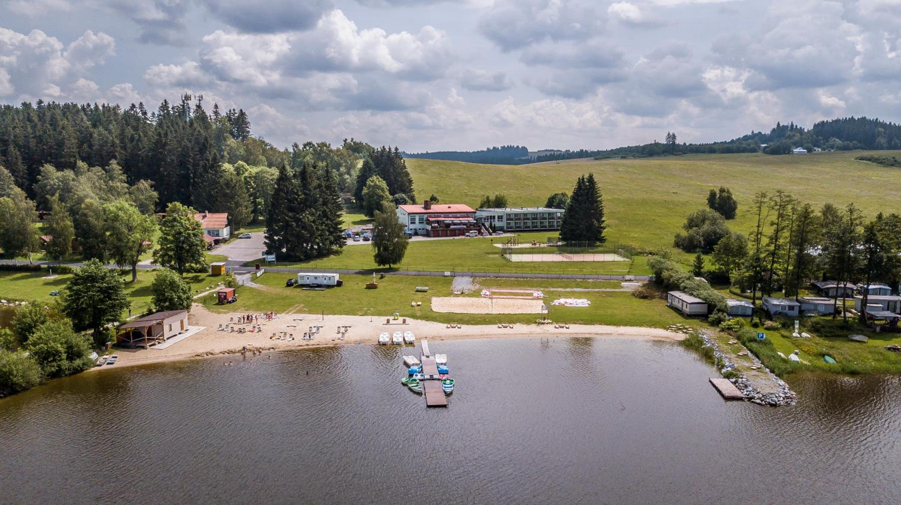 Enjoy free WiFi, satellite TV, and onsite dining with a terrace. Take advantage of sandy beaches, boat rentals, and proximity to the Šumava area.