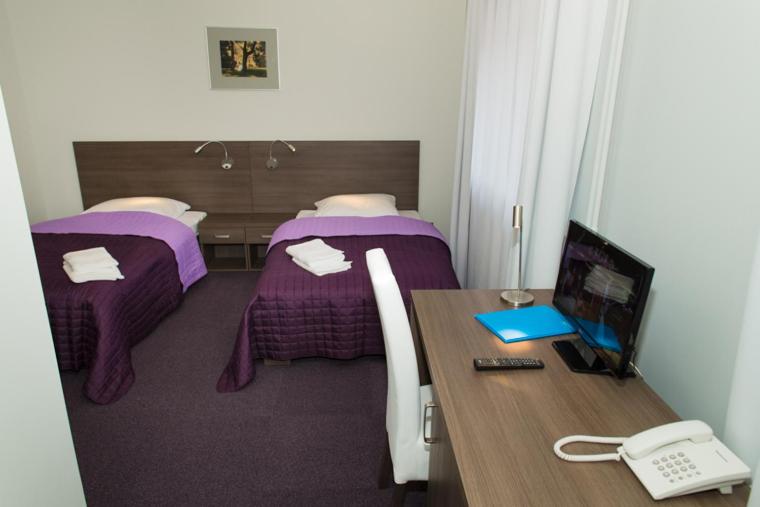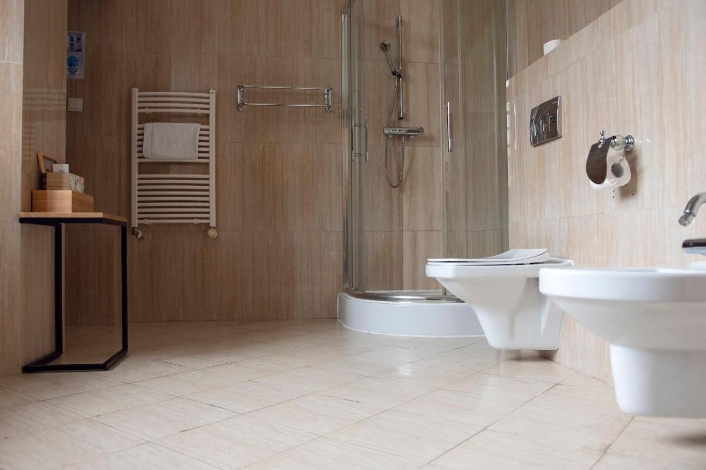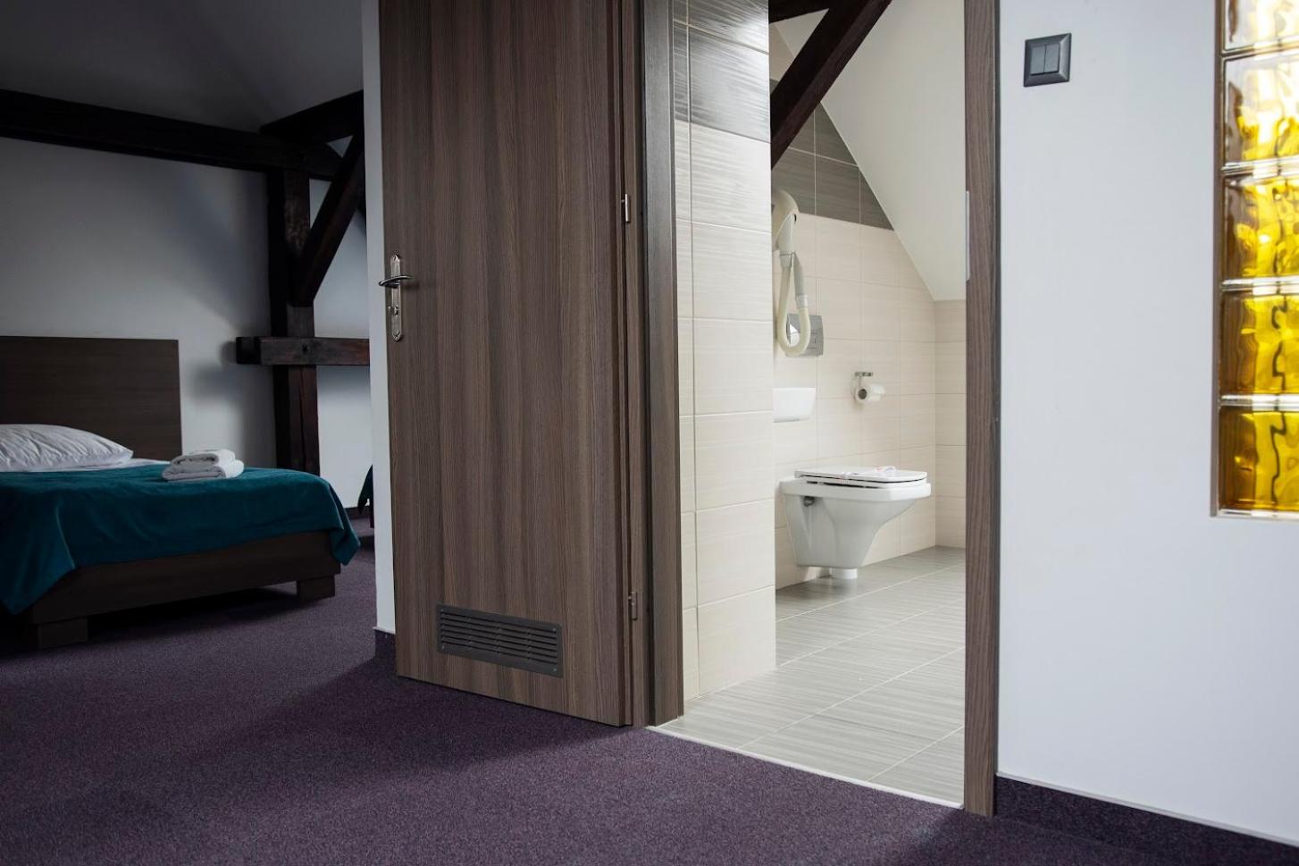 Dość nietypowe zaaranżowanie pokoju. Łazienka na piętrze, co dla osoby z problemem z chodzeniem jest dużym utrudnieniem (zamiana pokoju wynikła w ostatniej chwili po stronie hotelu). Szafka z telewizorem umiejscowiona pomiędzy łóżkami w ich wezgłowiu, co nie ma za bardzo sensu. Obie kwestie do poprawy.