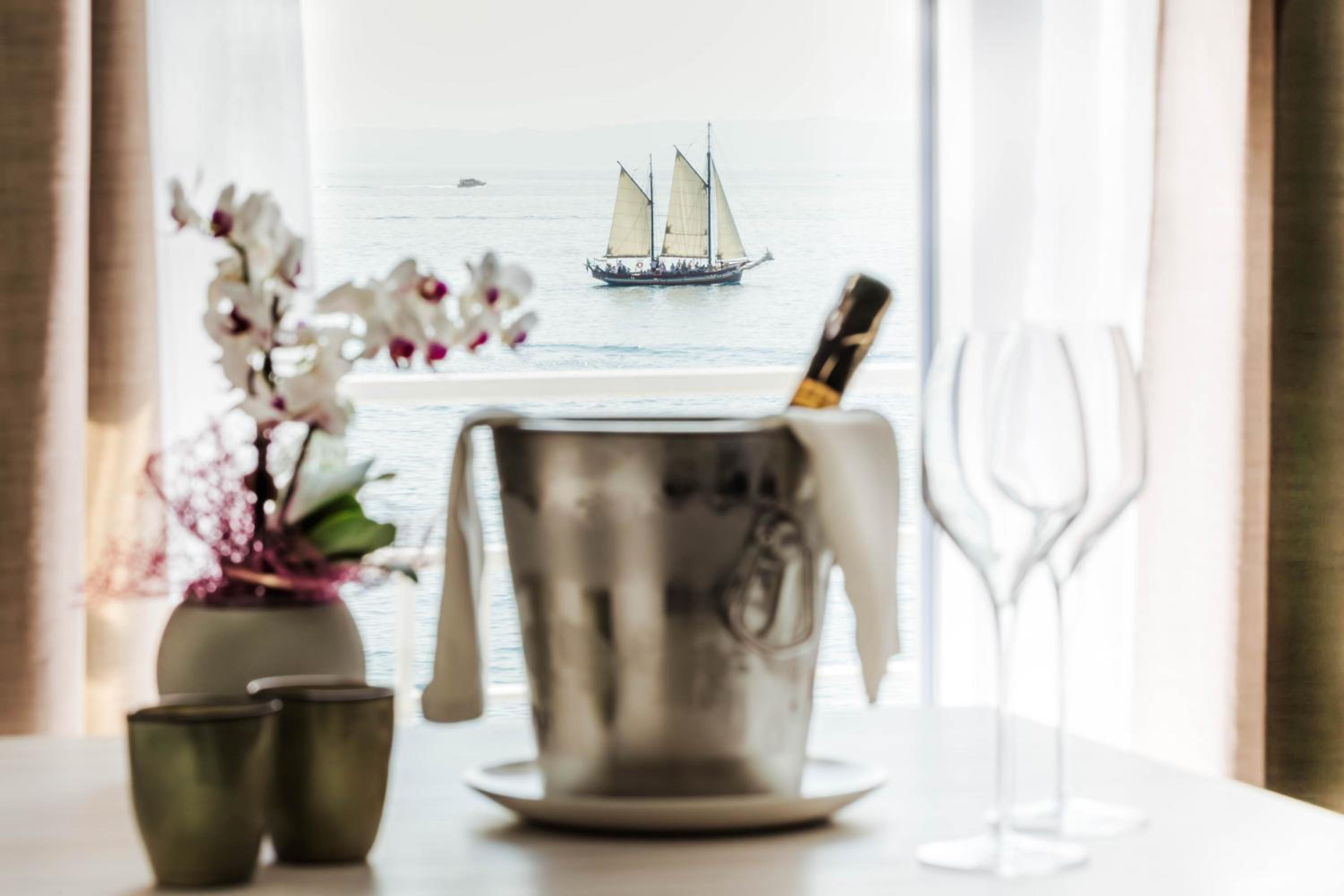 Each en suite room at the hotel features classic furnishings, light colors, and either parquet or carpeted floors. Guests can enjoy the option of rooms with stunning views of the tranquil lake, some even boasting a private balcony.
