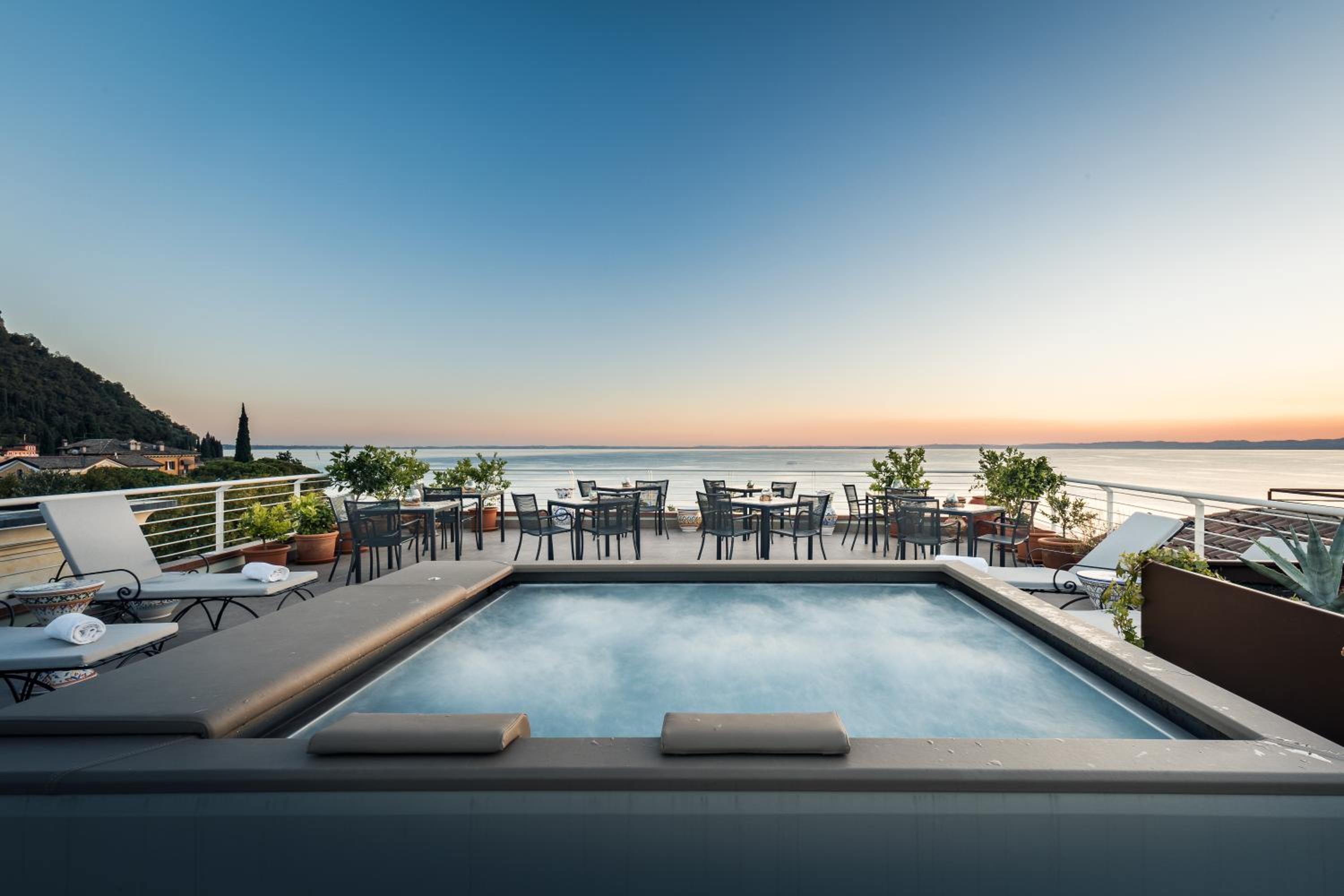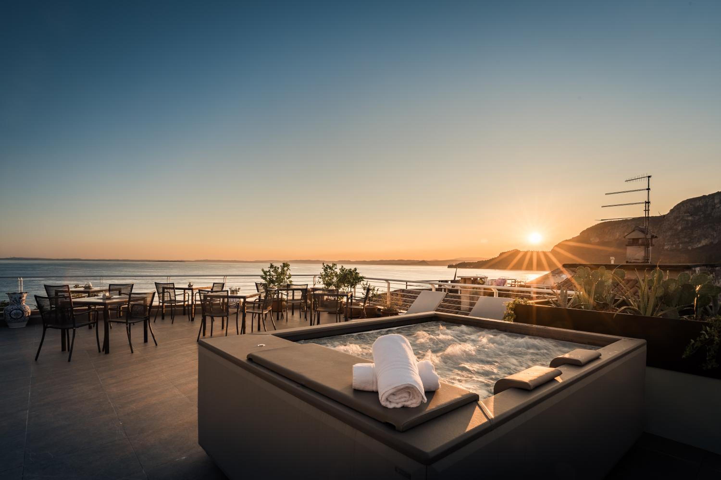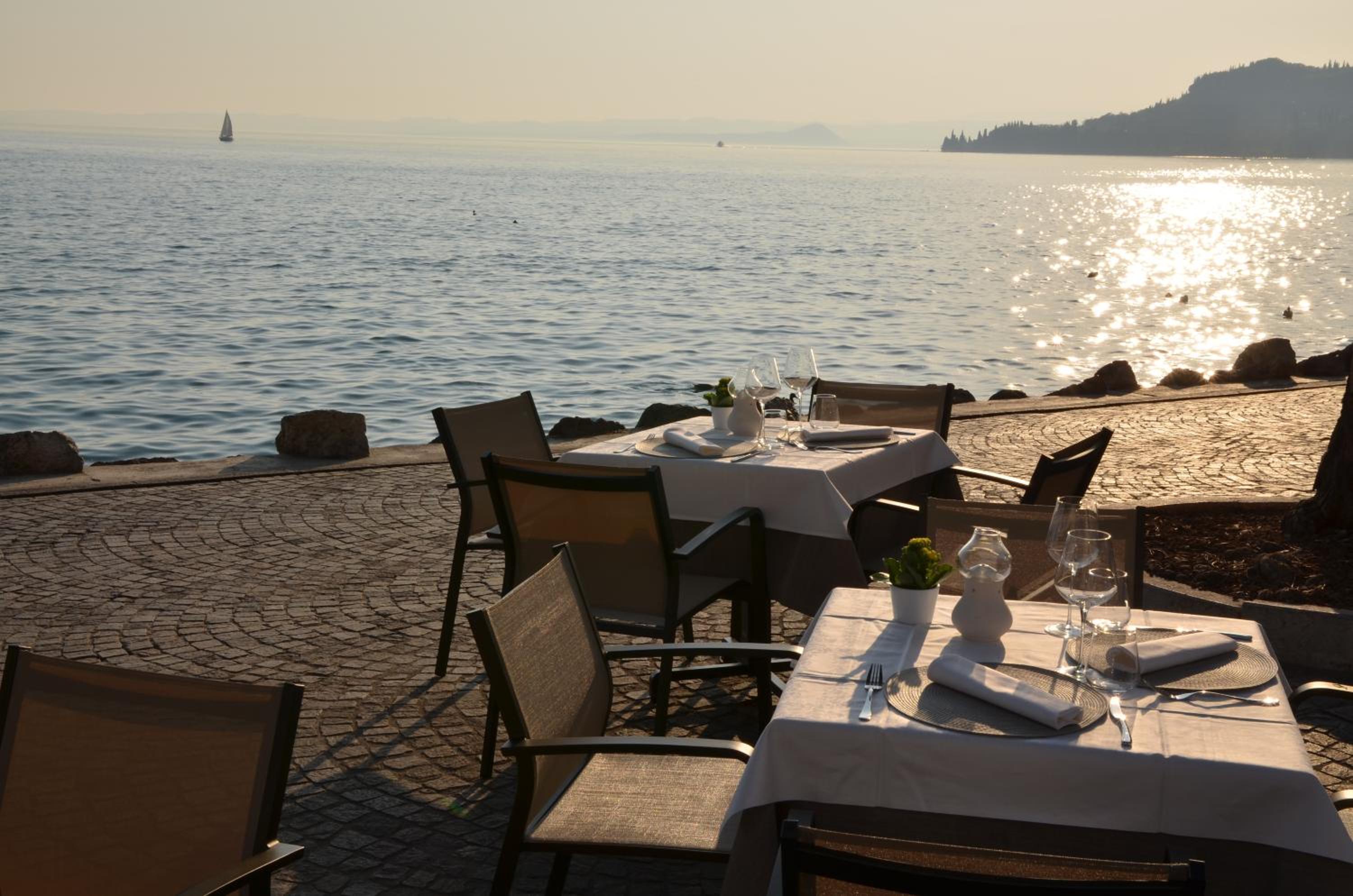 The location was superb, right on the main promenade in Garda town. All restaurants and shops etc were just minutes away. Our room directly overlooked the lake and the view just took your breath away. The staff were all very friendly and helpful throughout our stay. Breakfast was plentiful and varied. The roof terrace was definitely an added bonus and we chilled up there before dinner on a couple of evenings. It would benefit from some parasols for shade in the high season.