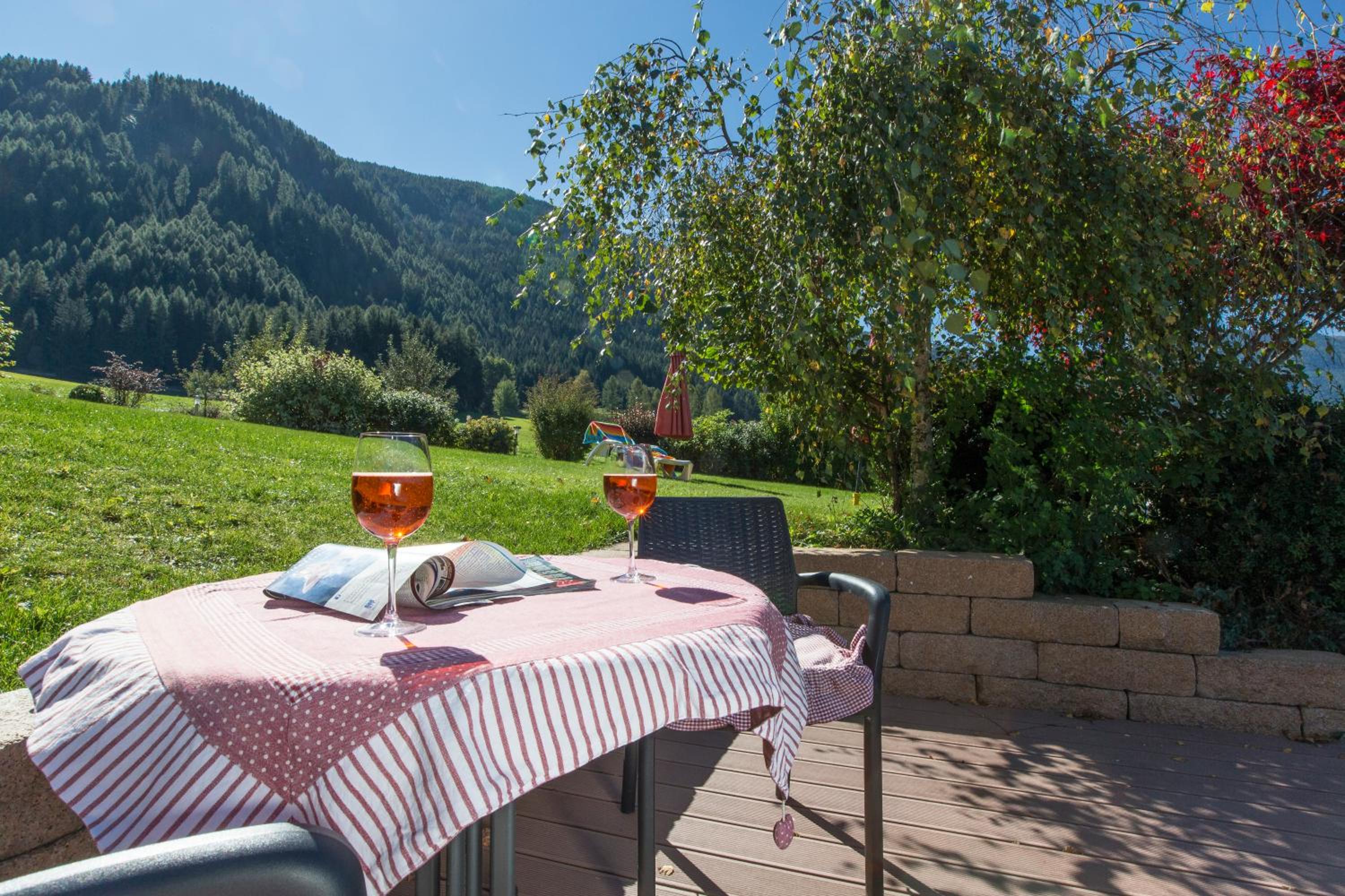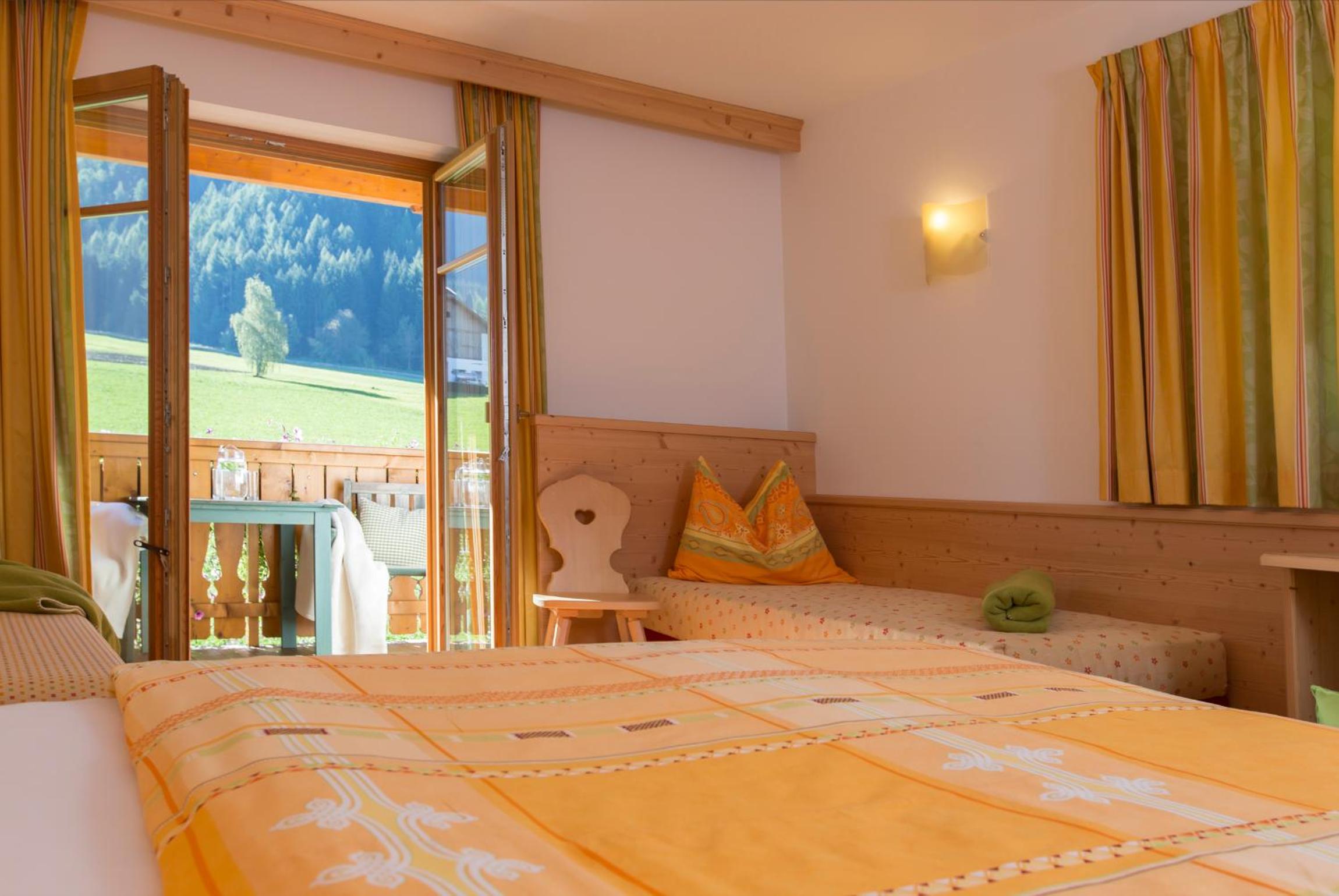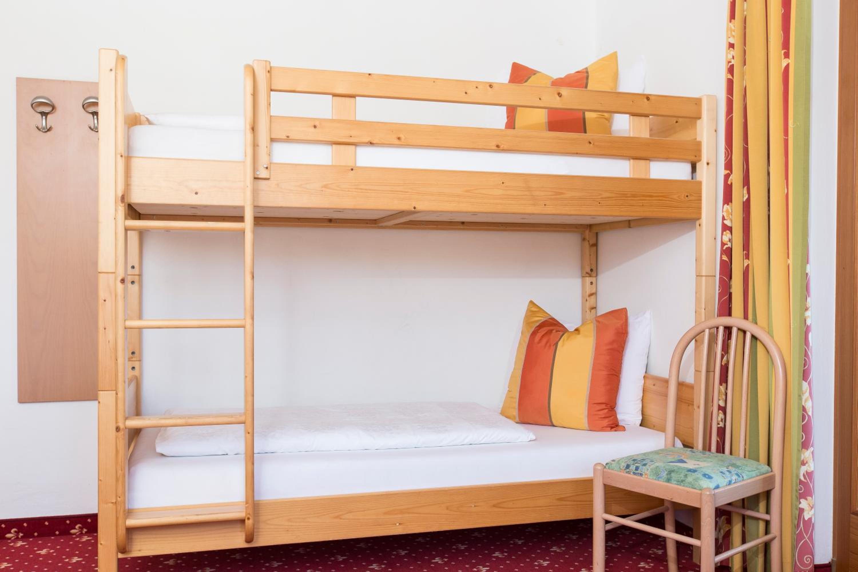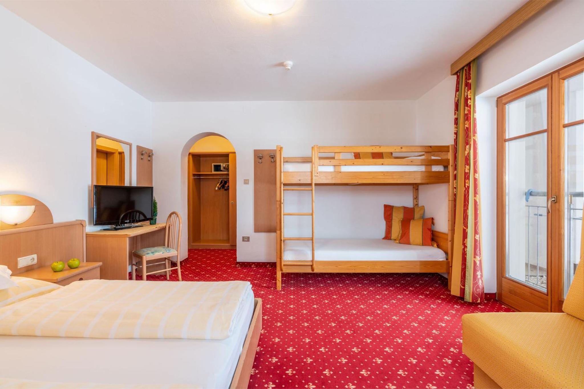 Experience breathtaking views of the mountains, forest, or town from your own furnished balcony at Hotel Lindnerhof. The traditional decor and warm colors create a cozy atmosphere for your stay.