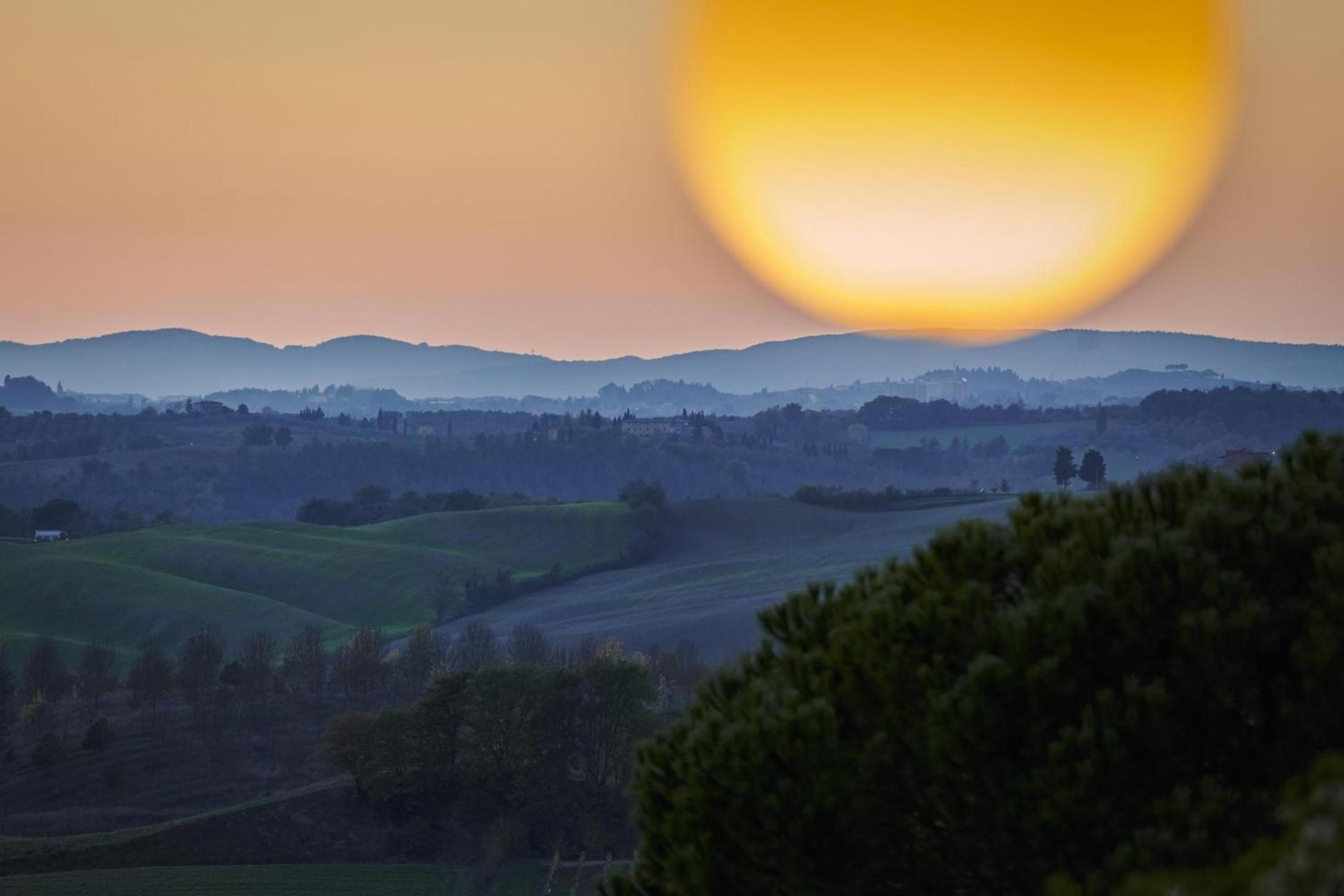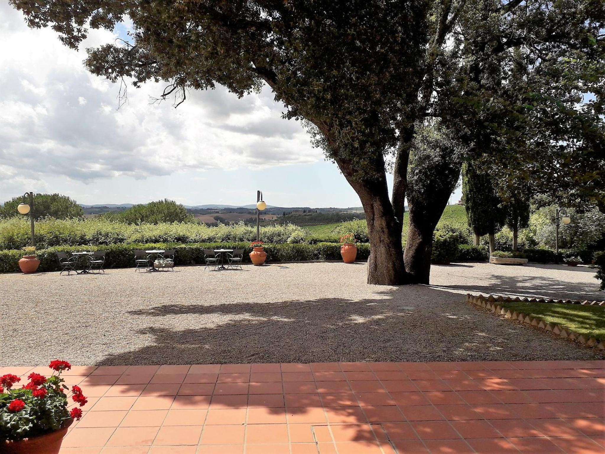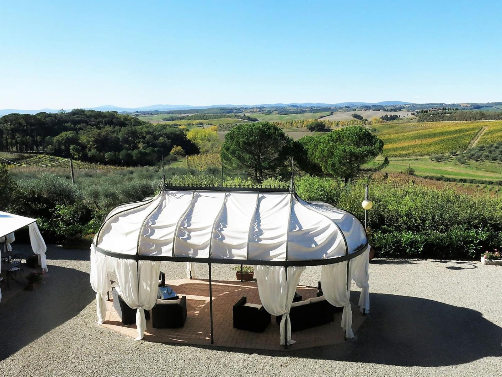 Prachtige ligging in Toscaanse heuvels met in de verte uitzicht op Siena. Uitstekend restaurant.