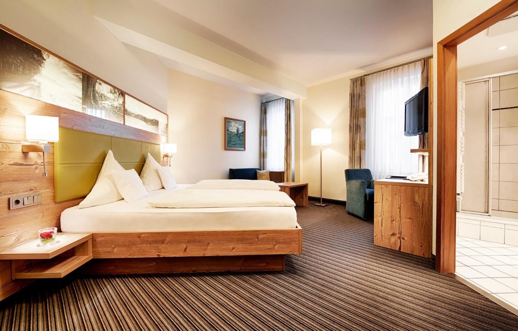 Restaurant Lamm offers regional dishes with stunning Teinachtal valley views, while guests can savor panoramic scenes from the terrace. End the day at the lobby bar with a fireplace, making Berlin's KroneLamm an ideal choice for a memorable stay.