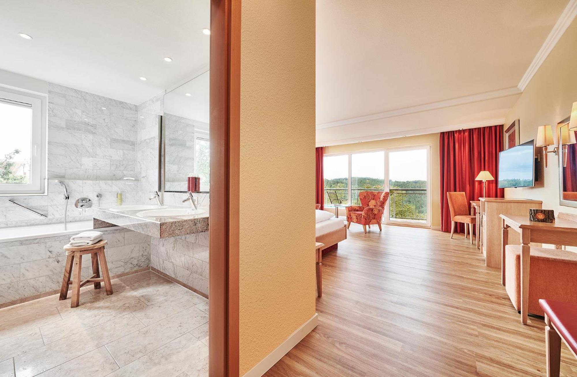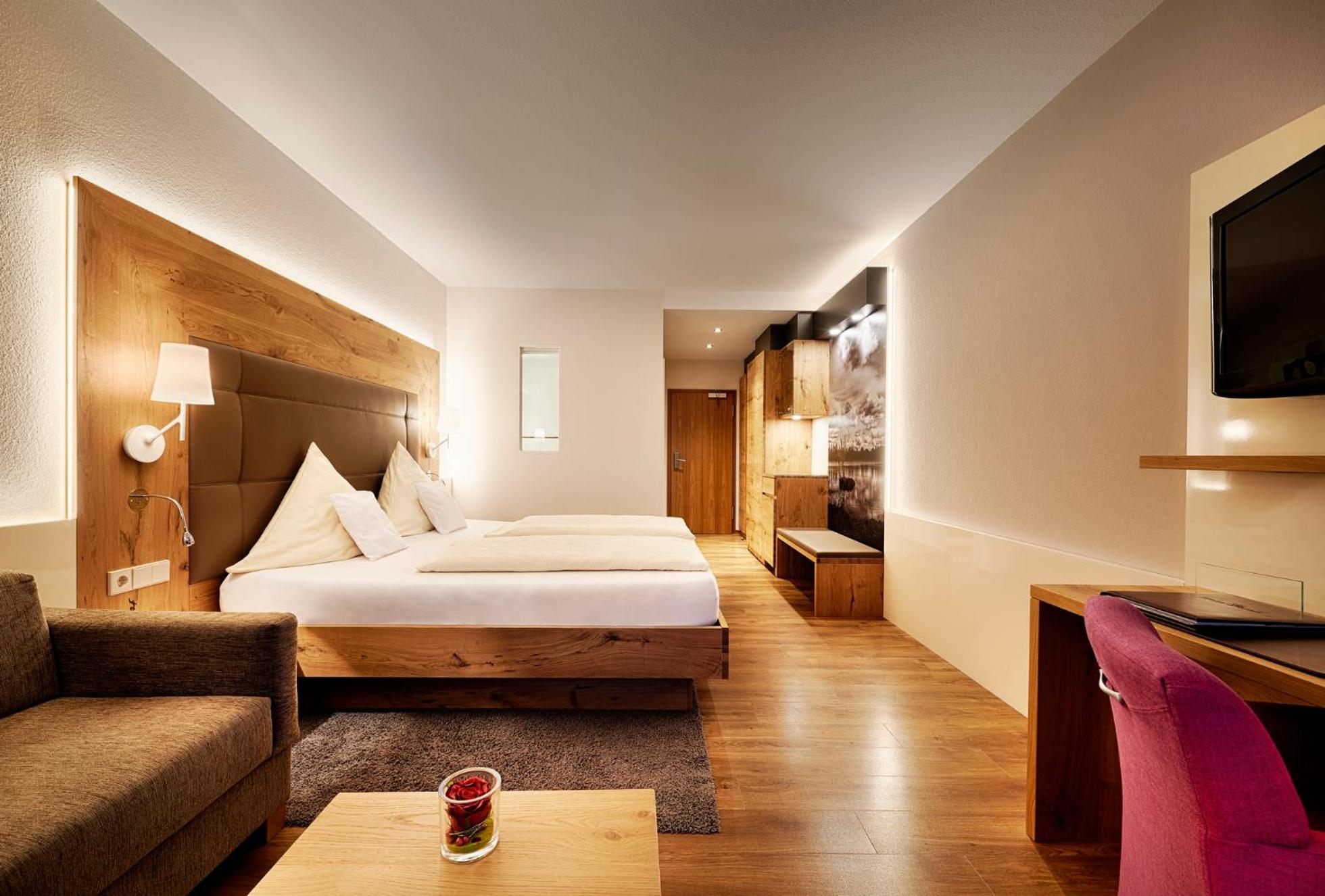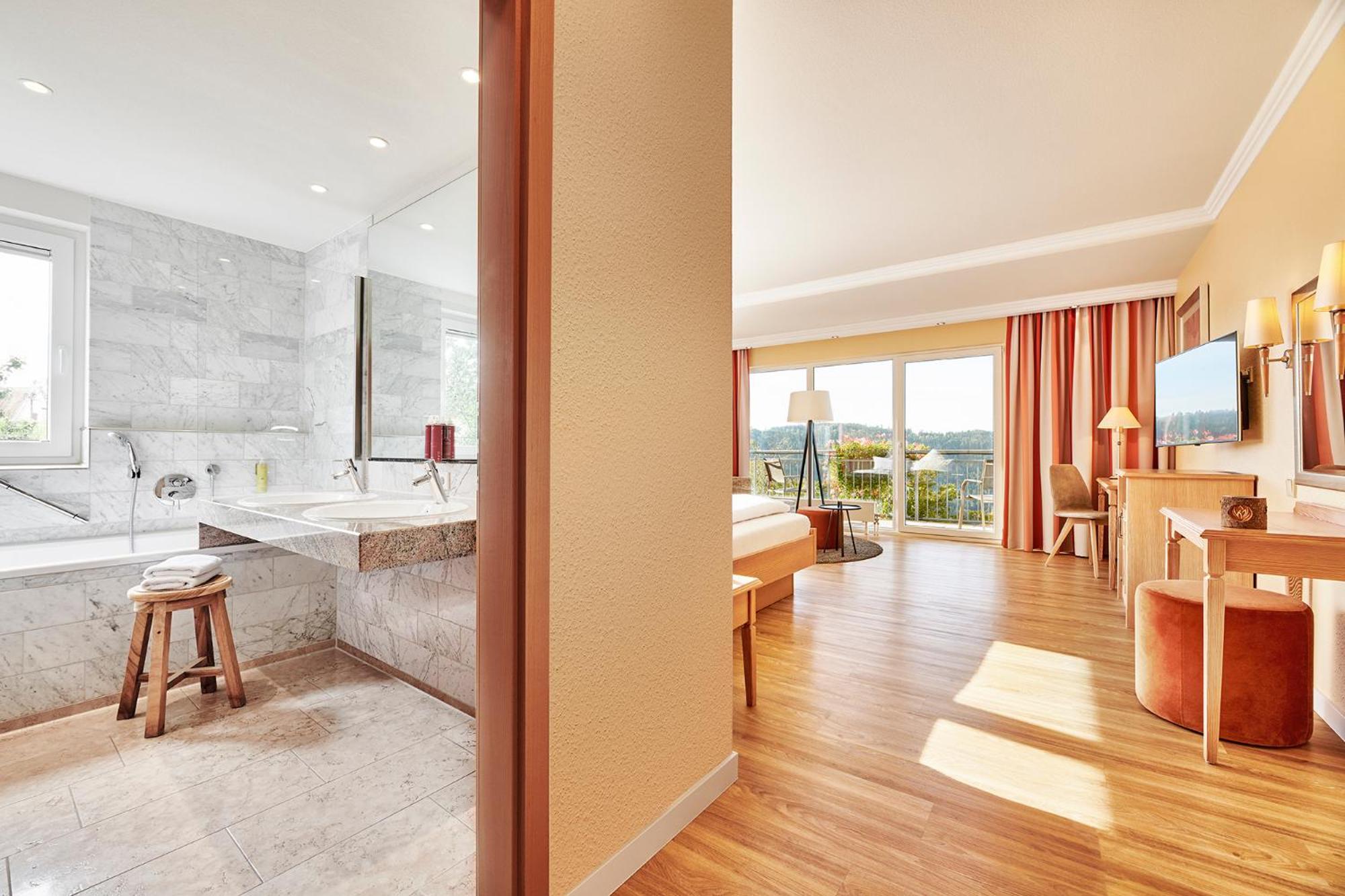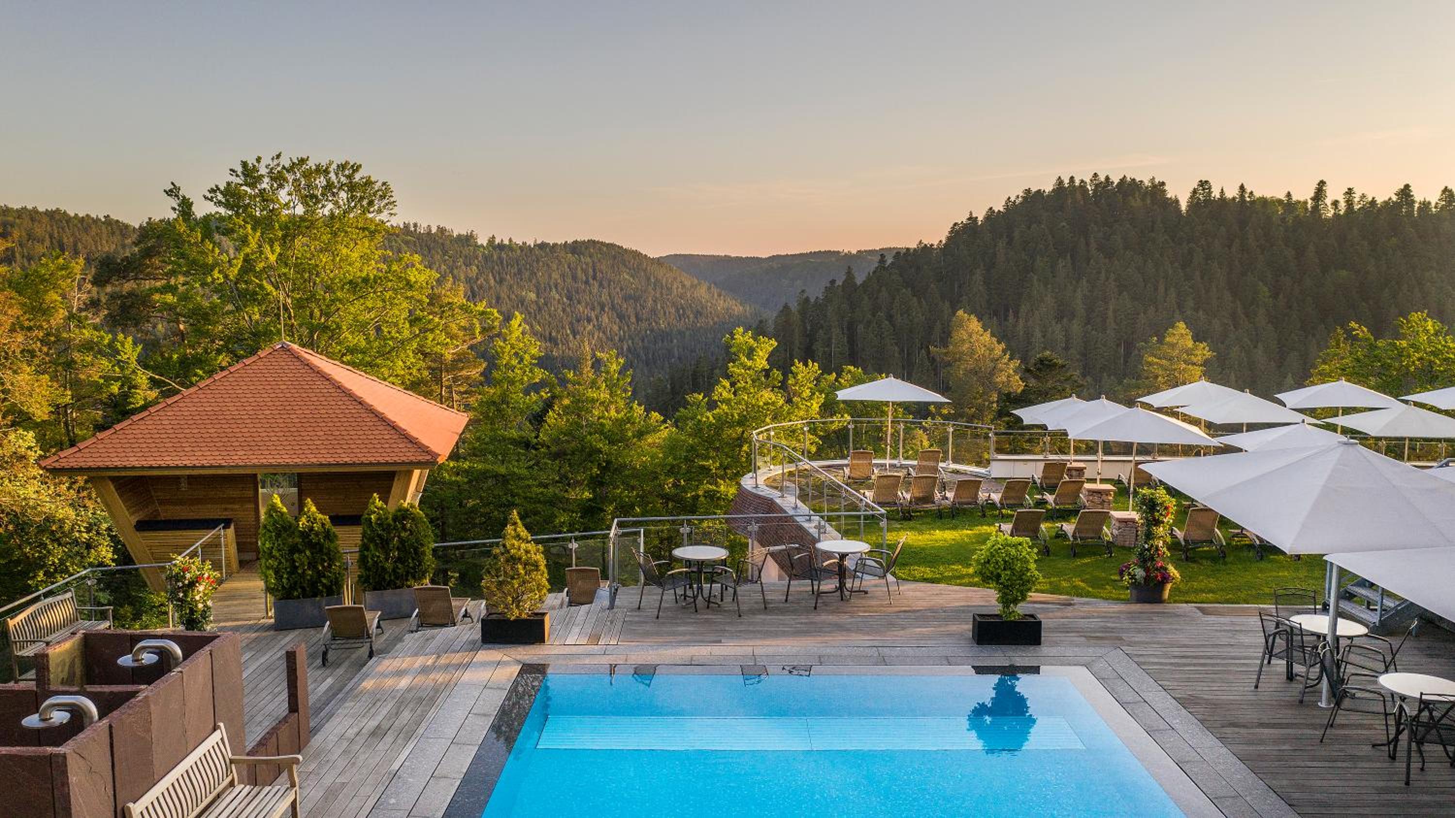 Guests over 14 have access to the Lamm's expansive spa area with pools, saunas, fitness room, and beauty treatments. The indoor and outdoor pools, along with the sunbathing area, provide a perfect spot for relaxation after exploring the Black Forest's hiking and cycling routes.
