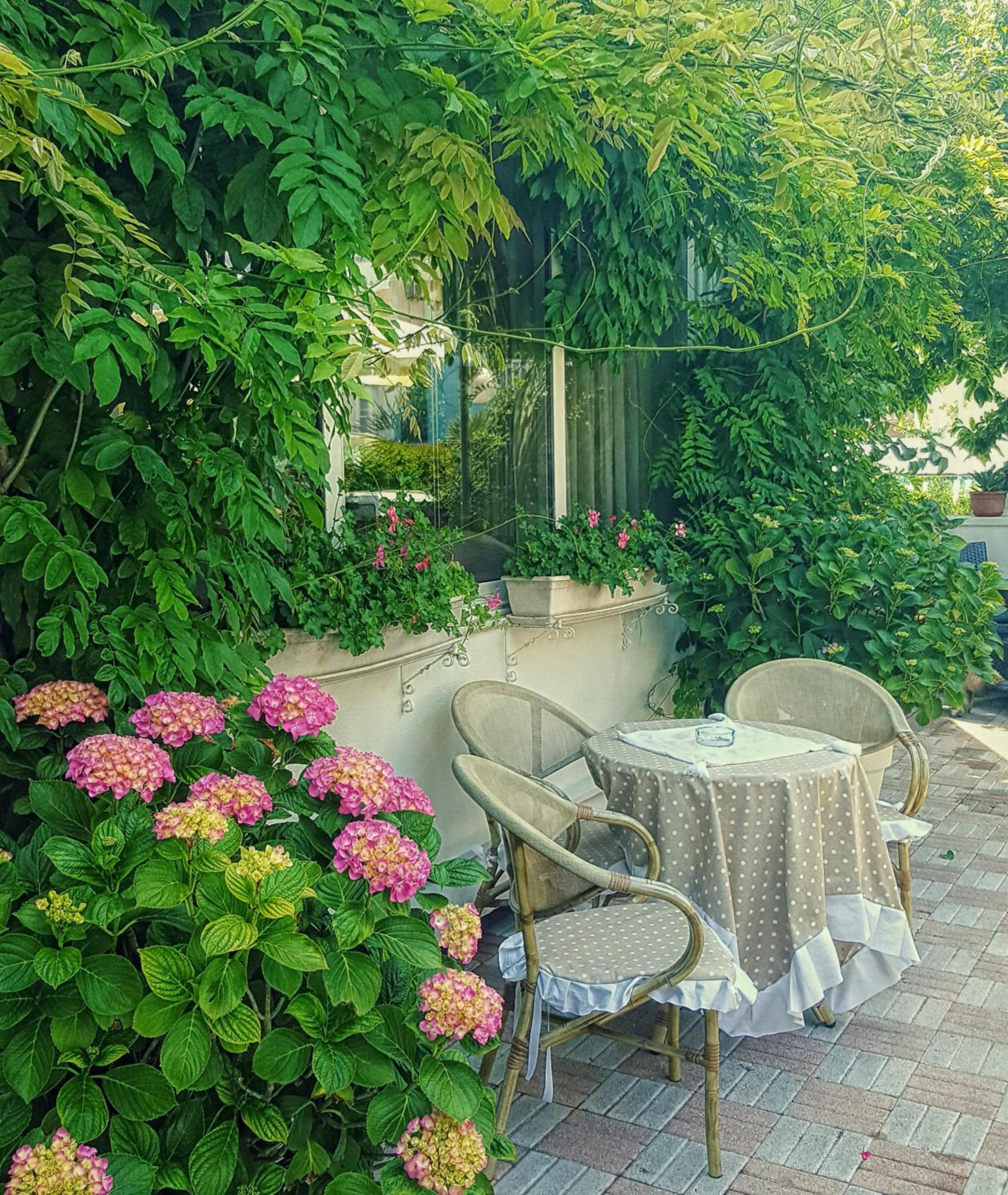Esterno e piscina con molto verde, curato: bella piscina a 2 livelli, ampia hall. Pulizia impeccabile in aree comuni, stanza e bagno. Avevo Camera singola definita piccola su booking, in realtà delle stesse dimensioni delle singole in cui sono stato in altri hotel 3 stelle, arredamento essenziale ma ben disposto, bagno abbastanza spazioso x una singola, credo ristrutturata di recente.