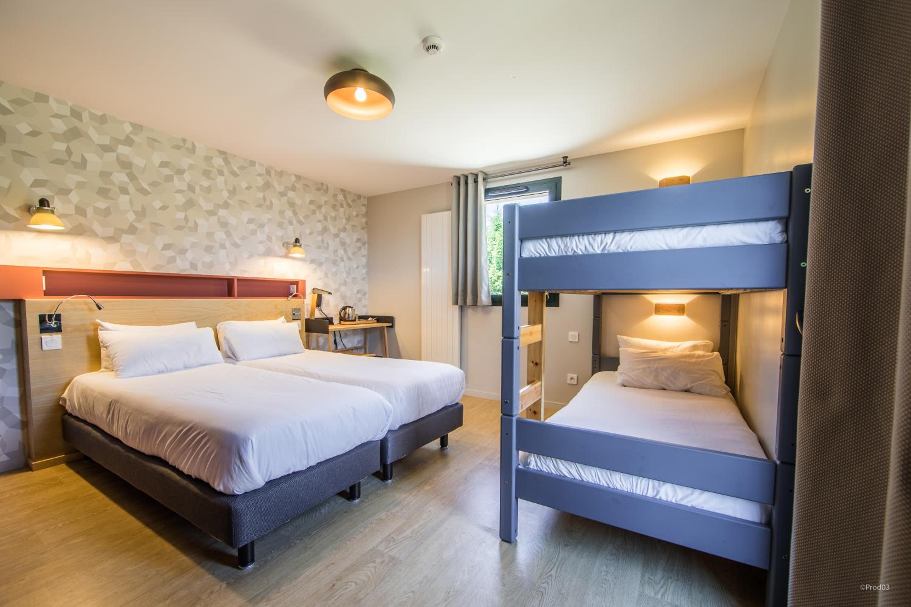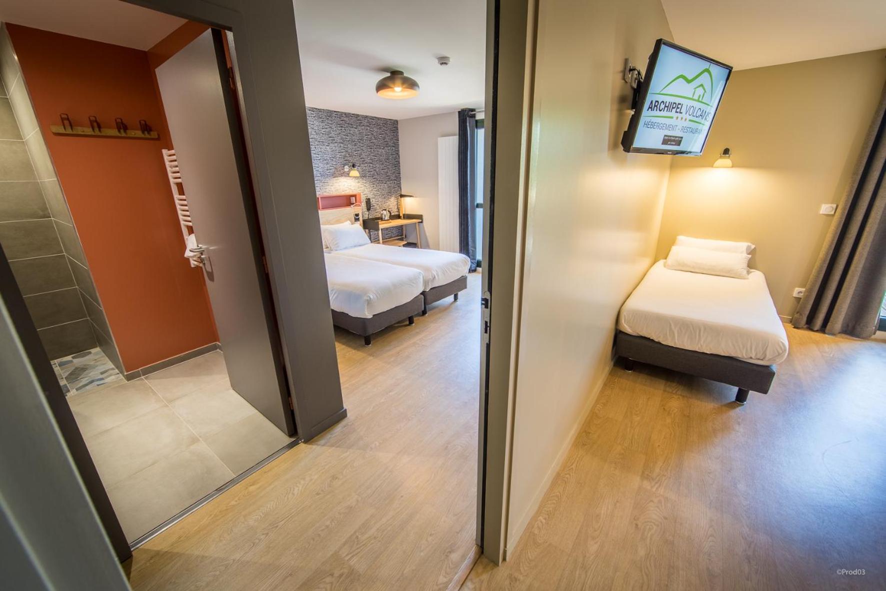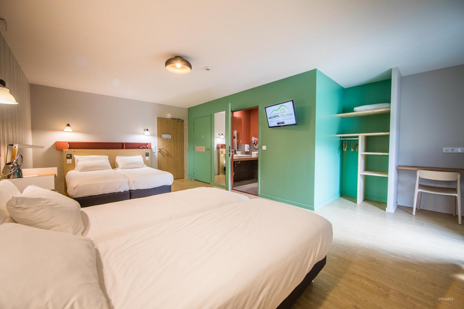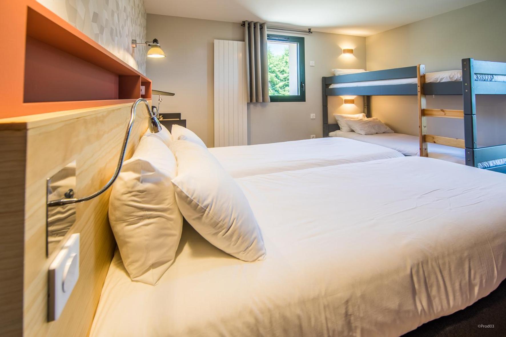 Nous avons voyagé en famille avec deux enfants de 5 et 2 ans. La chambre était confortable, au calme, avec une jolie vue sur le Puy de Dôme. Le restaurant sur place est très pratique pour éviter de ressortir le soir avec des petits. La chambre était propre et fonctionnelle, avec 1 lit double, 1 lit superposé, et 1 lit parapluie mis à notre disposition. Nous avons pu -en bonus- voyagé avec notre chat pour un tout petit supplément symbolique.