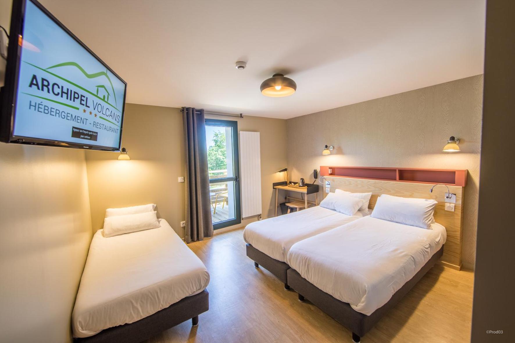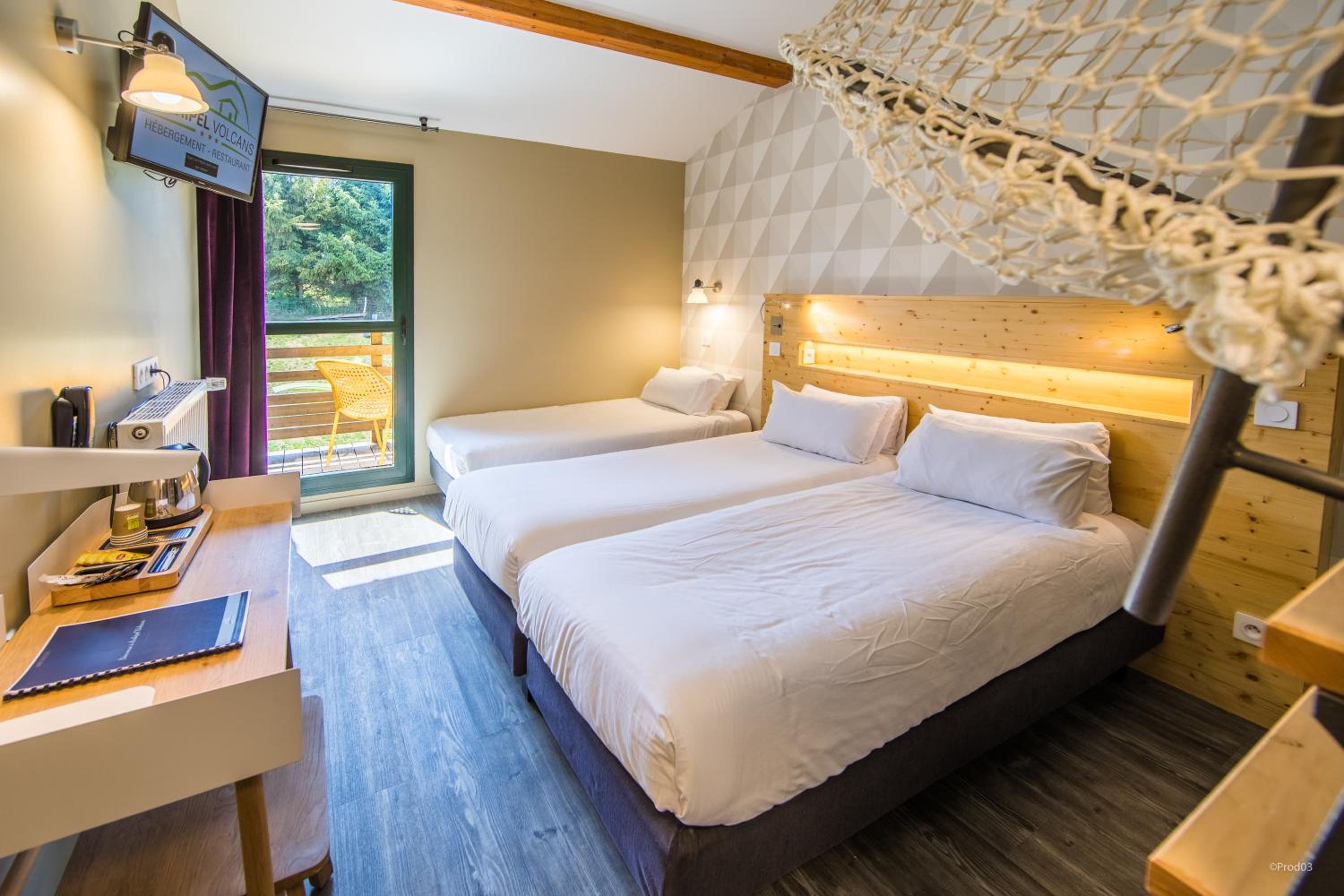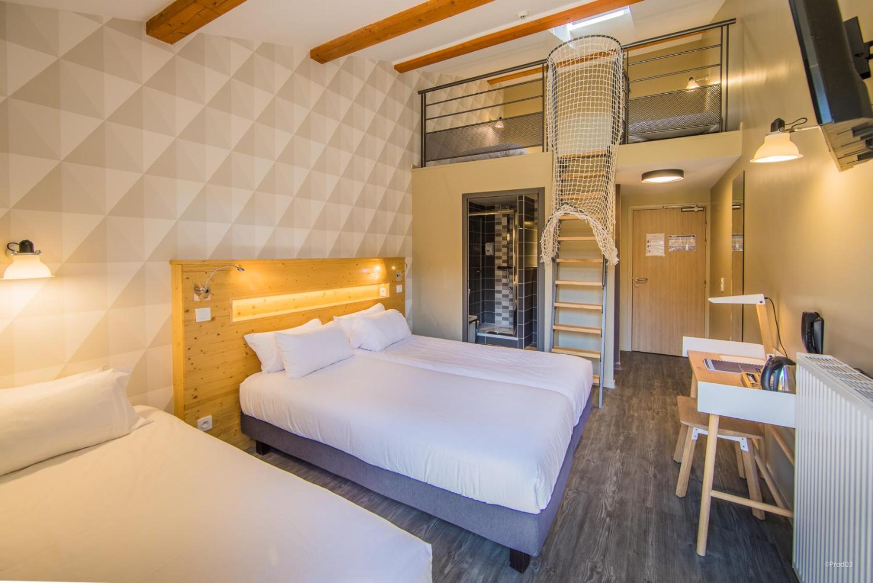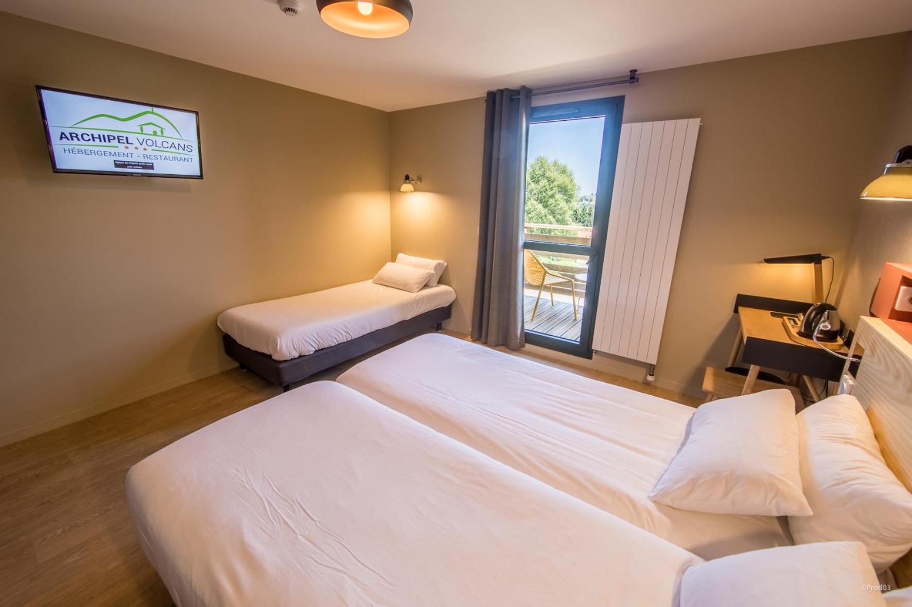 Nous avons voyagé en famille avec deux enfants de 5 et 2 ans. La chambre était confortable, au calme, avec une jolie vue sur le Puy de Dôme. Le restaurant sur place est très pratique pour éviter de ressortir le soir avec des petits. La chambre était propre et fonctionnelle, avec 1 lit double, 1 lit superposé, et 1 lit parapluie mis à notre disposition. Nous avons pu -en bonus- voyagé avec notre chat pour un tout petit supplément symbolique.