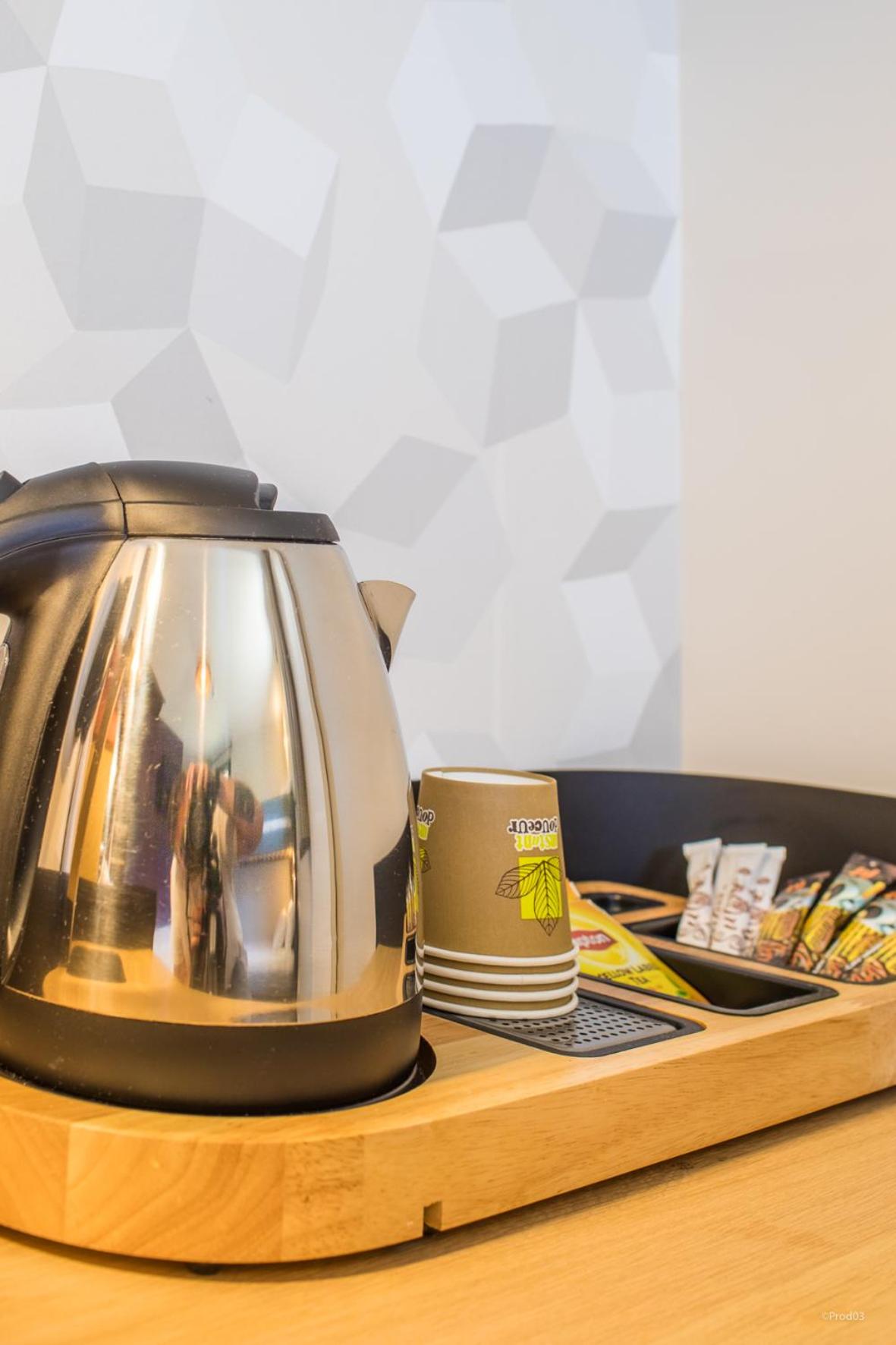 Mugs, milk and water in the room would be a bonus.