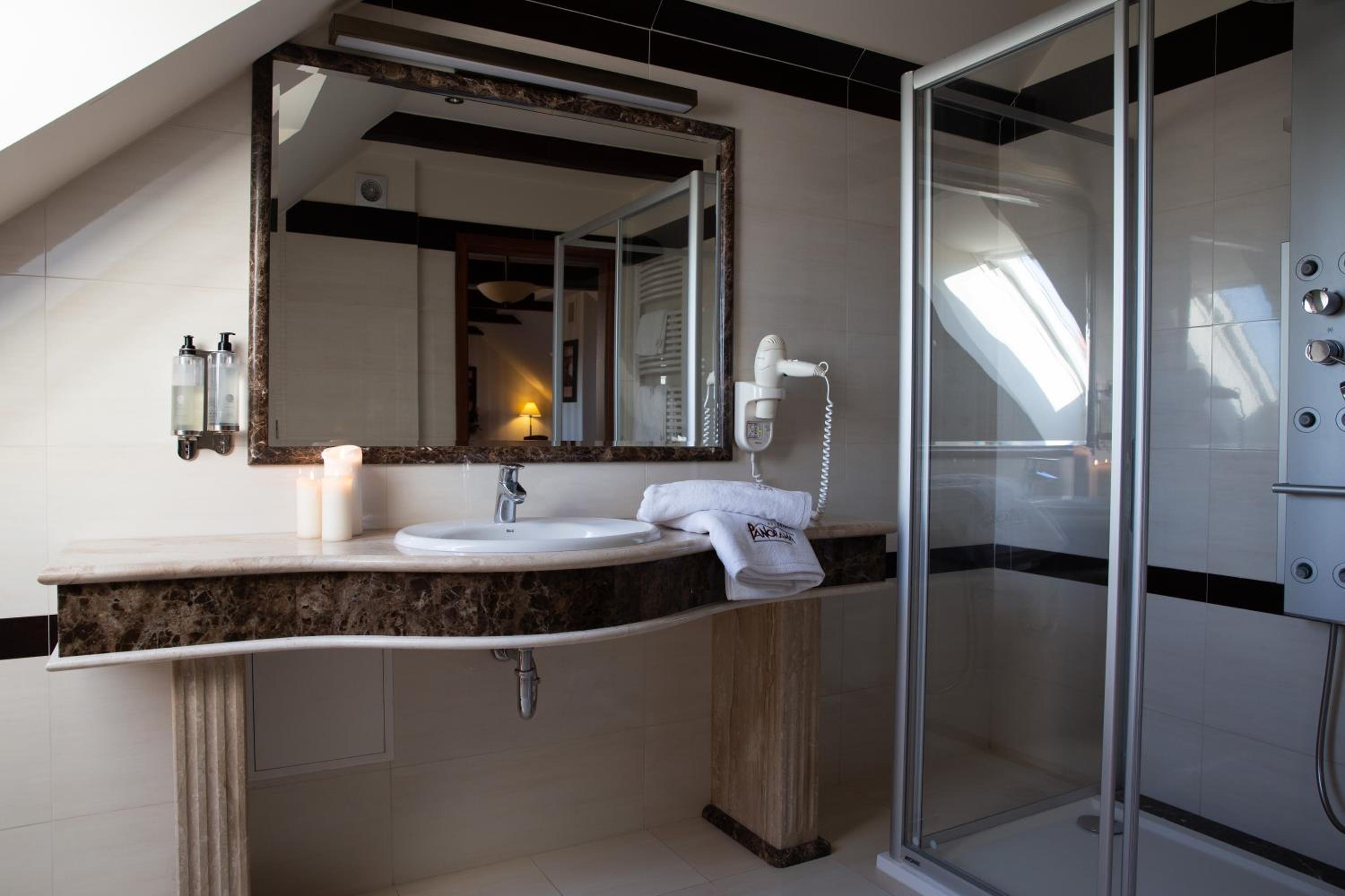 Hotel Panorama in Jędrzejów offers an elegant garden with a gazebo and water garden, providing a serene environment for guests. The spacious rooms, furnished in warm tones, feature free internet and satellite TV, ensuring a comfortable stay.