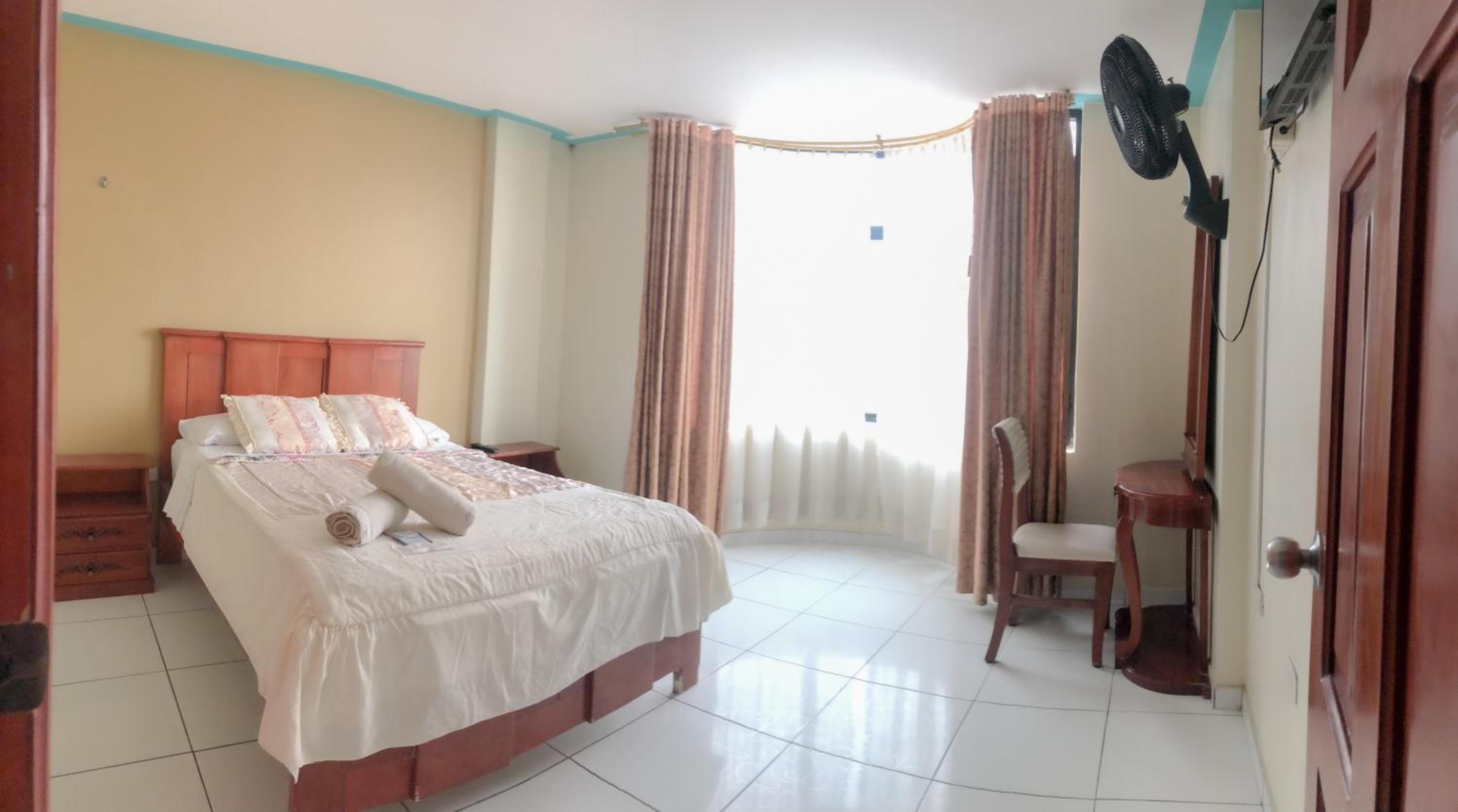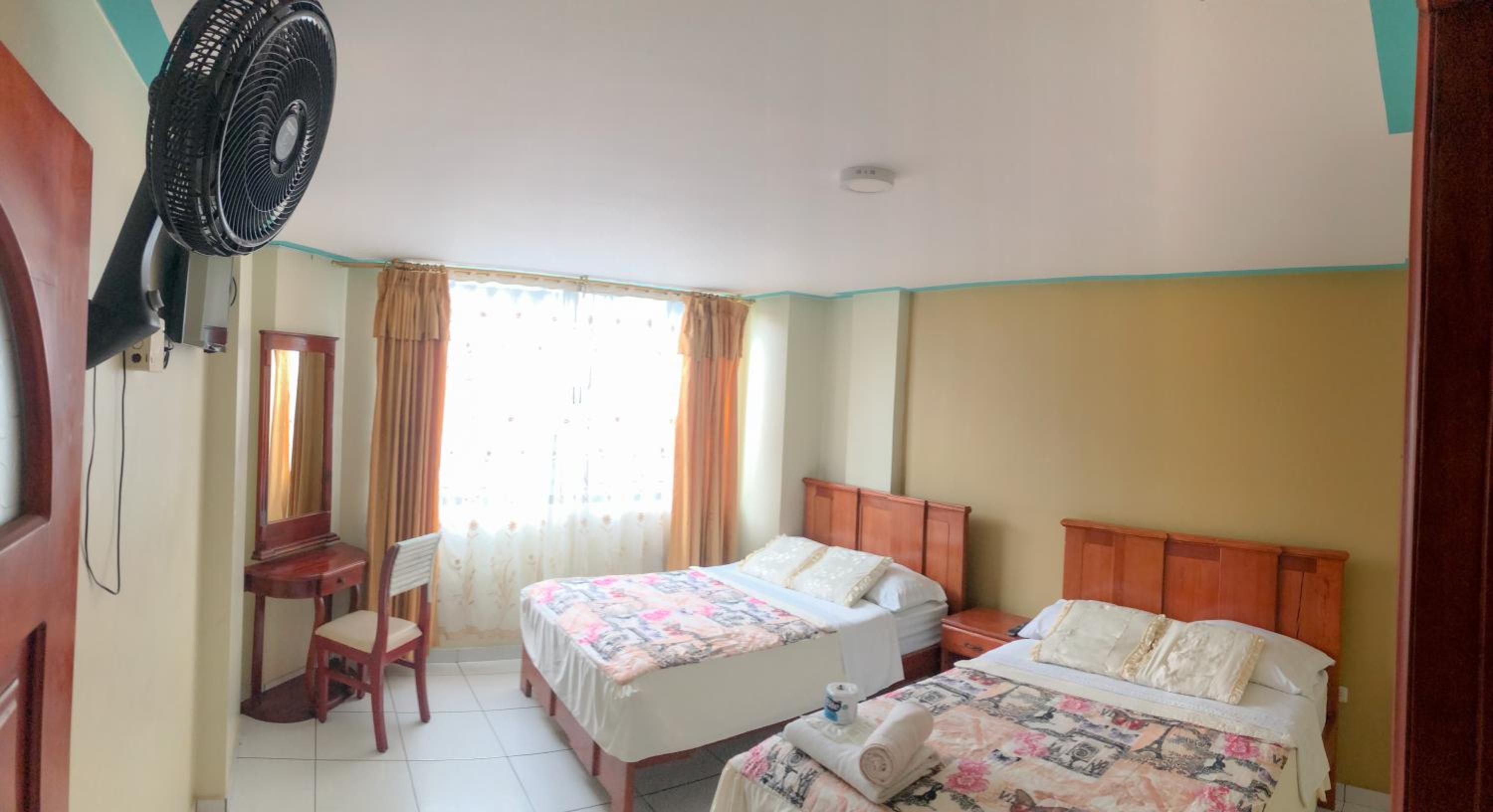 We did not have AC in the rooms. The rooms that face the main road could be a bit noisy due to the amount of traffic (even at night), so maybe try to get a room not facing the main road.