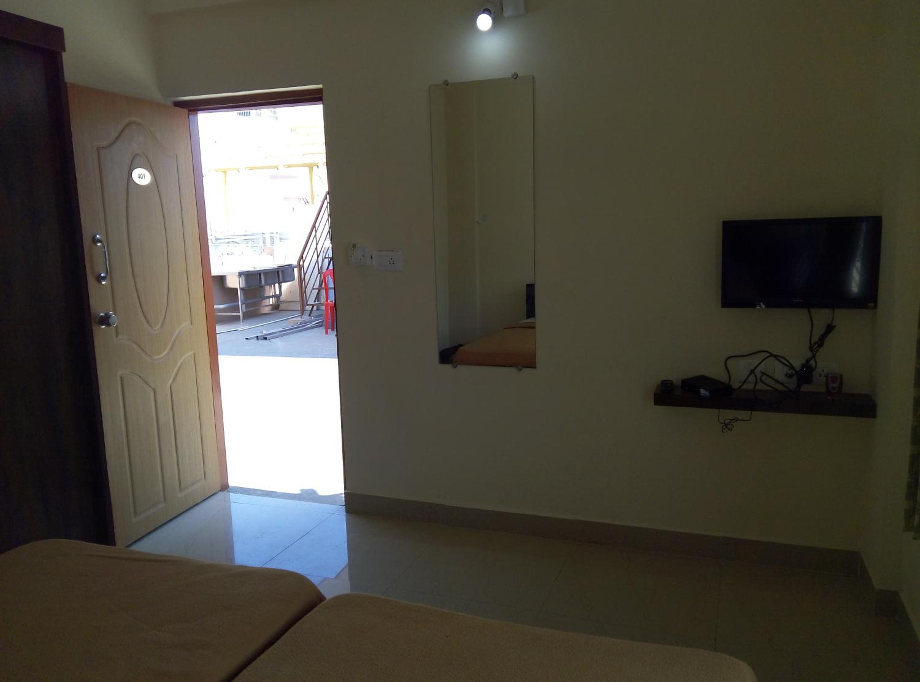 Comfortable Accommodation: The rooms at Suvarna Compact are thoughtfully designed with amenities like a flat-screen TV, kitchenette, and cozy bedding, ensuring a comfortable stay for all guests.
