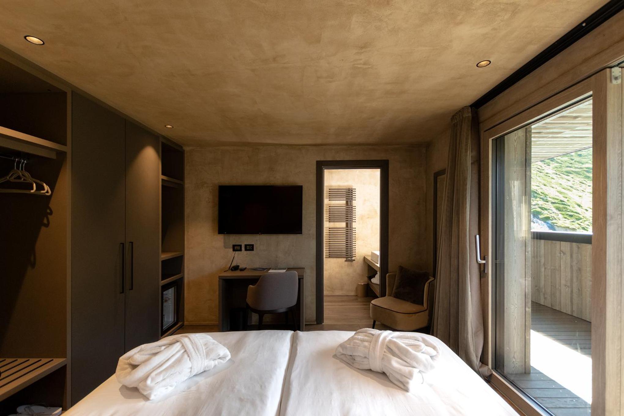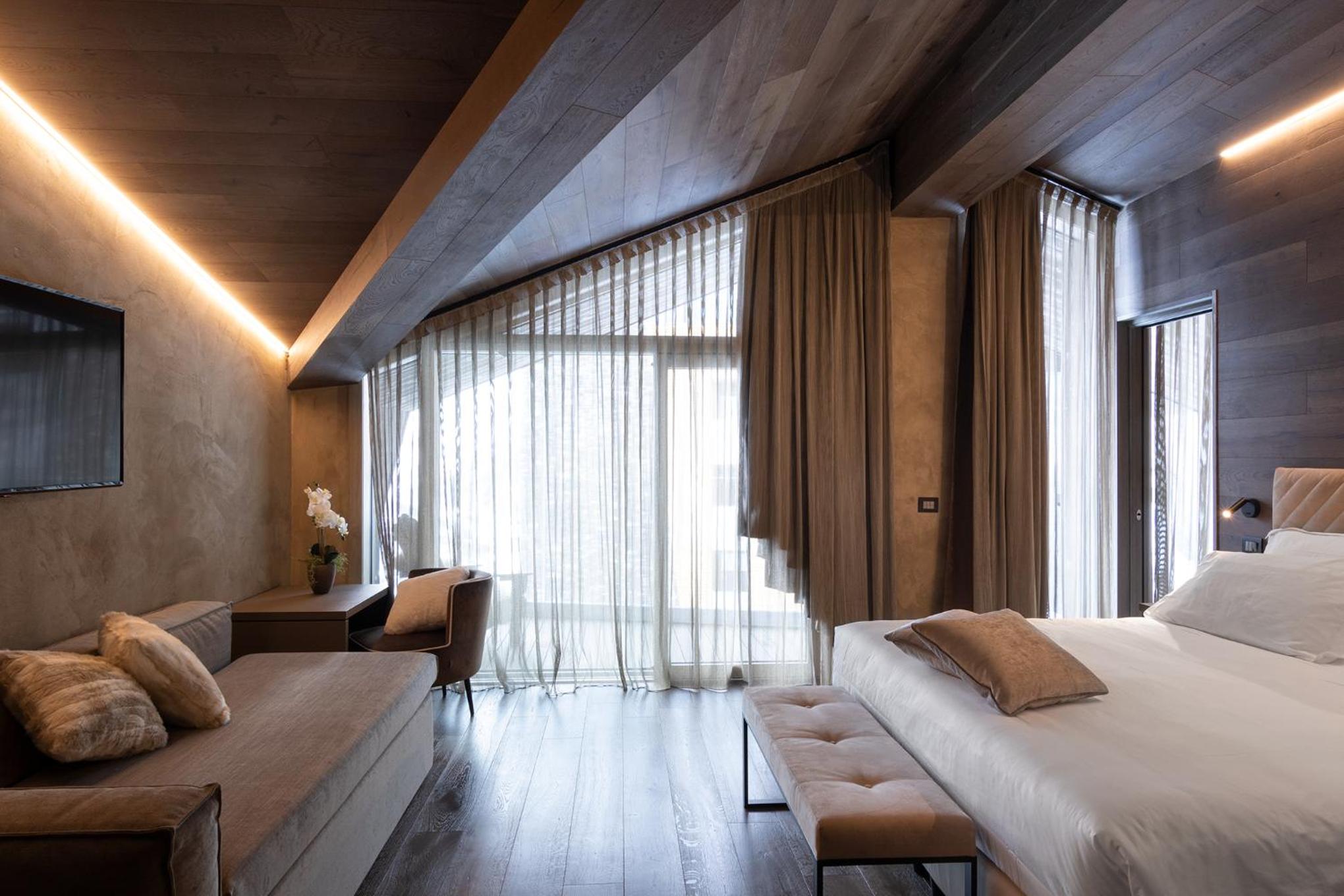 This is a fabulous hotel. It has everything; it's family run, it has a classy restaurant, a beautiful wellness area and the views are breathtaking. Decor is stylish and modern. You feel looked after from the moment you arrive; Alessandro is incredibly attentive, shows you everything and either he or a member of staff are always on hand to provide a gentle guiding hand or piece of advice. Our car had a small problem while we stayed, and Alessandro was immediately helping; prepared to go to the village to get anything needed and ensure all was well. Our room had a slope side balcony, a comfortable bed, plenty of storage space, excellent tea and coffee facilities and a good, usable size shower room. We didn't have to worry about helmet, ski and boot storage - the ski room opens onto the slopes for a genuine ski-in ski-out experience and everything is securely locked when not in use. It's not a concern being on the edge of the village; the shuttle runs on request to drop you off in the centre of the lovely traditional village and collect you again.