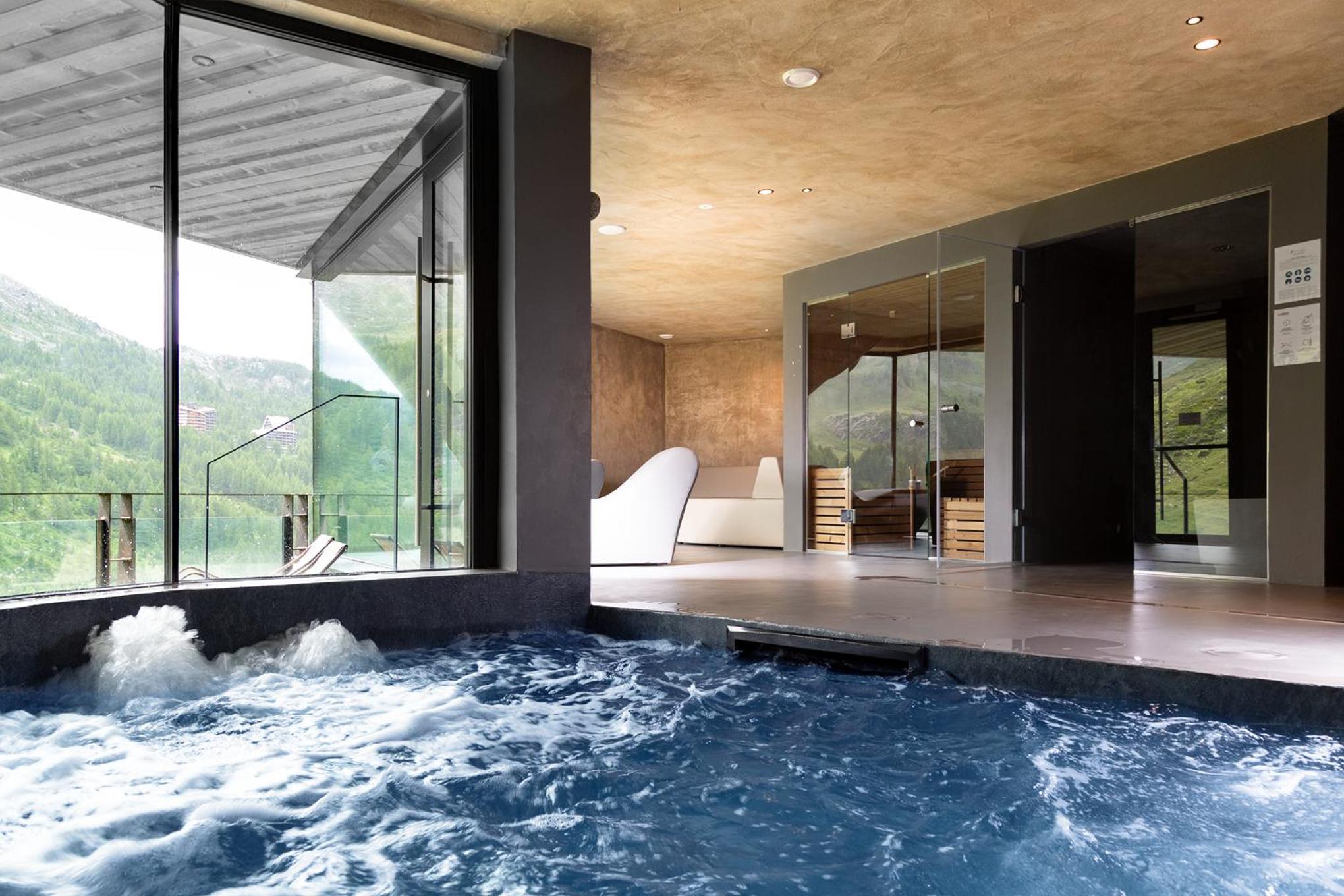 Guests can unwind in the wellness area featuring a fitness centre, sauna, and hot tub, ideal for relaxation after a day on the slopes. Families will appreciate the children's playground and hammam available on-site.