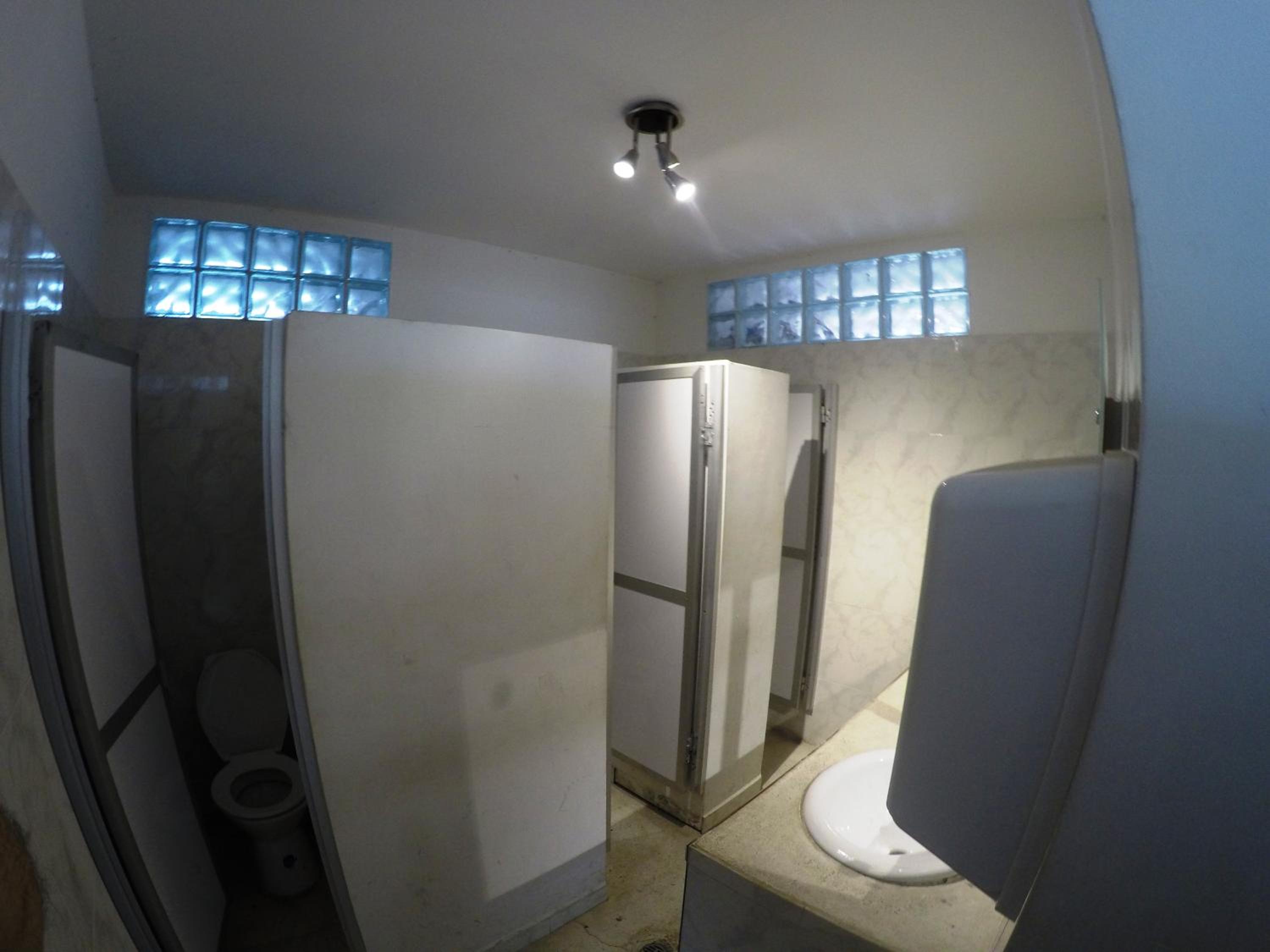 In front of the rooms there are a people working (mechanics)