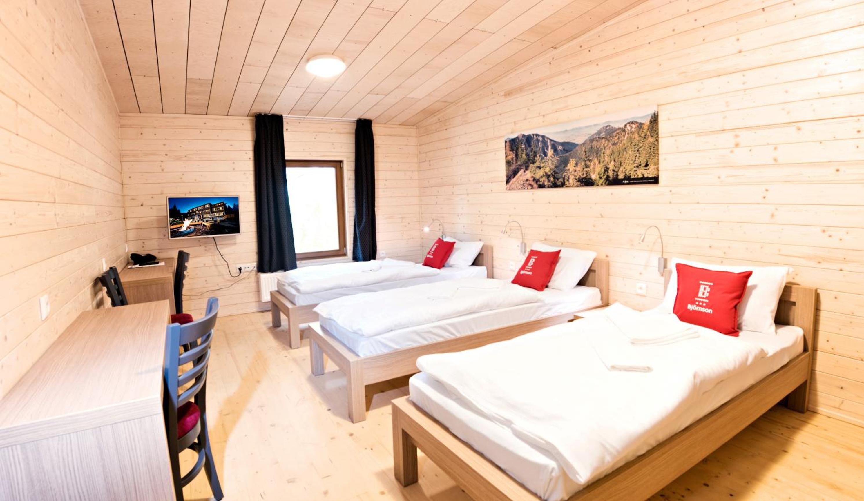 Hotel Björnson Jasná & Björnson TREE HOUSES offers chalet-style rooms with stunning countryside views. Guests can choose between rooms in the main building, villa, or hostel rooms on the grounds.