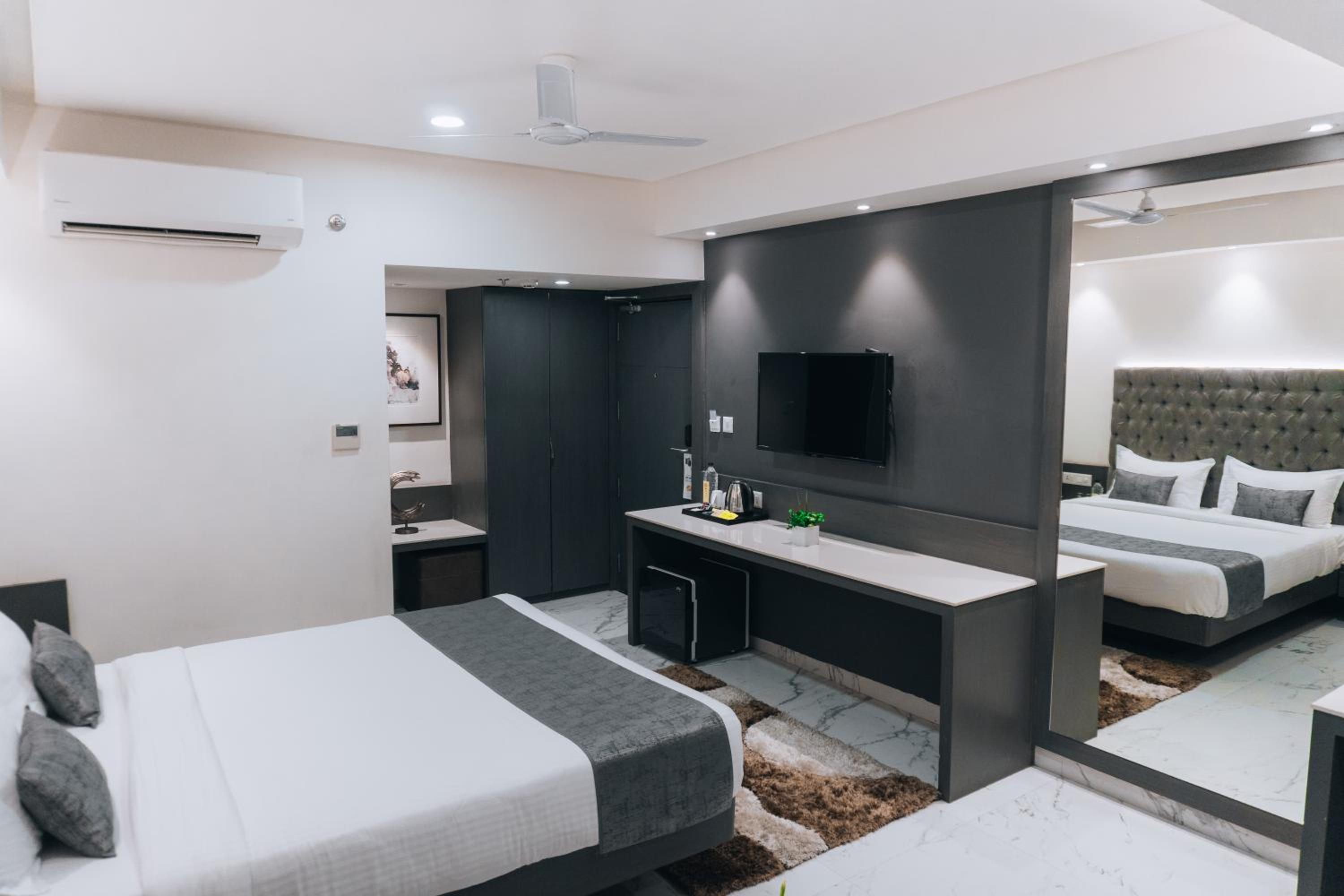 At Jardin Hotels in Indore, indulge in a luxurious stay with stunning city views. Relax by the outdoor swimming pool or take a leisurely stroll in the garden and terrace. The 4-star hotel offers air-conditioned rooms with modern amenities like a flat-screen TV, safety deposit box, and free WiFi.