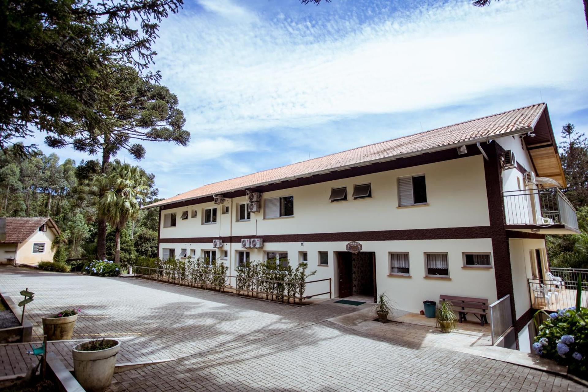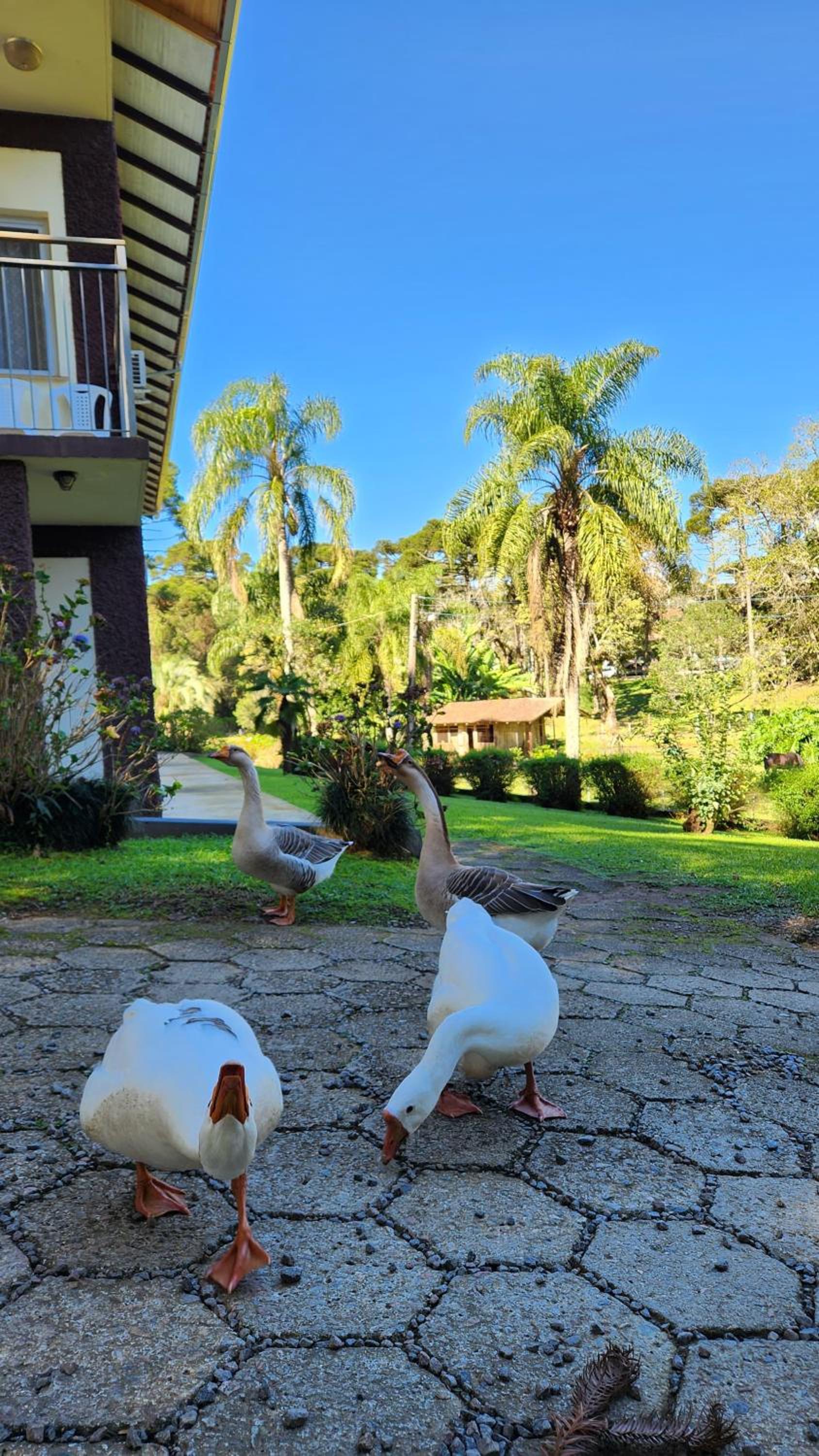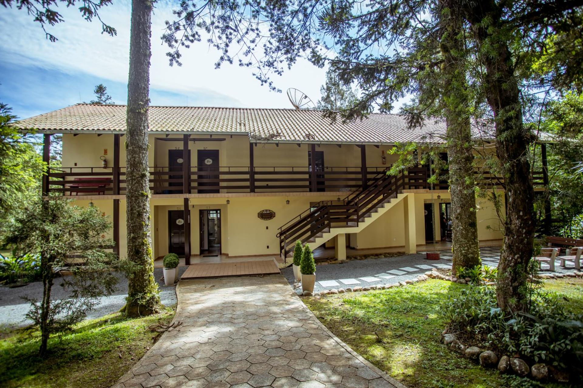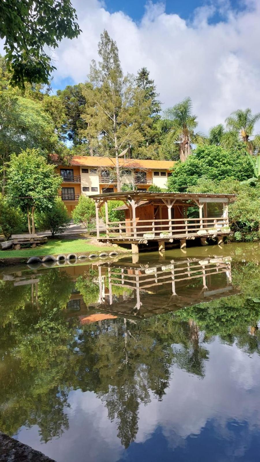 O Hotel fica em uma ampla área cercada por um Bosque de Pinheiros e árvores diversas, sendo muito agradável o passeio em meio as árvores, lagos e demais recursos. Afora a bicada de um Ganso, todo o passeio/hospedagem foi muito agradável. Recomendo.
