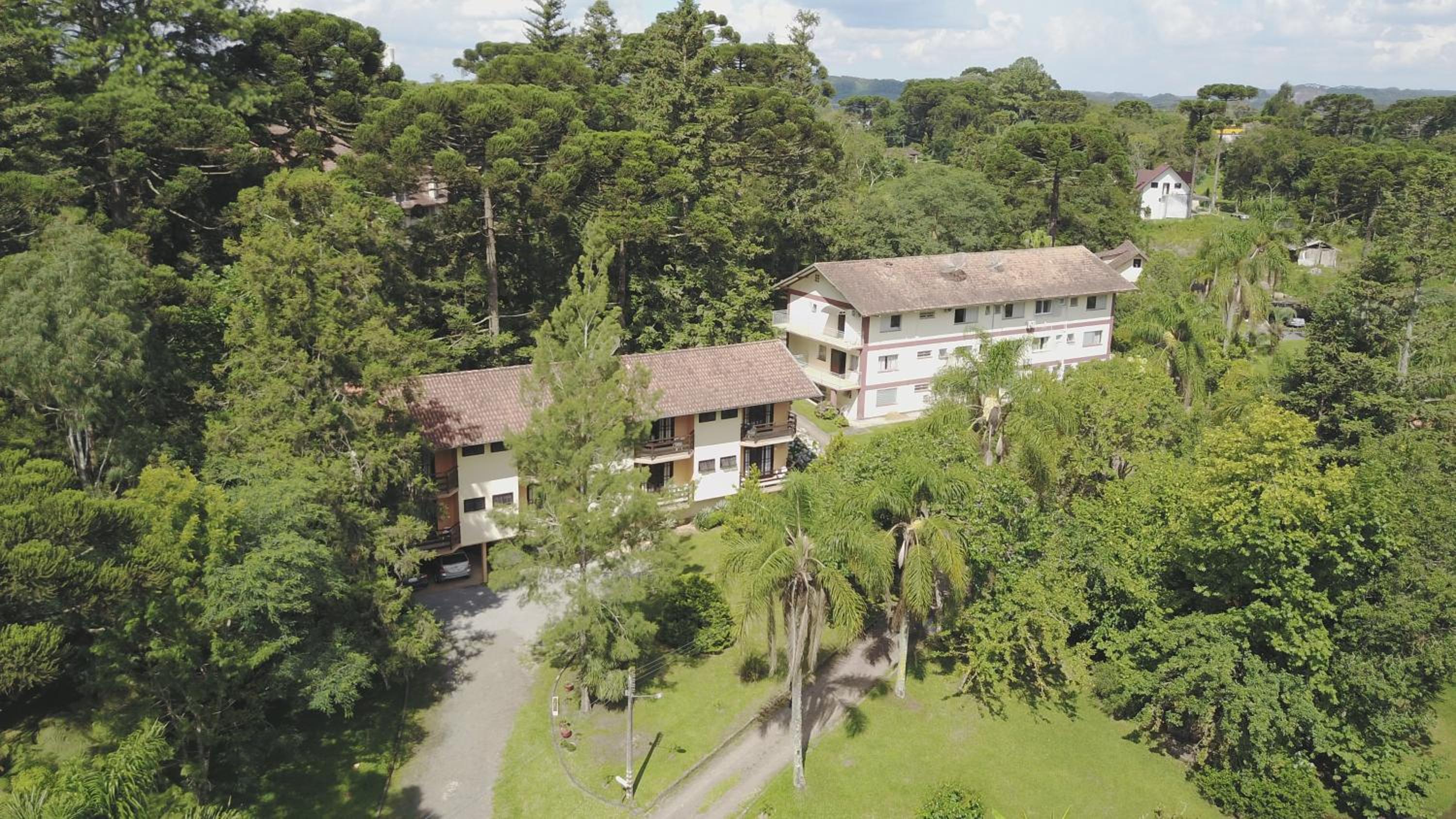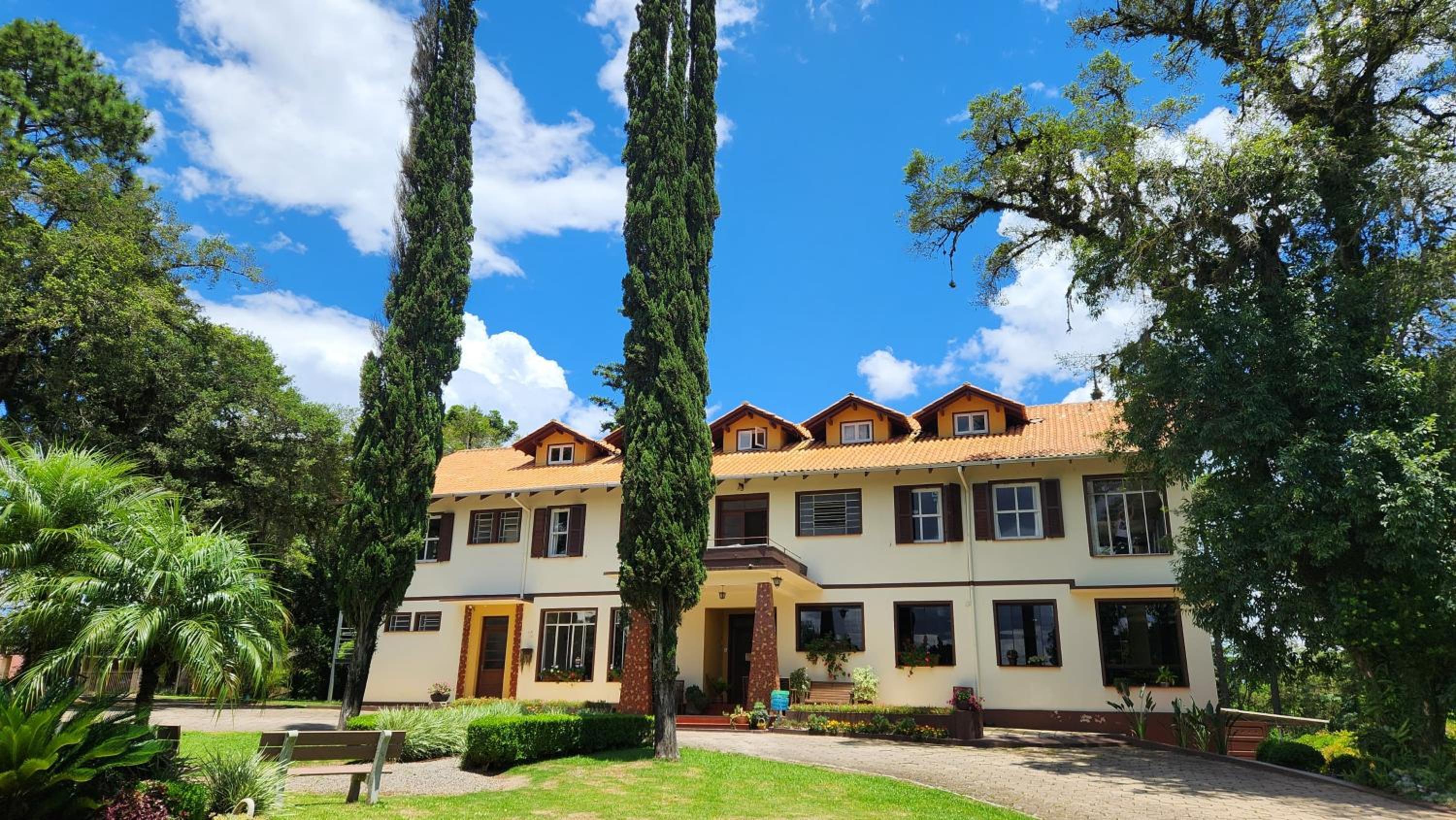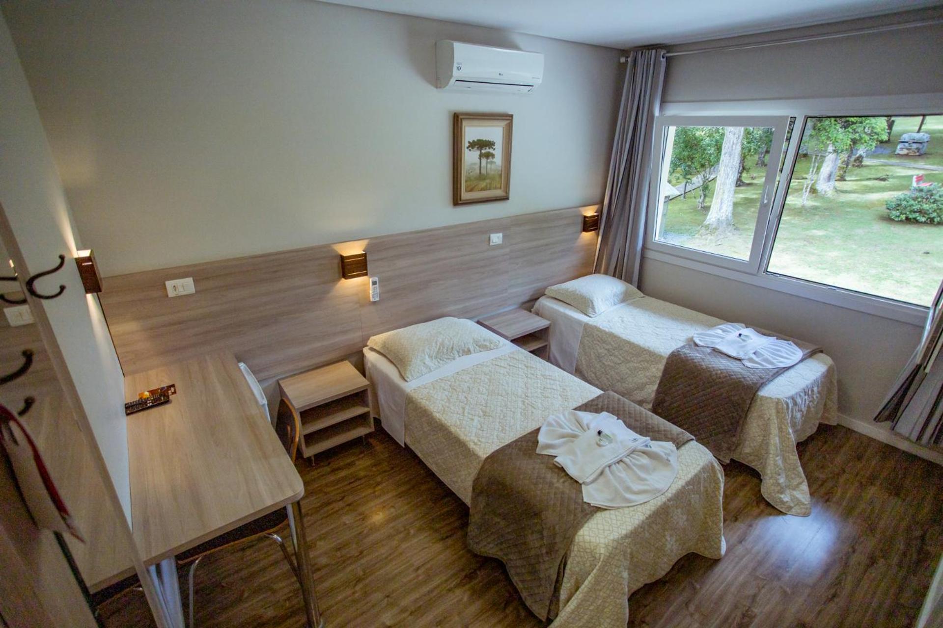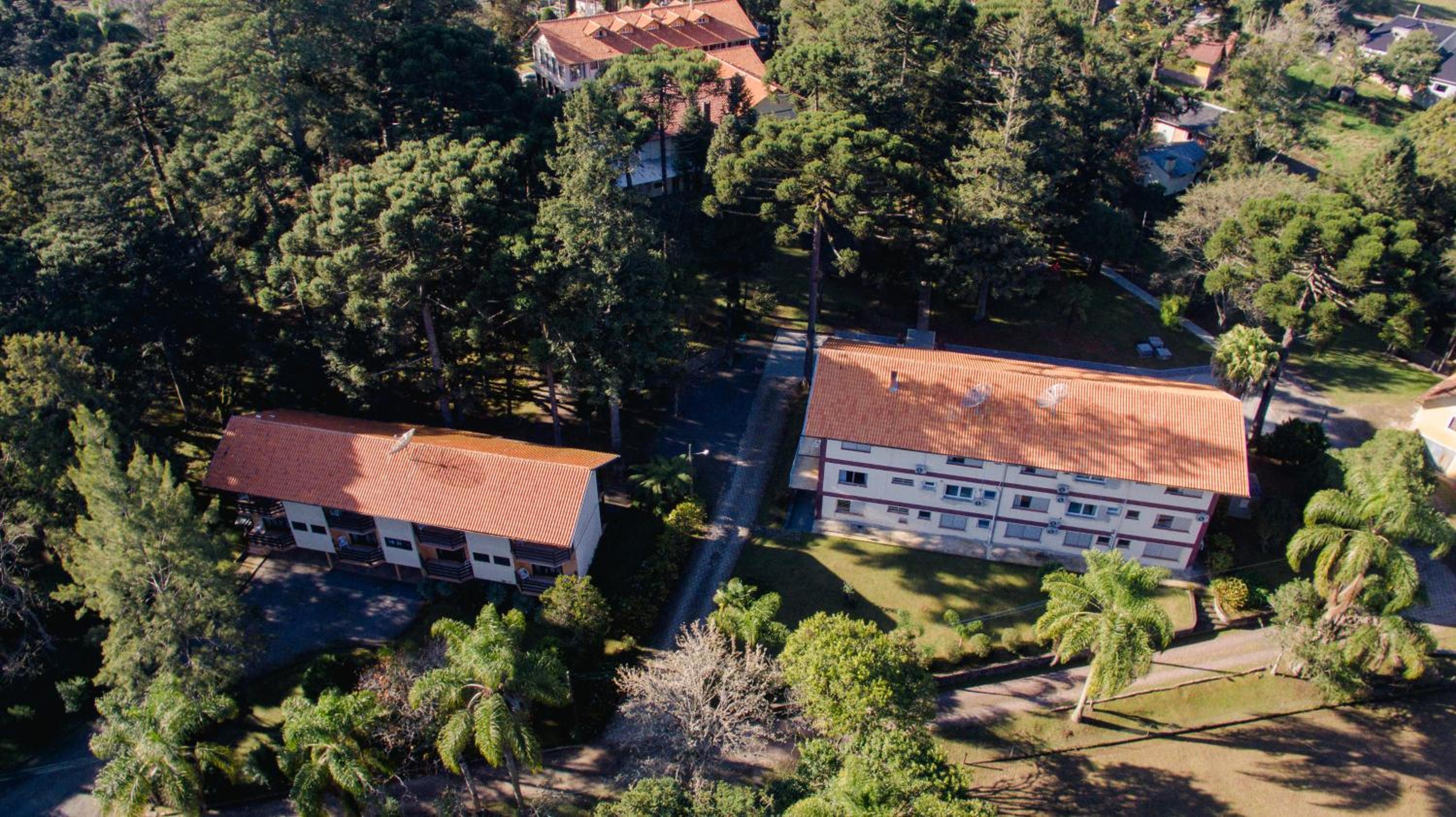 O Hotel fica em uma ampla área cercada por um Bosque de Pinheiros e árvores diversas, sendo muito agradável o passeio em meio as árvores, lagos e demais recursos. Afora a bicada de um Ganso, todo o passeio/hospedagem foi muito agradável. Recomendo.