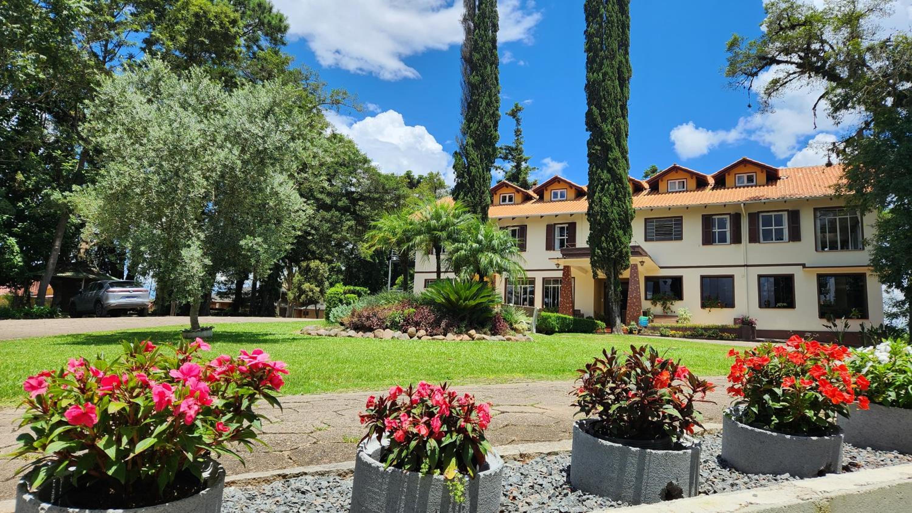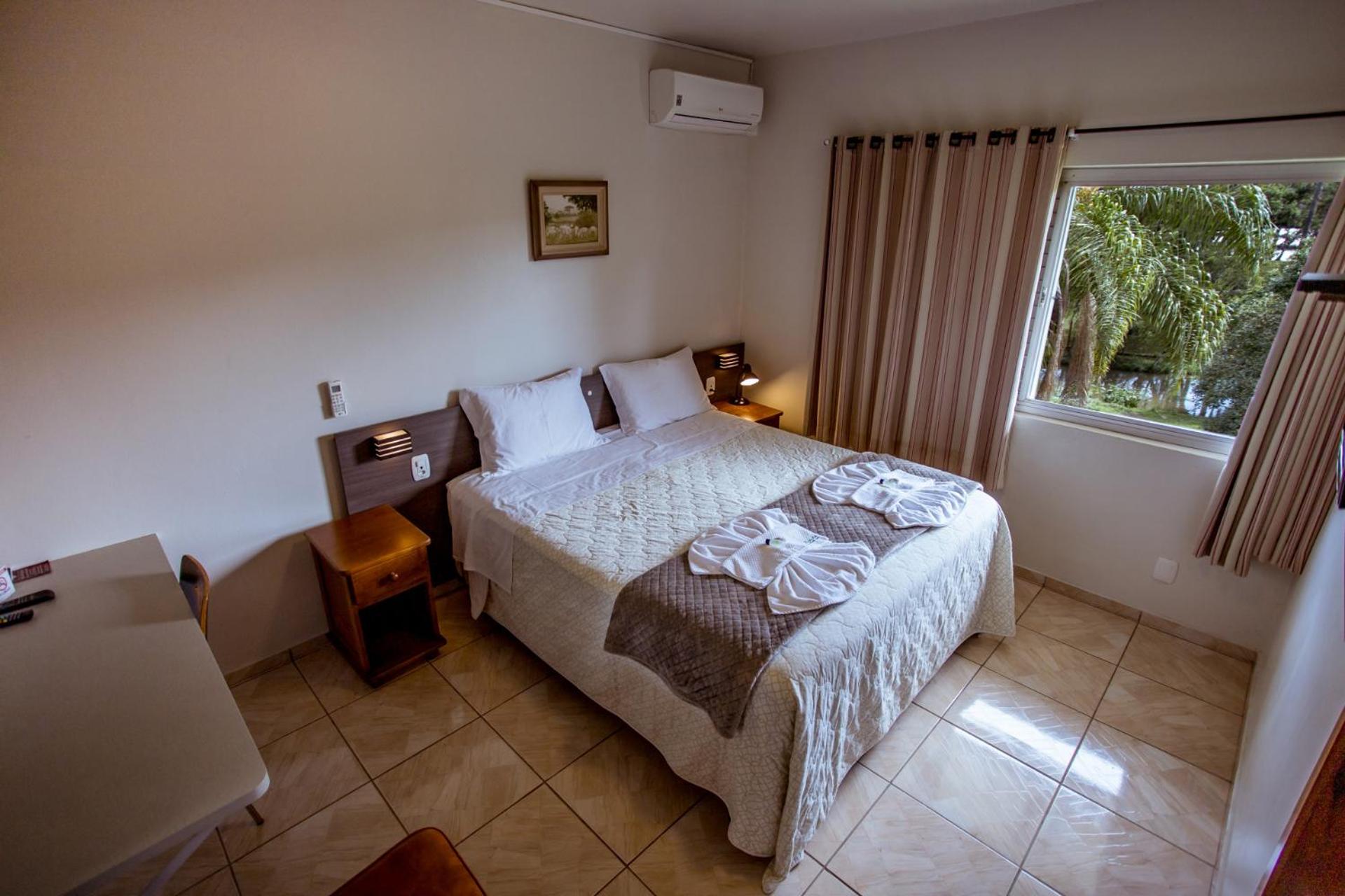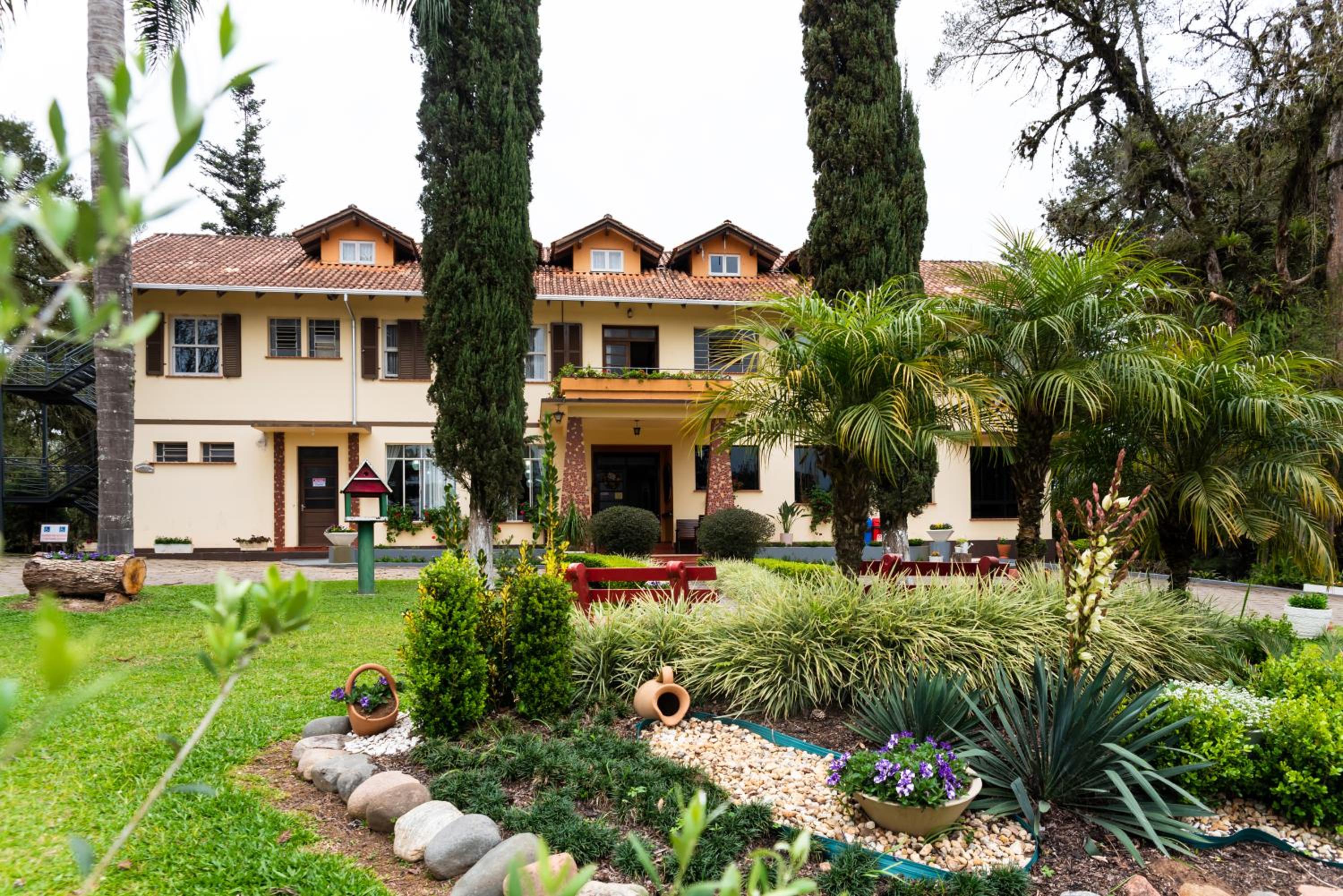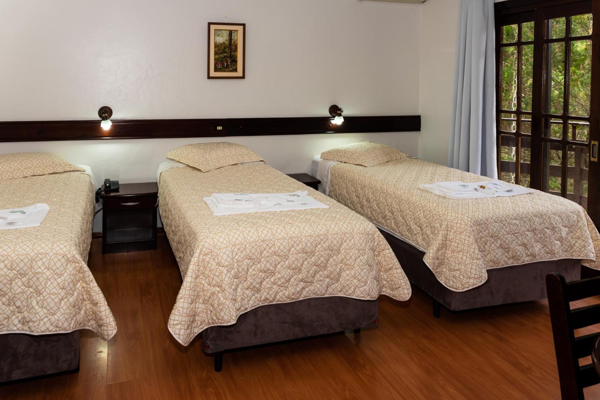 O Hotel fica em uma ampla área cercada por um Bosque de Pinheiros e árvores diversas, sendo muito agradável o passeio em meio as árvores, lagos e demais recursos. Afora a bicada de um Ganso, todo o passeio/hospedagem foi muito agradável. Recomendo.