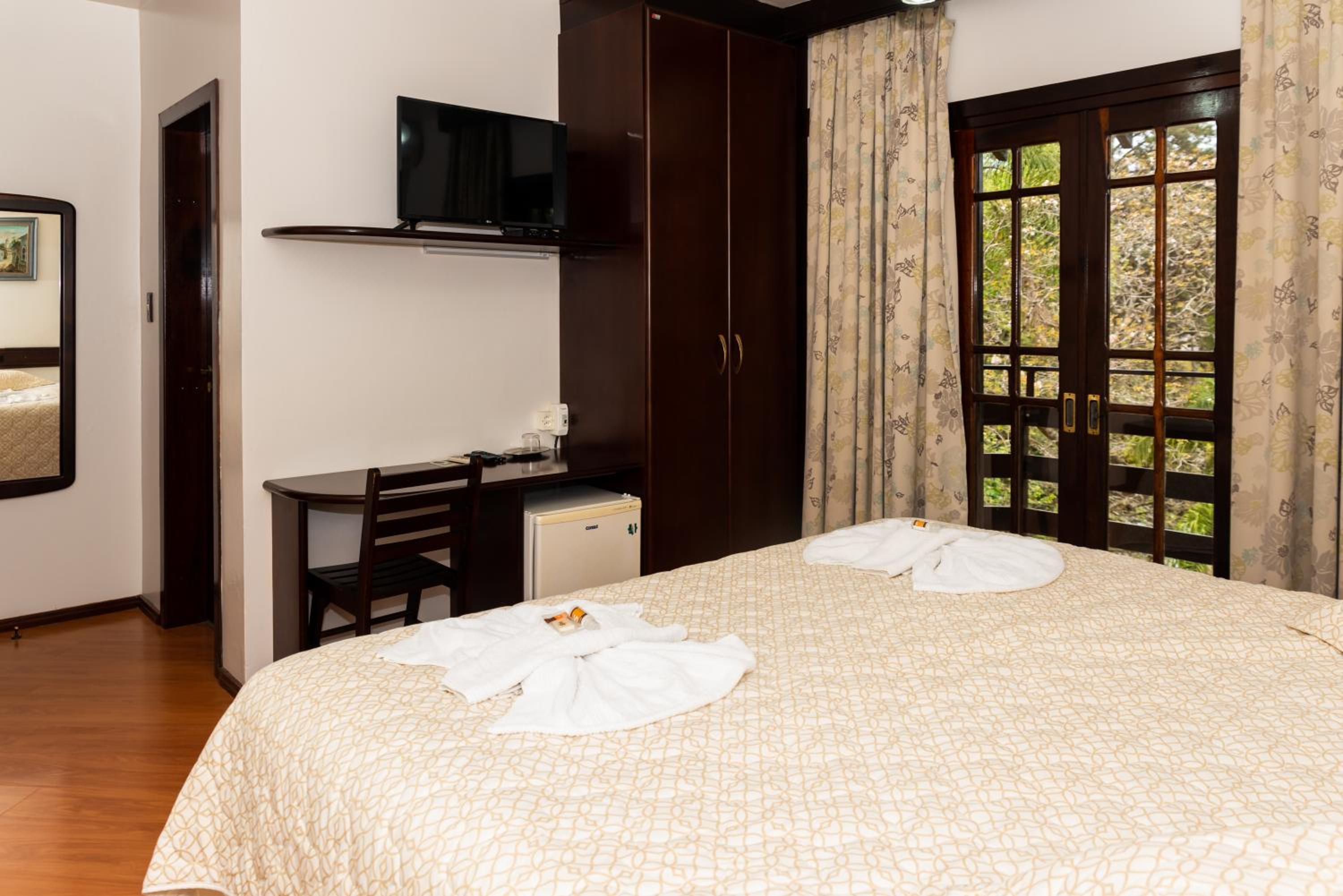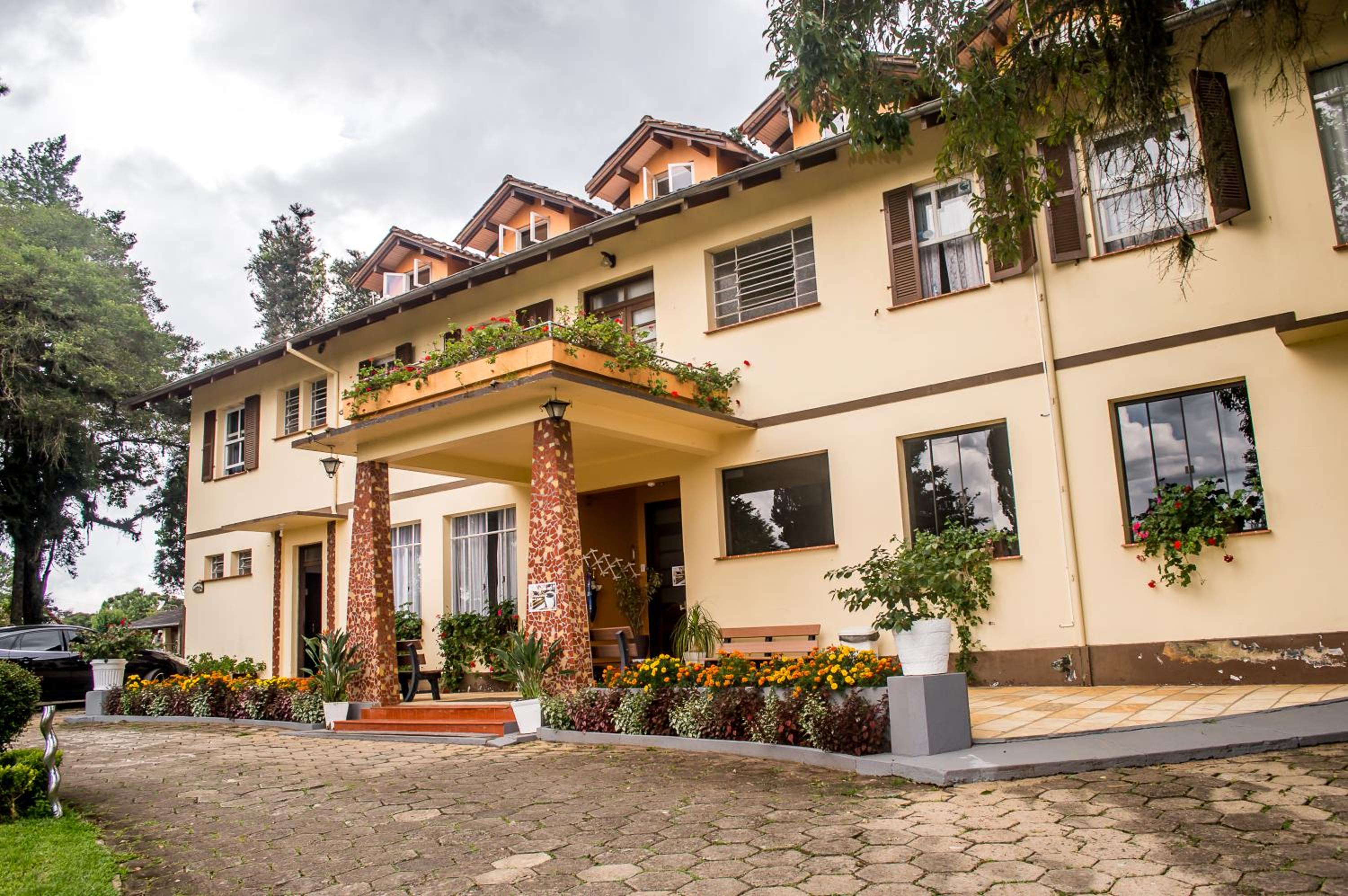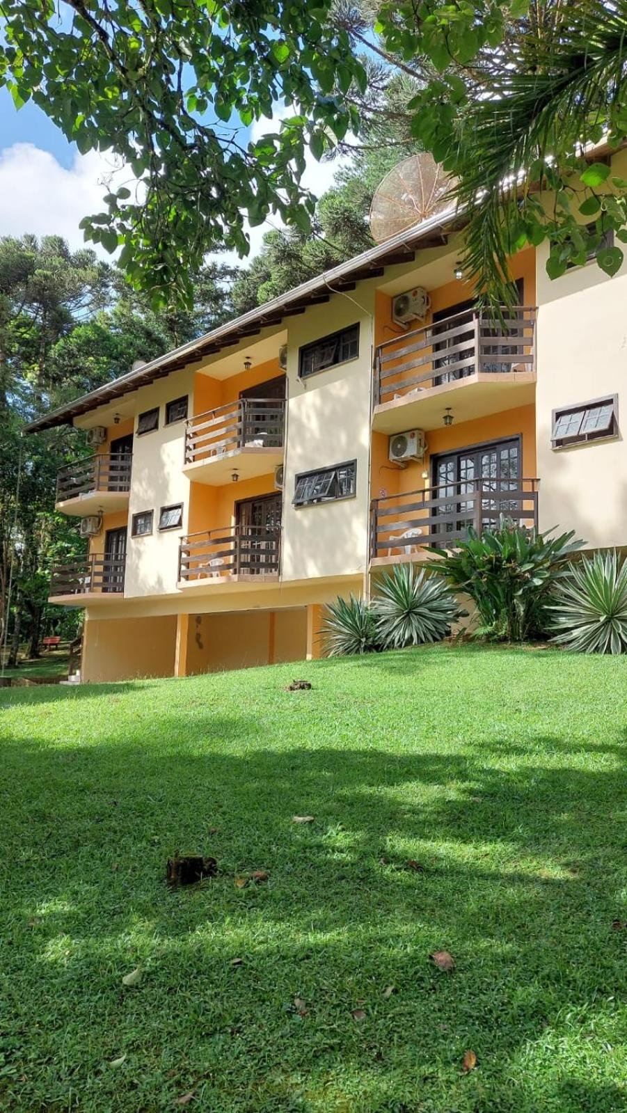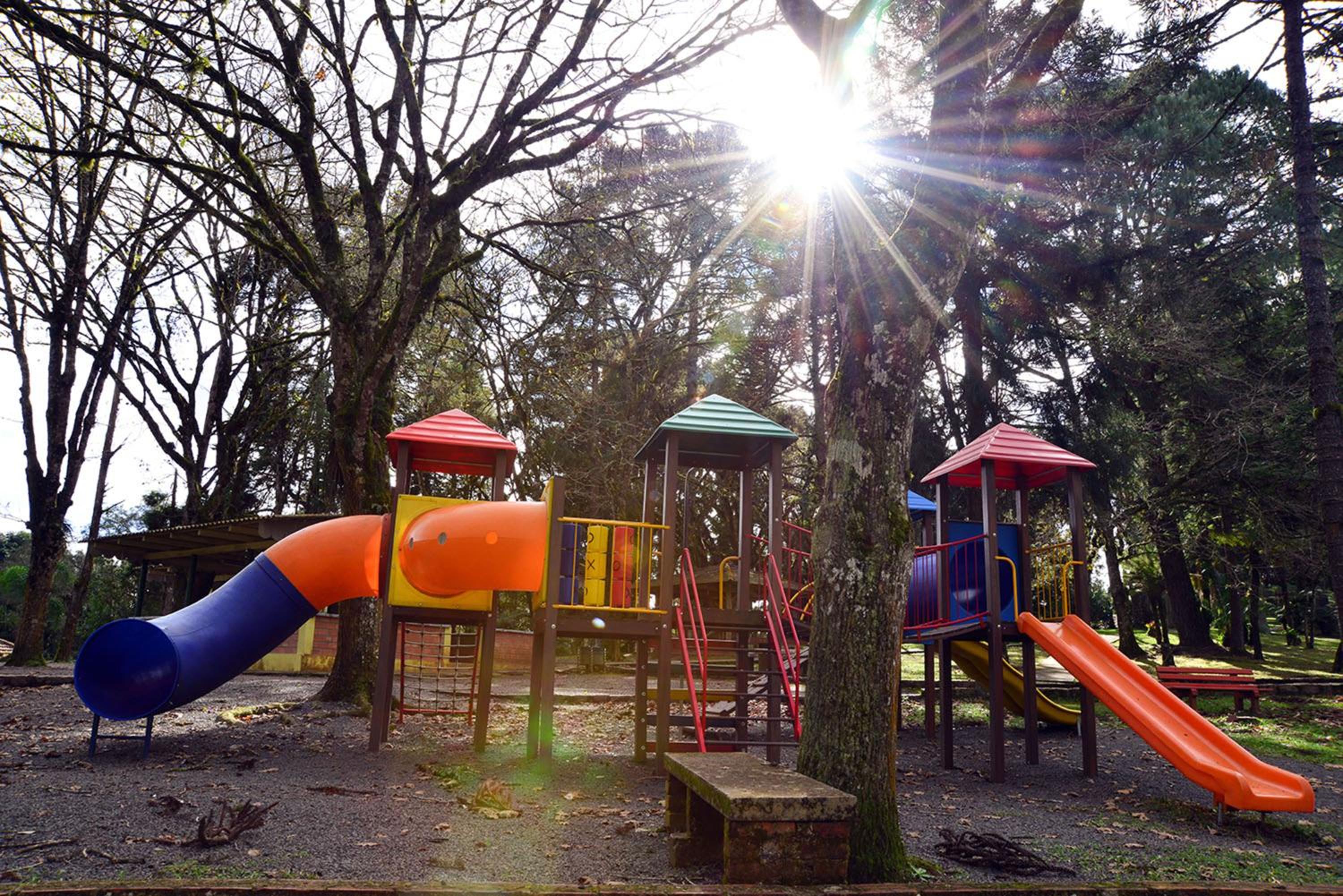 O Hotel fica em uma ampla área cercada por um Bosque de Pinheiros e árvores diversas, sendo muito agradável o passeio em meio as árvores, lagos e demais recursos. Afora a bicada de um Ganso, todo o passeio/hospedagem foi muito agradável. Recomendo.