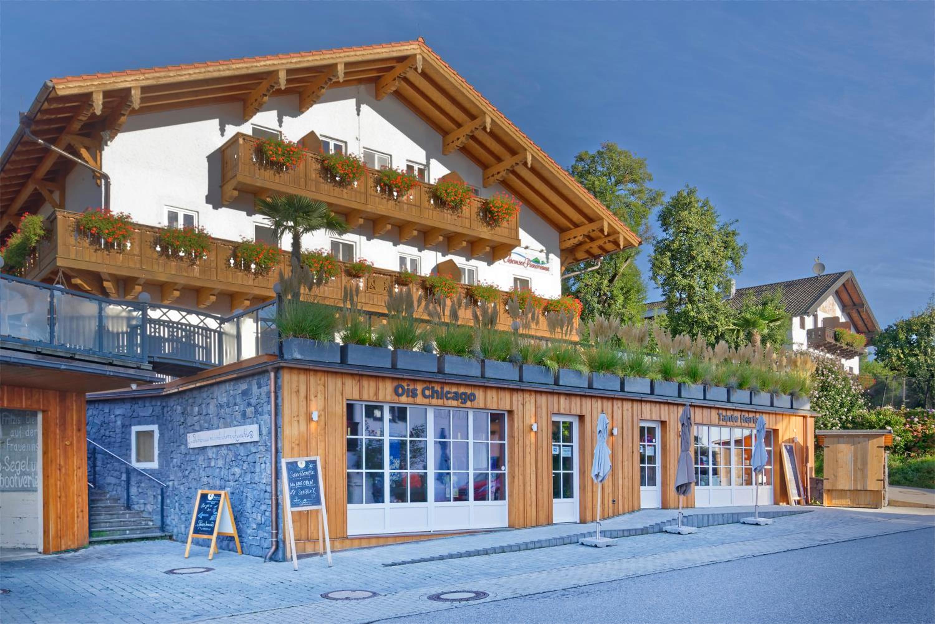 Hotel ChiemseePanorama offers modern country house-style rooms with stunning lake views and free WiFi, perfect for a relaxing stay by Chiemsee Lake.