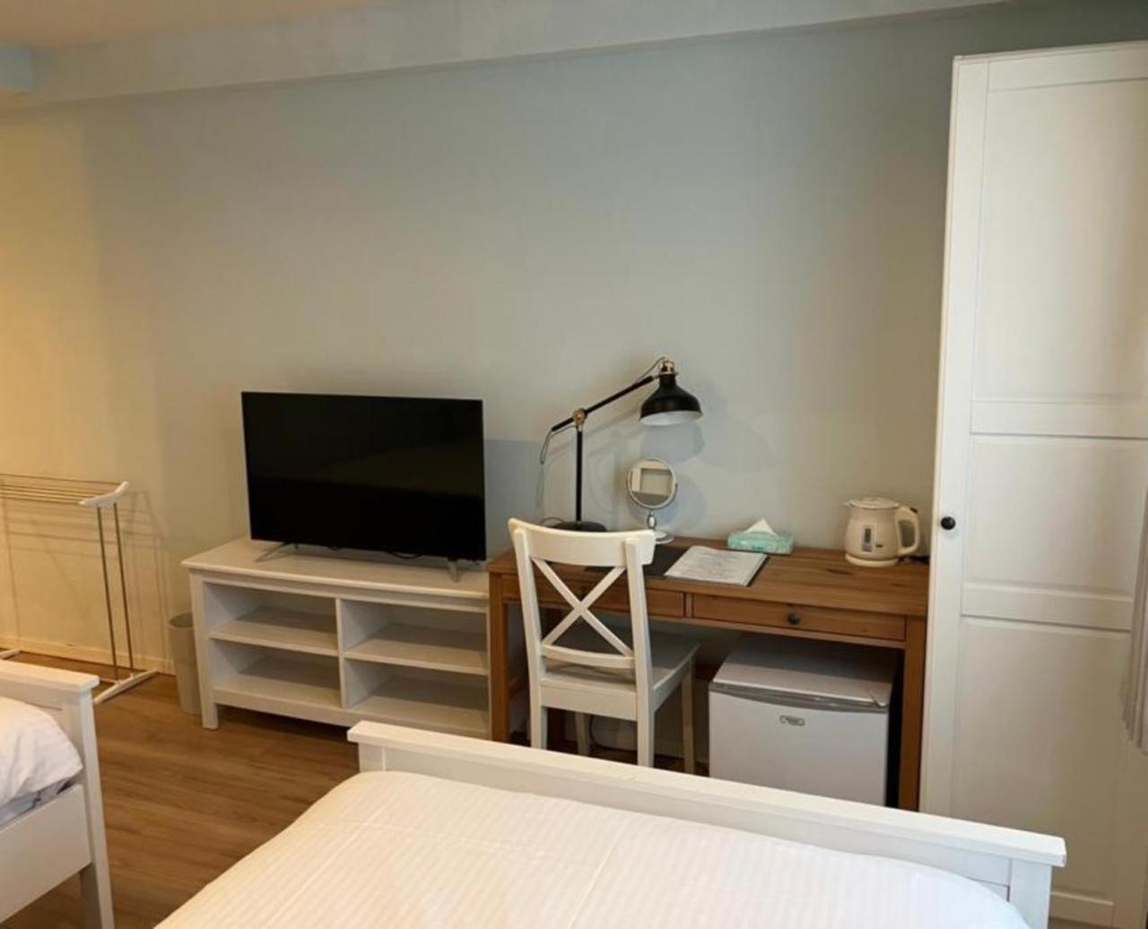 and a small kitchen. They give you washing liquid for free. Two beds and it was huge. I think it is not the norm, but I was lucky since it was their only available room. IThe lobby feel like a hostel, they have coffee and tea and bread for free and in the mornings they also have boiled eggs, also for free. They sell you beer at a reasonable price. The best thing is definitely the personal warm treatment. The owner is very amicable and Makoto, the lady that apparently takes care of everything there, is just adorable. I had a fantastic stay.
