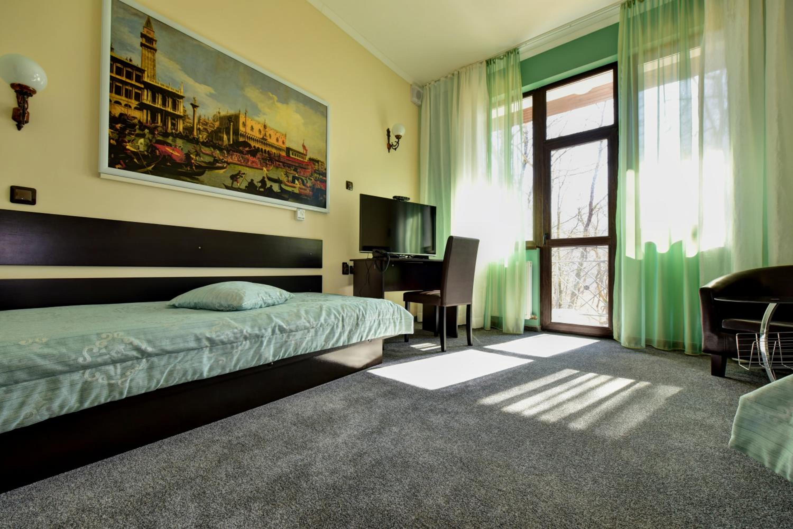 Indulge in comfort with satellite flat-screen TVs, private balconies, and garden views in every room at Family Hotel Lyulyak.