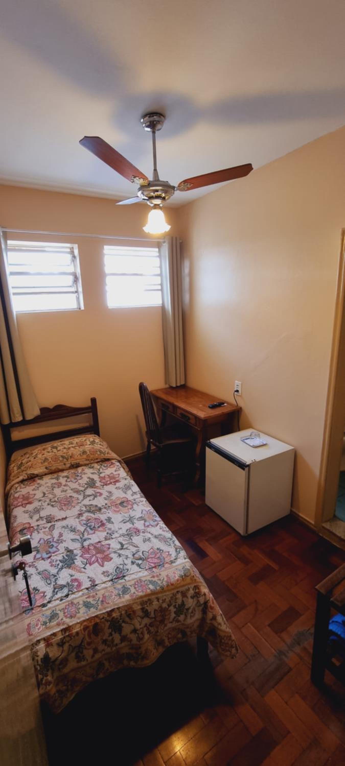 Quarto amplo, banheiro grande.