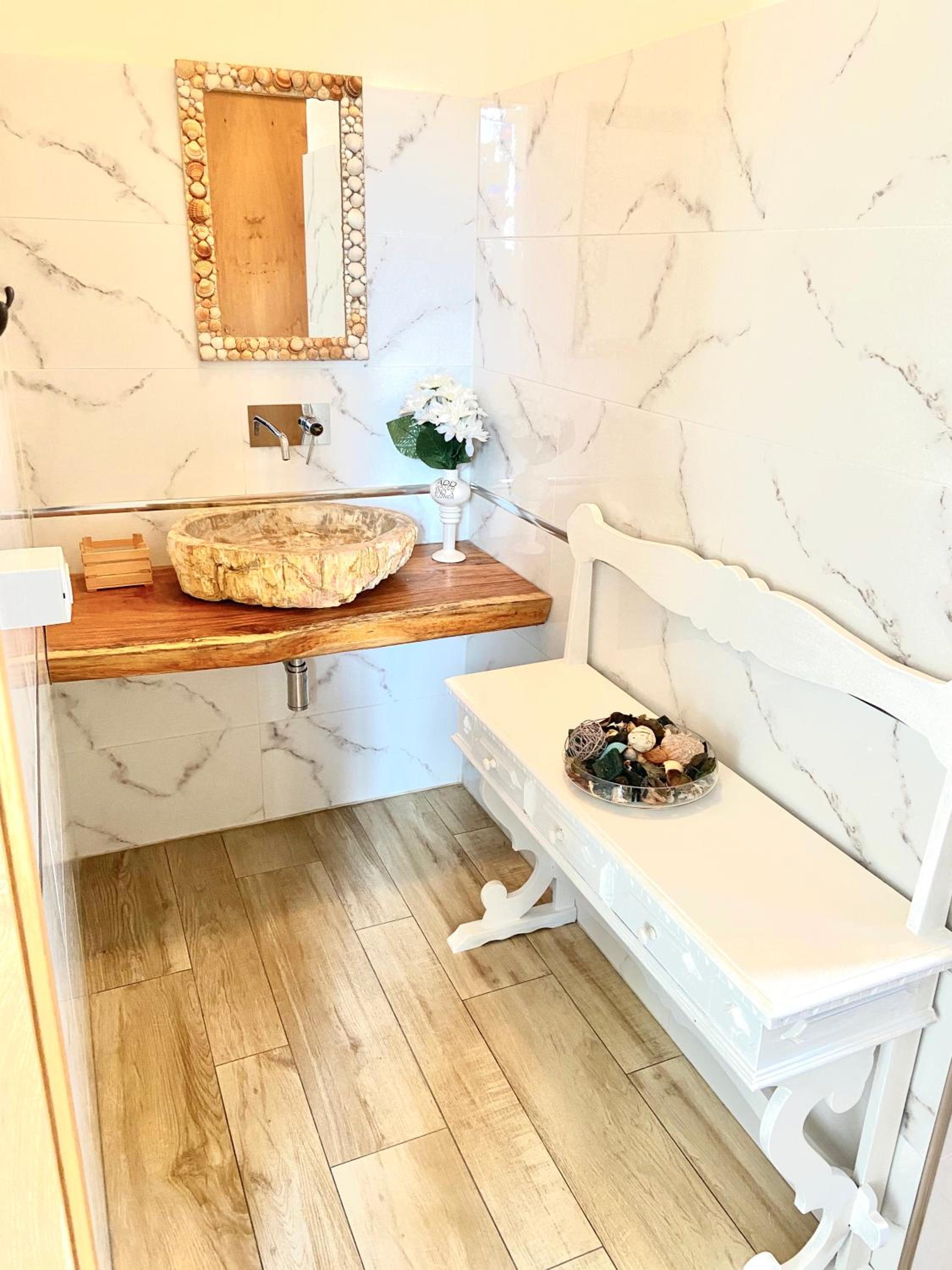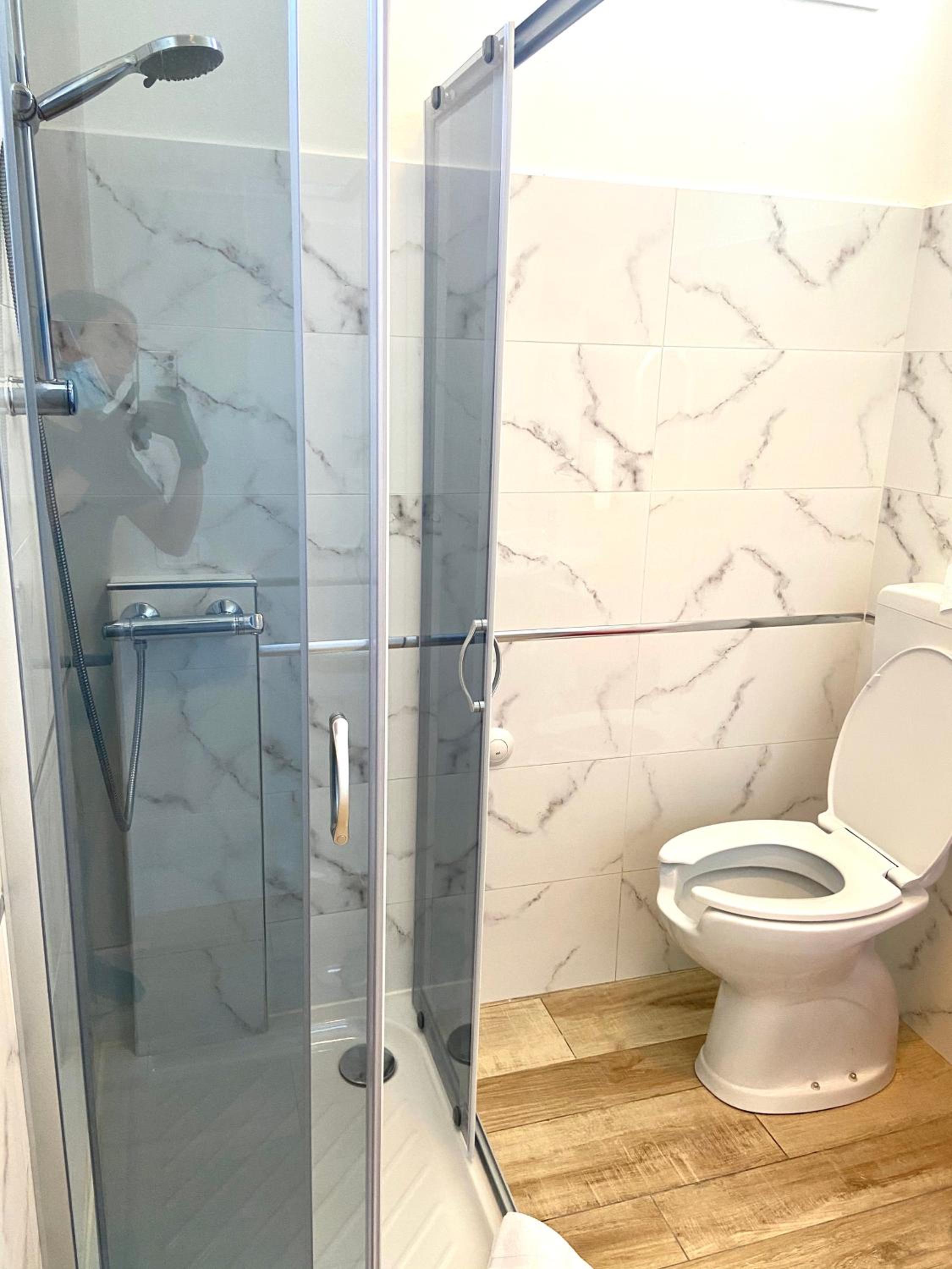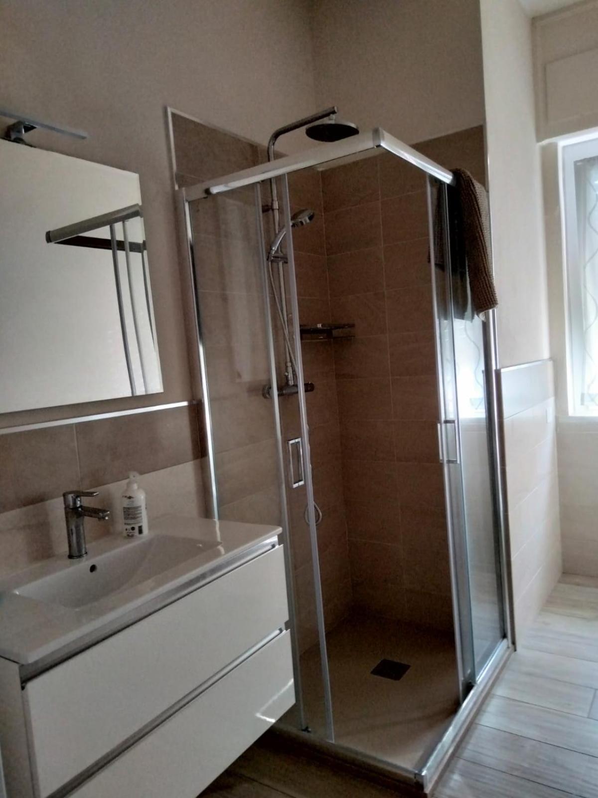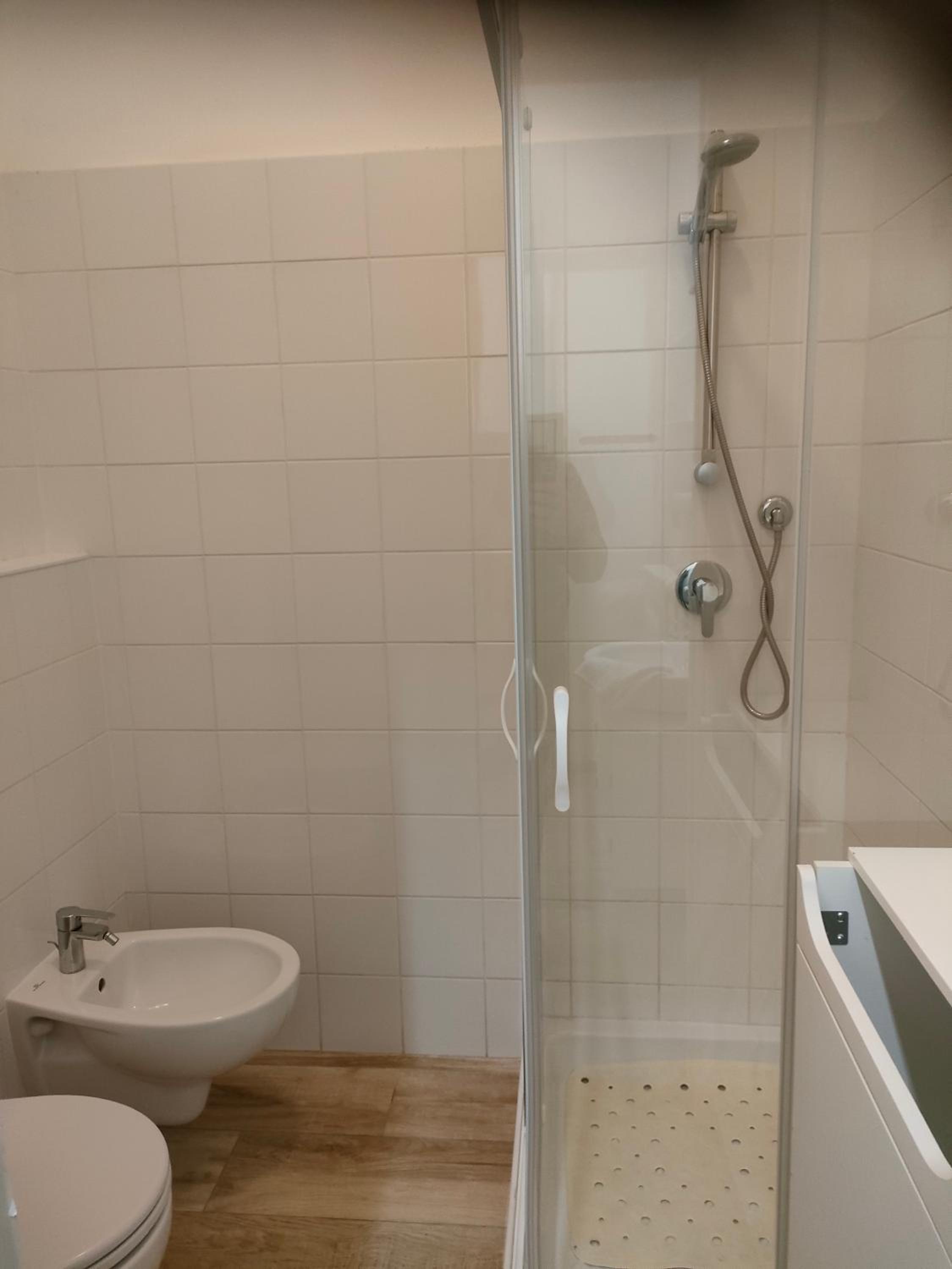 Purtroppo al box doccia mancava un anta, quindi si bagnava il pavimento e mancava il portasapone...